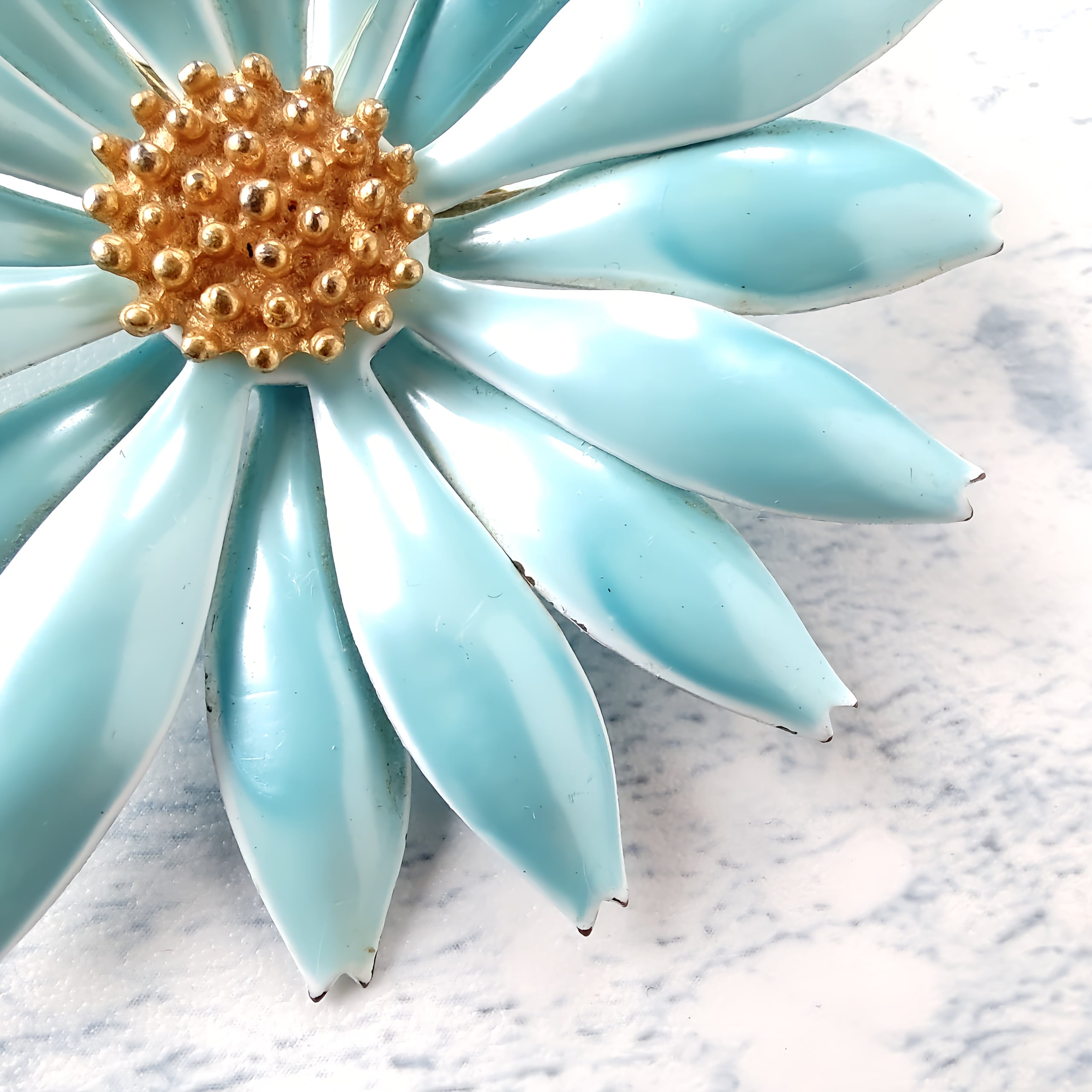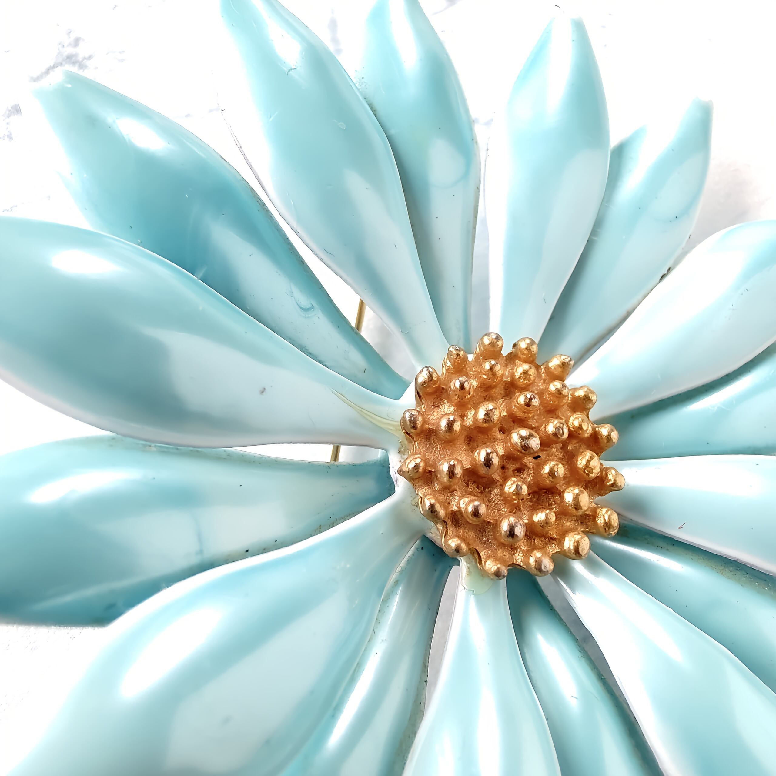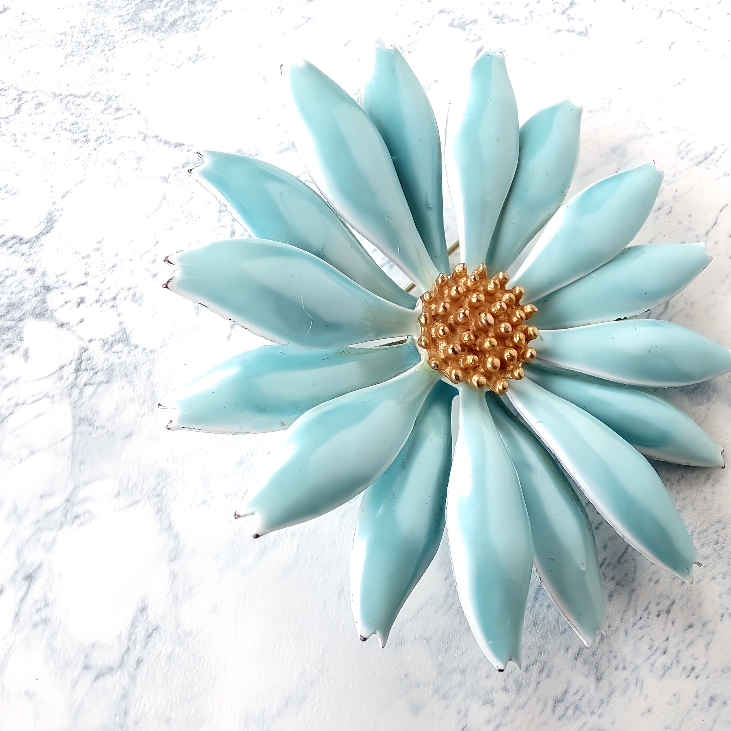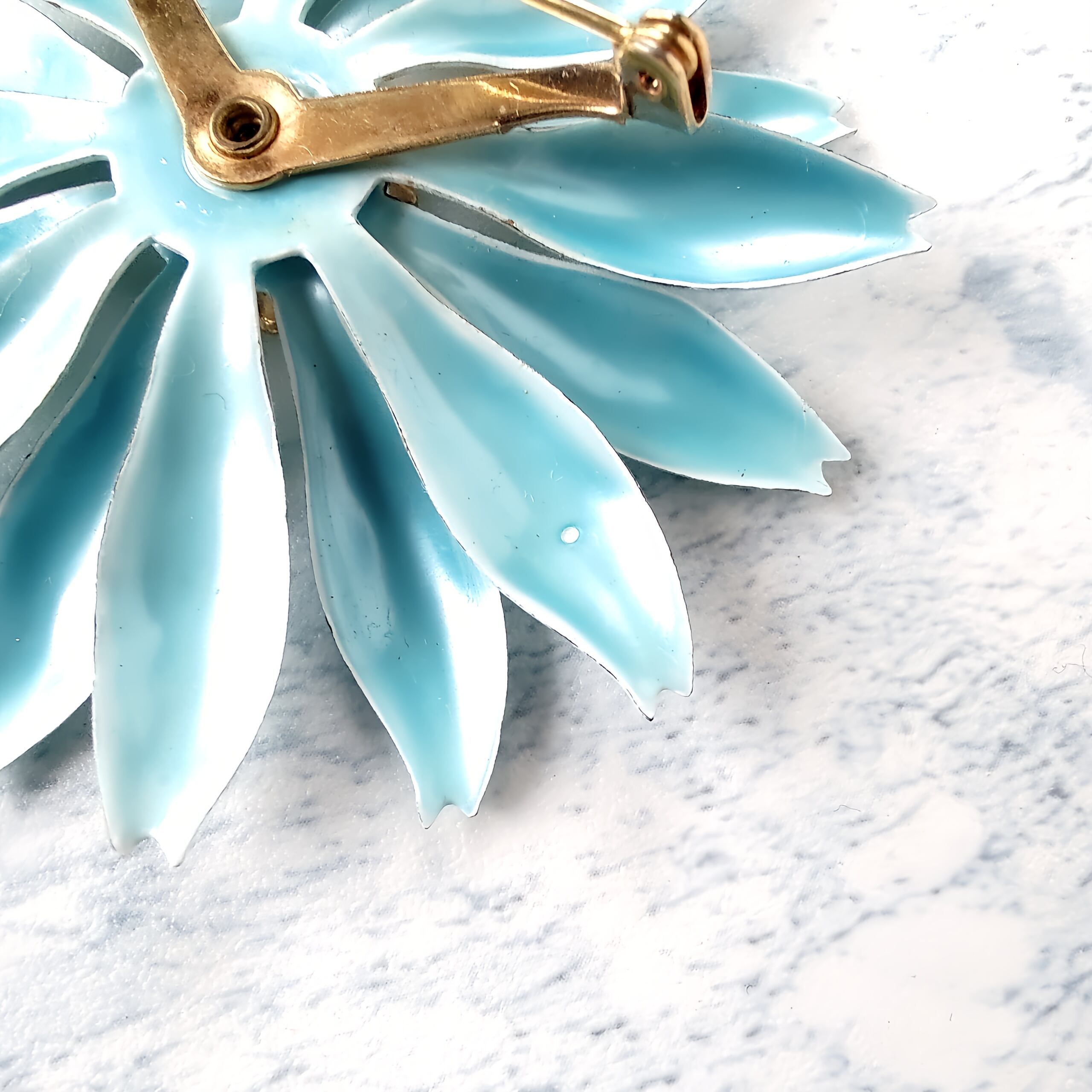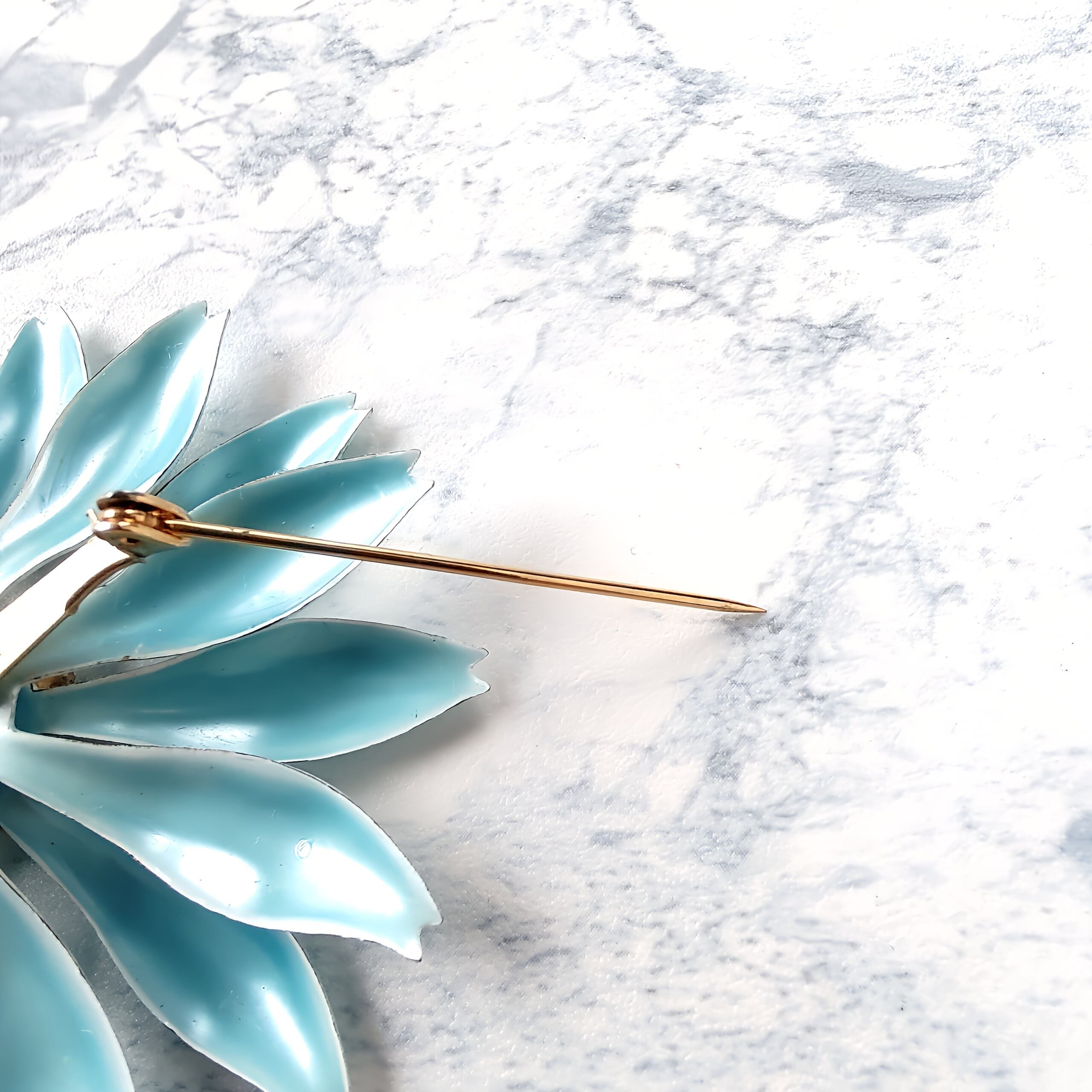 light blue enamel flower vintage brooch ヴィンテージブローチ