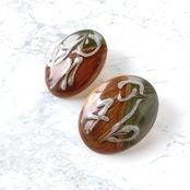 ラメ入りのブラウンとカーキのエナメルで色付けされた上にラメ入りのシルバーのエナメルでペイントが施されたオーバル型のヴィンテージピアスです。