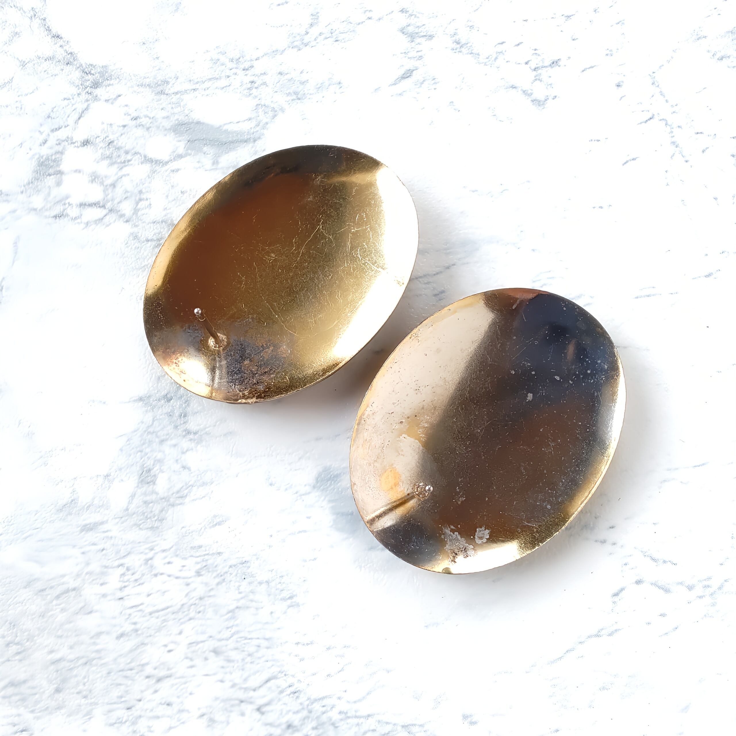 glitter brown khaki silver enamel oval vintage pierced earrings ヴィンテージピアス