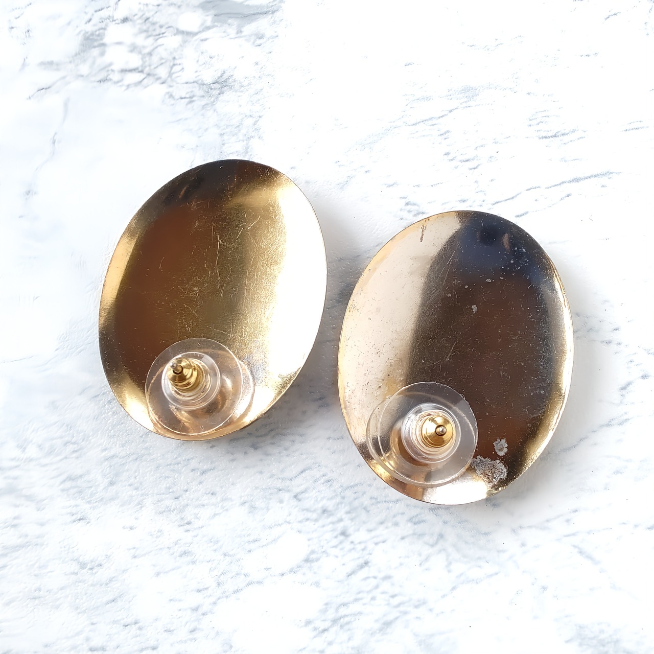 片方の裏側のポスト近くにメッキの剥がれ、両方のポスト周りに色褪せが見られます。