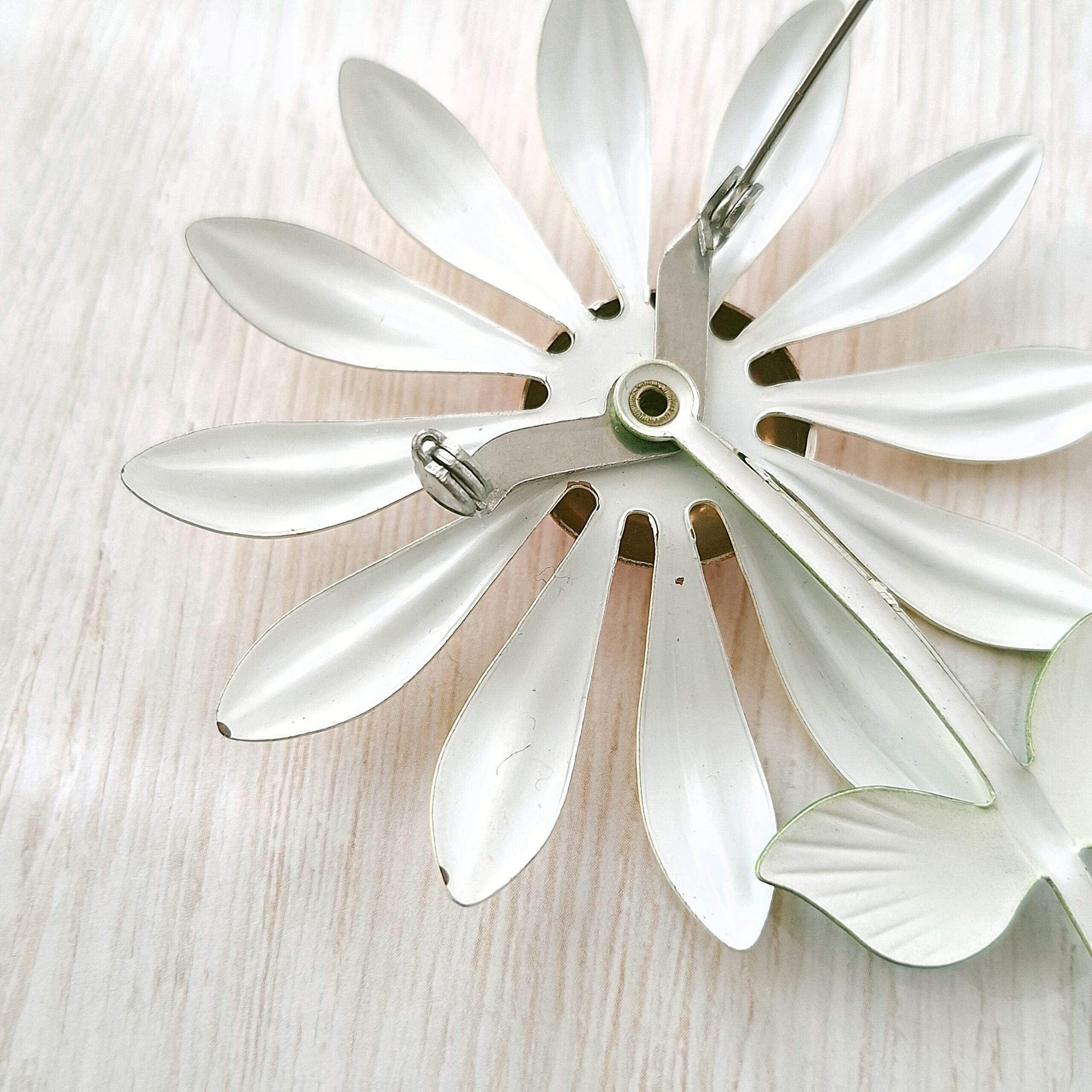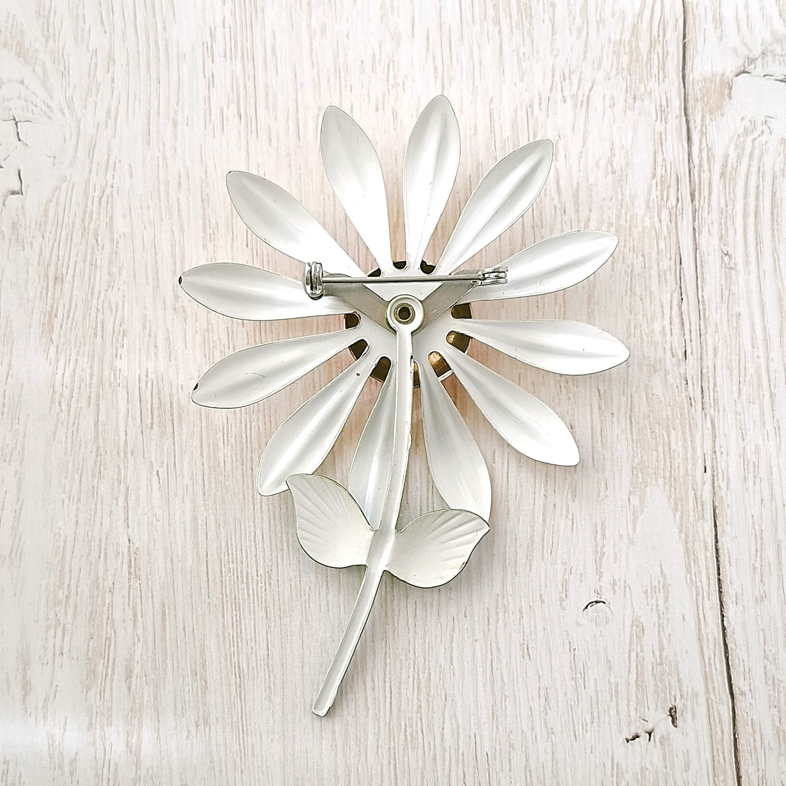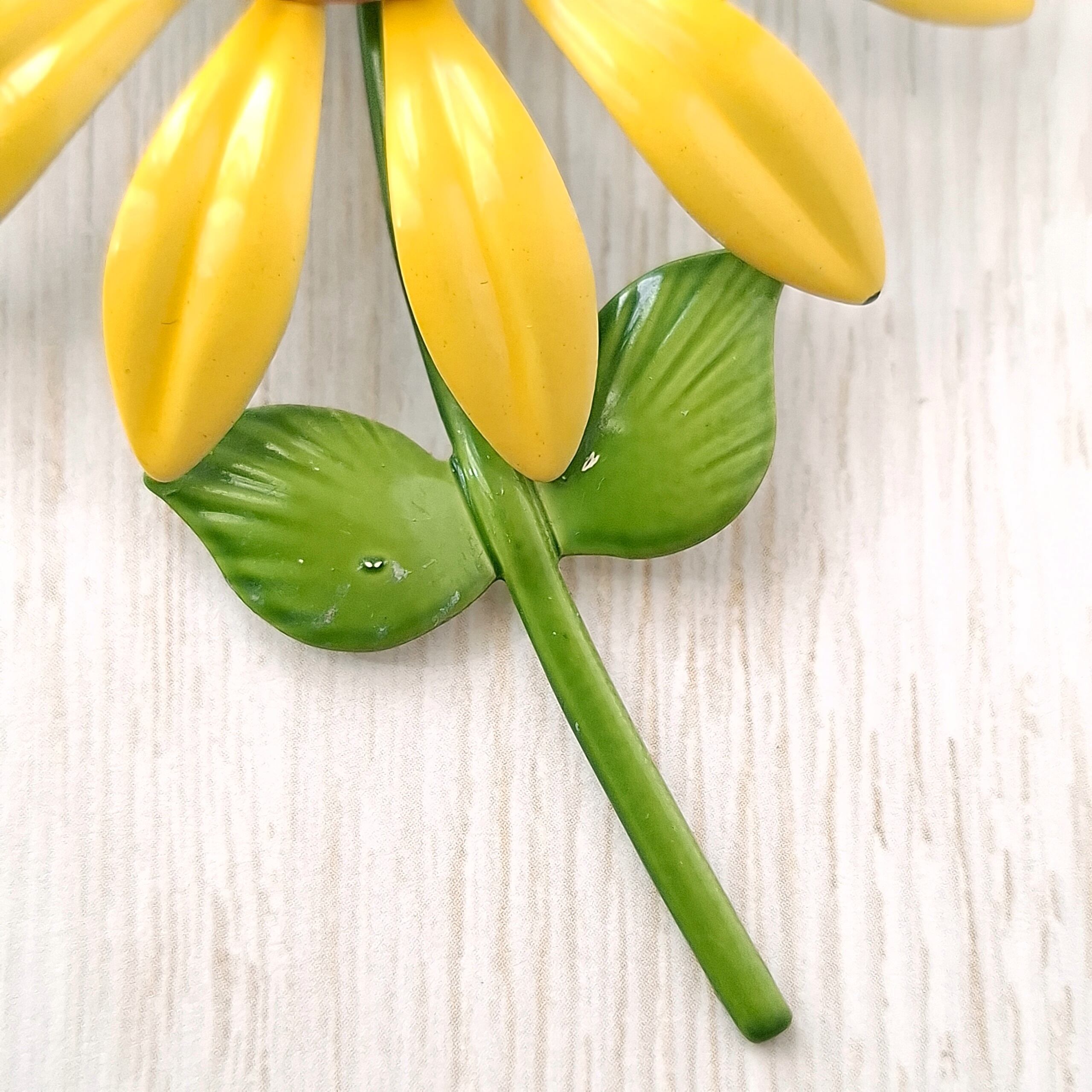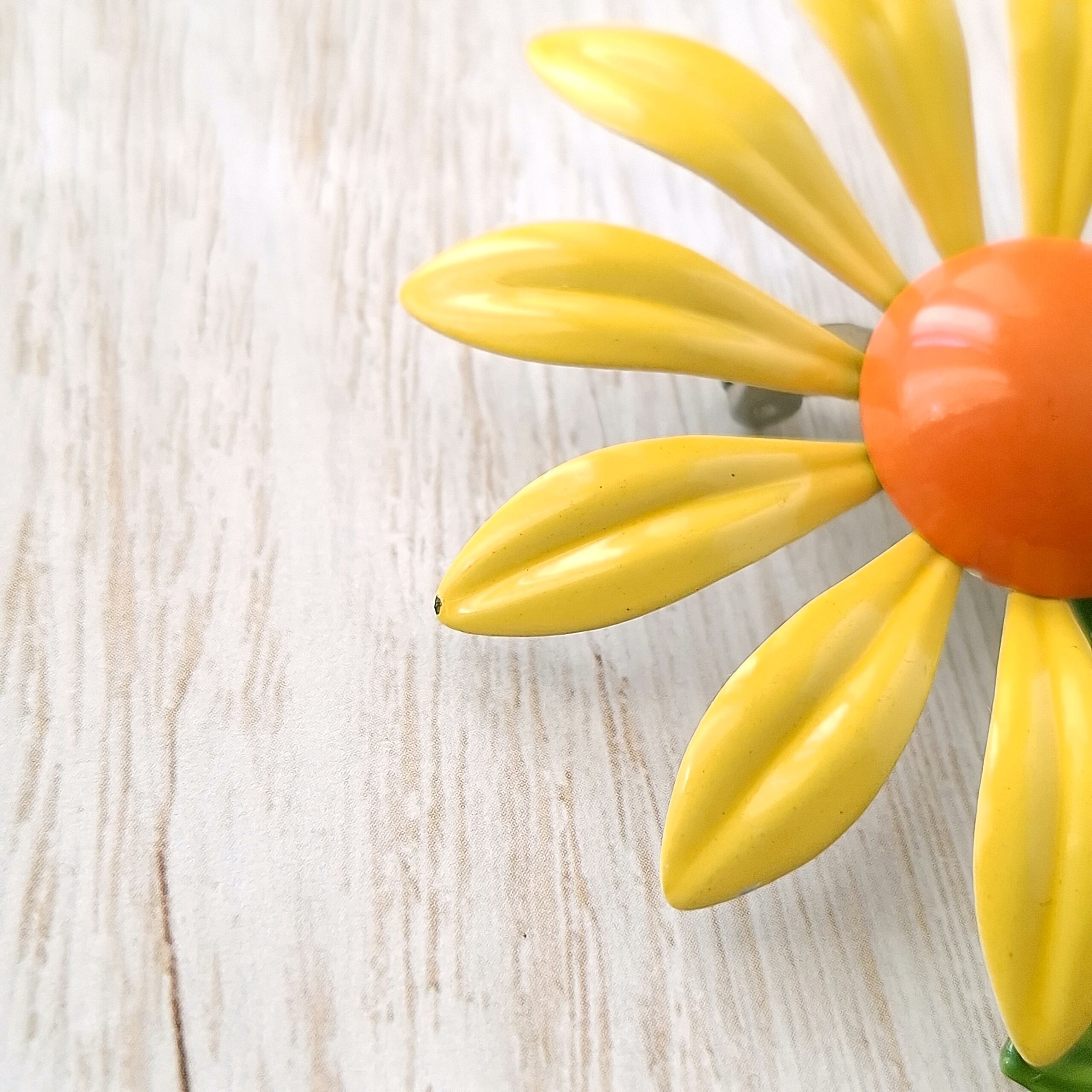イエローとオレンジのエナメルで色付けされたフラワーのヴィンテージブローチです。