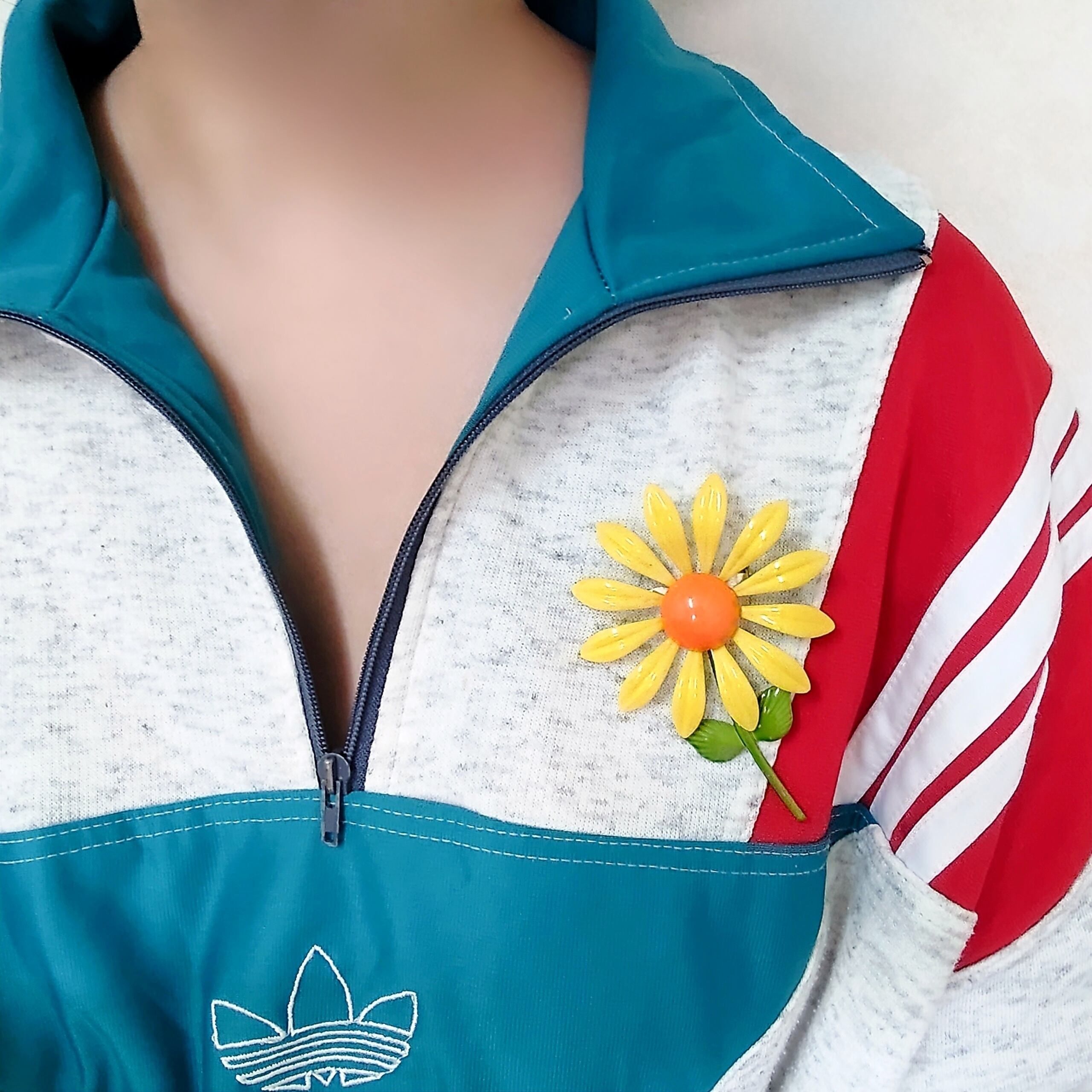 yellow orange enamel flower vintage brooch ヴィンテージブローチ
