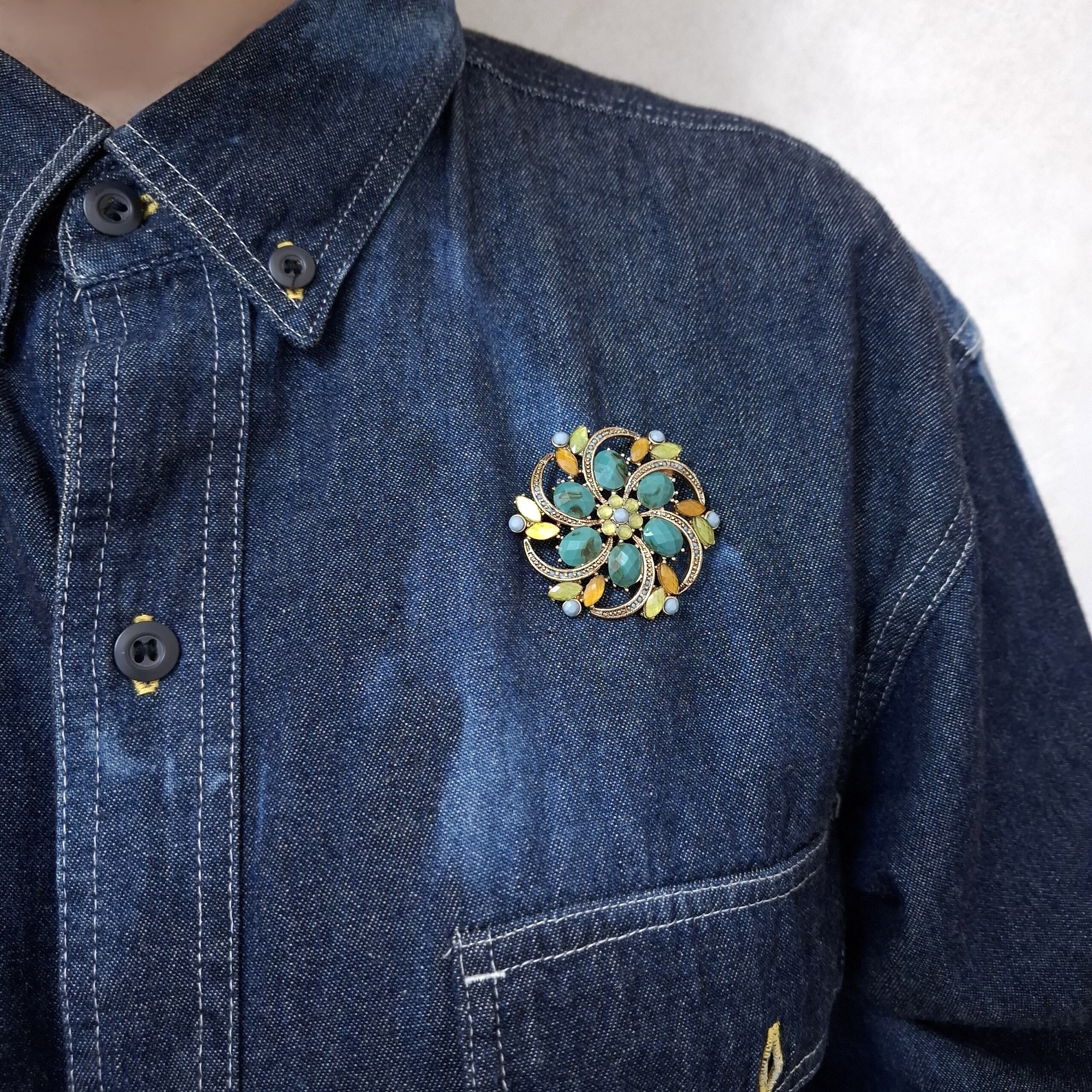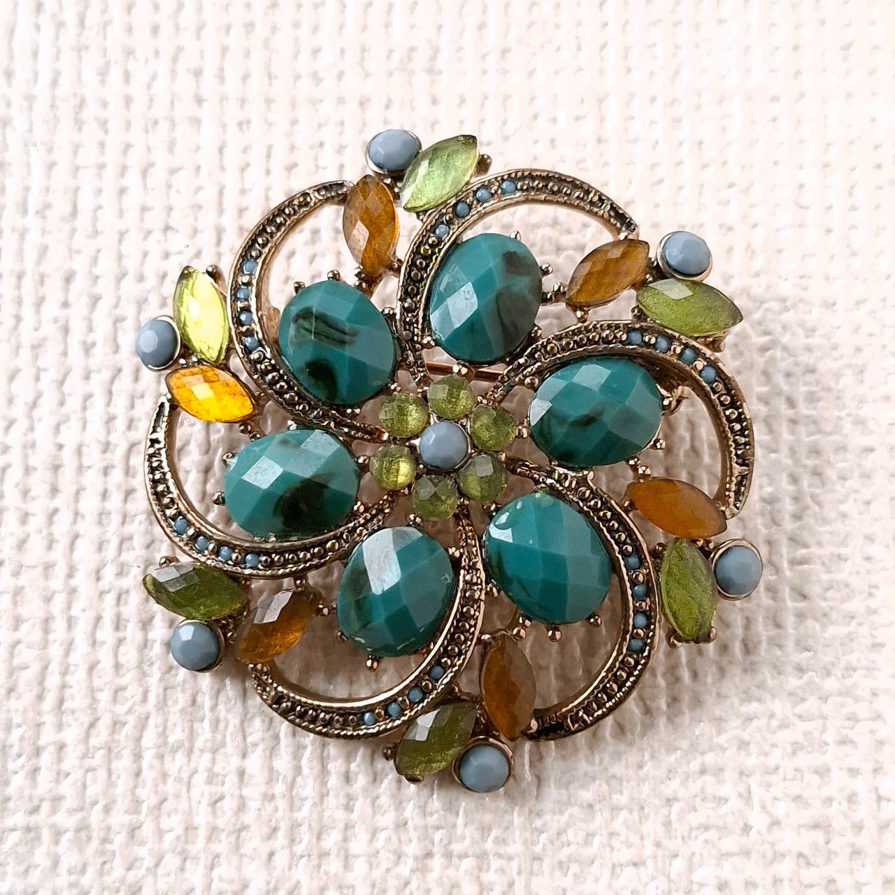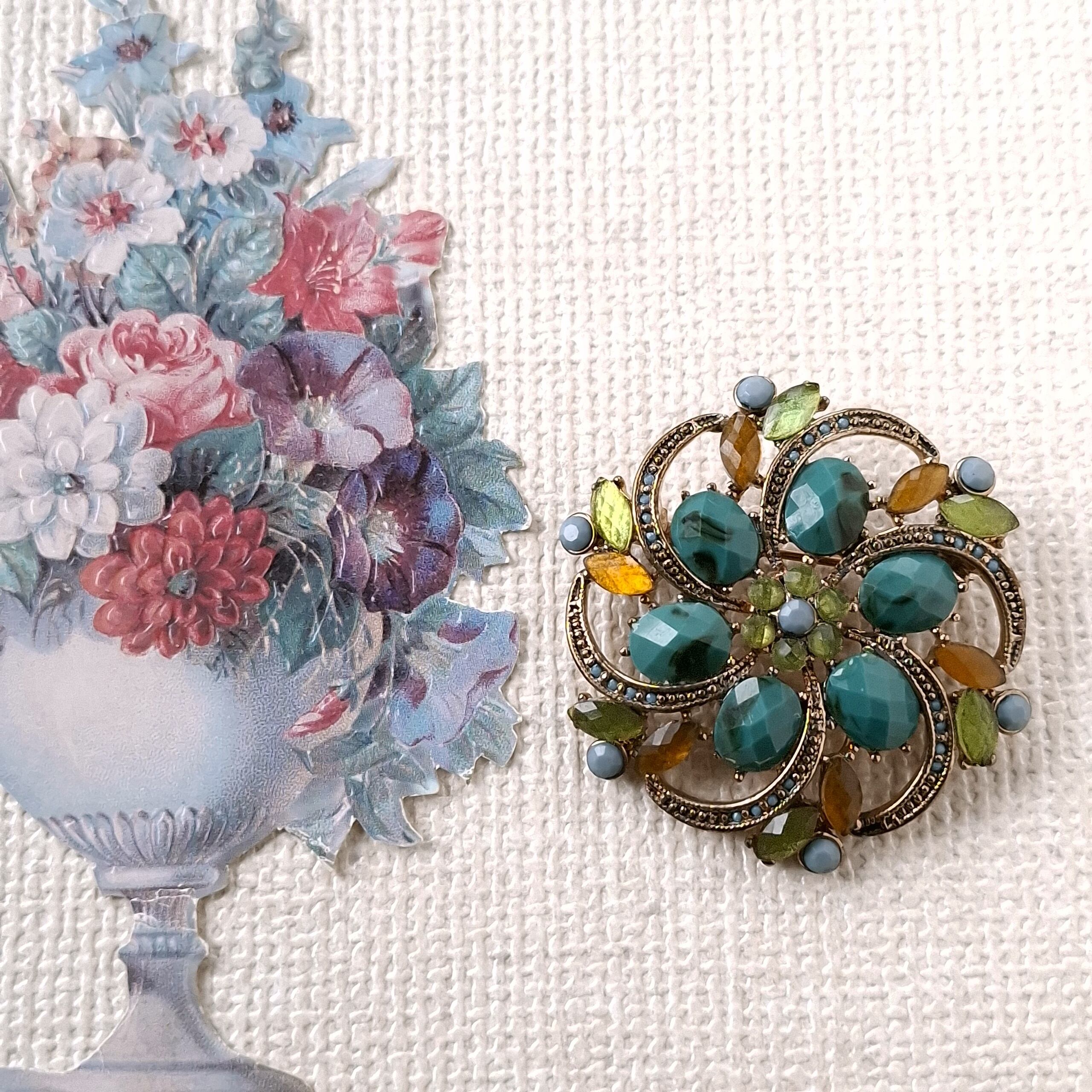《Liz Claiborne》 colorful cabochon flower vintage brooch リズ・クレイボーン ヴィンテージブローチ
