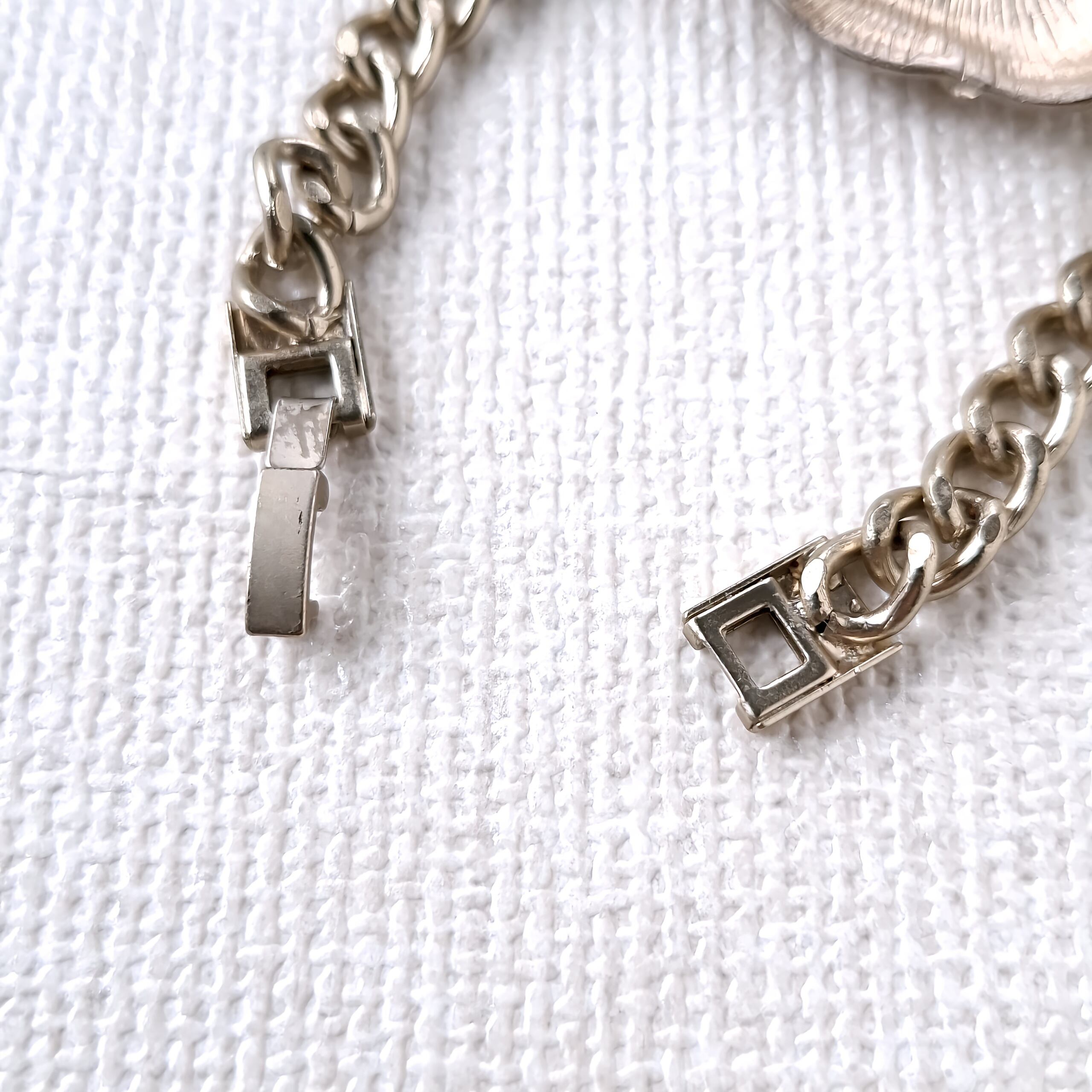 〔状態〕 留め具、チェーンに施されたマットコーティングの剥がれ、傷が見られます。