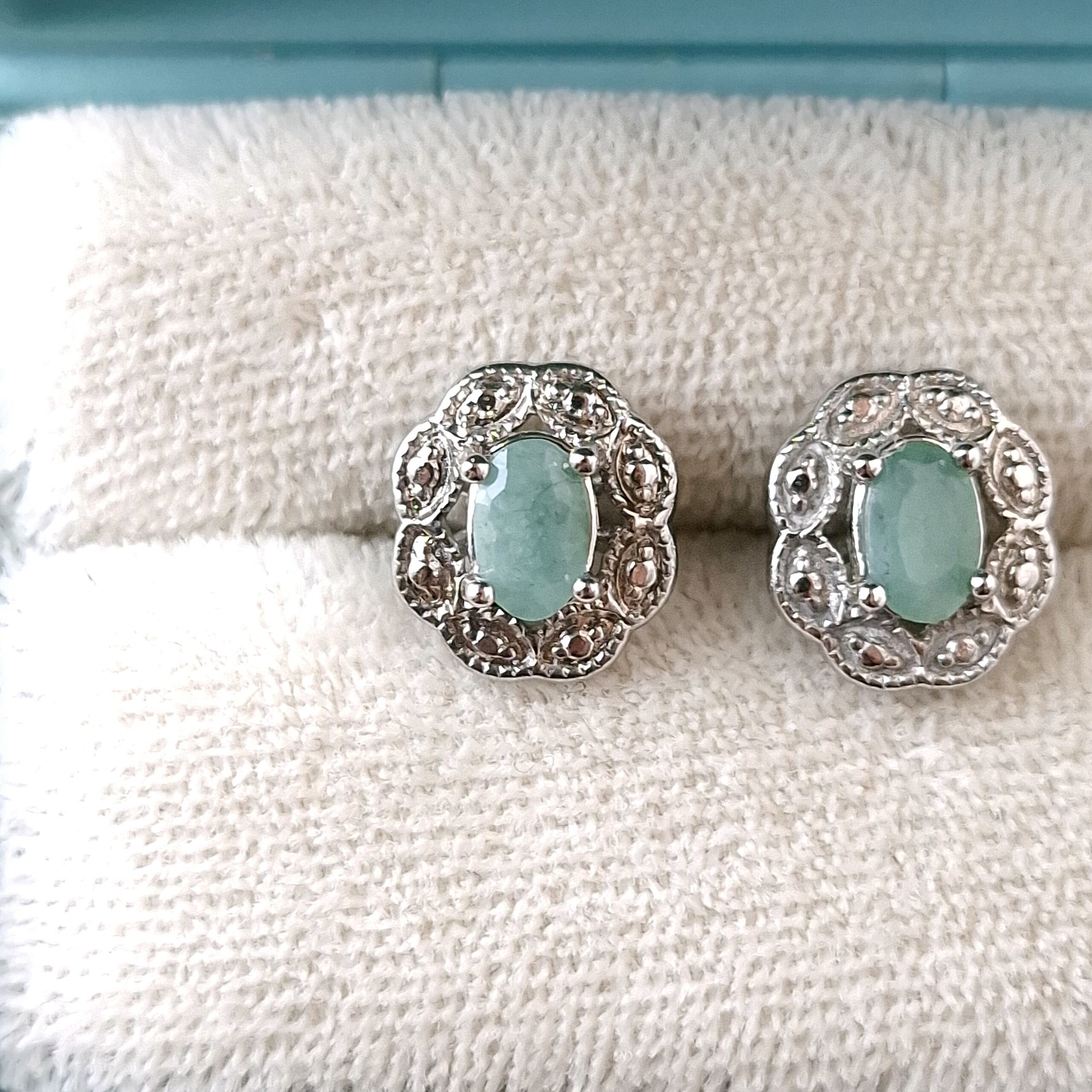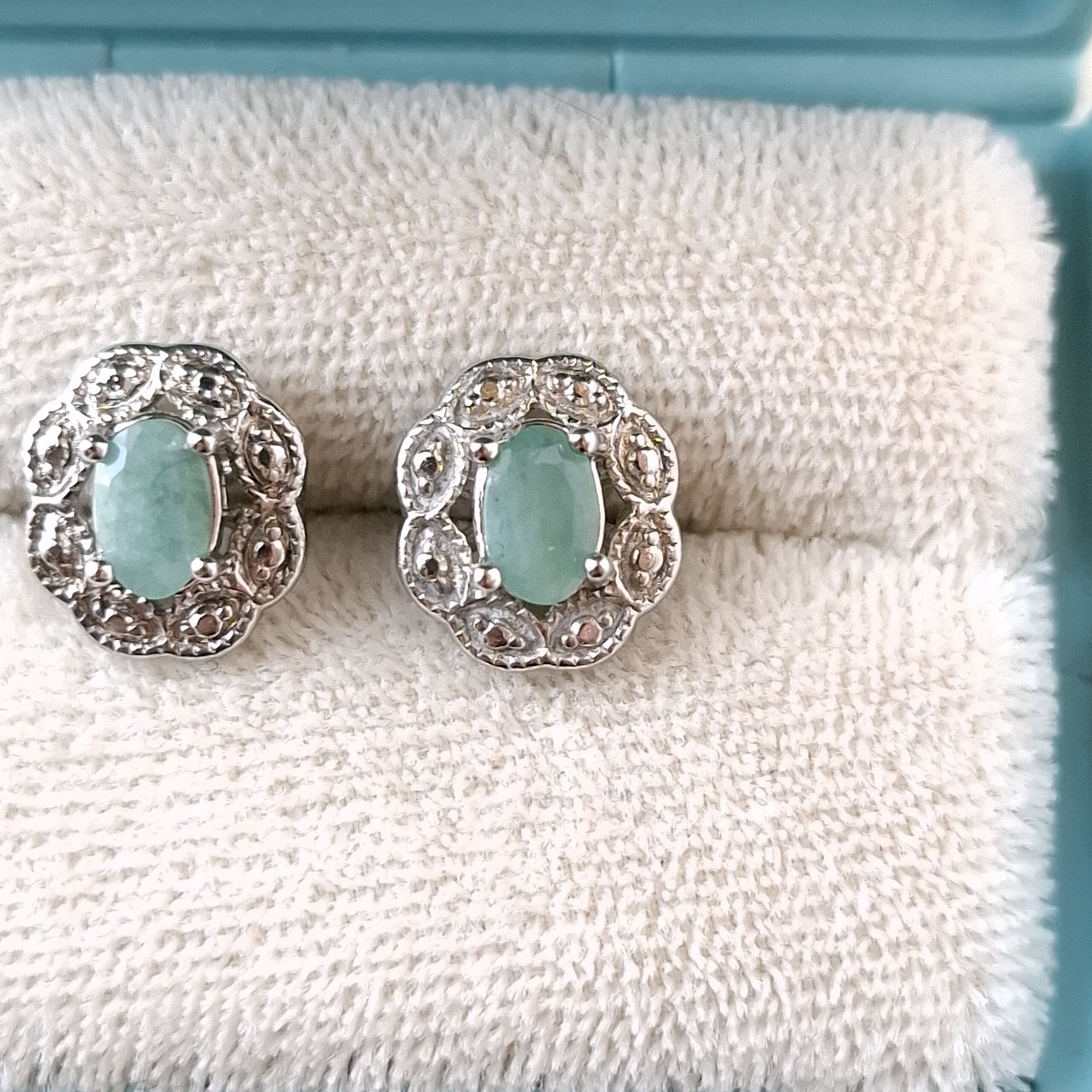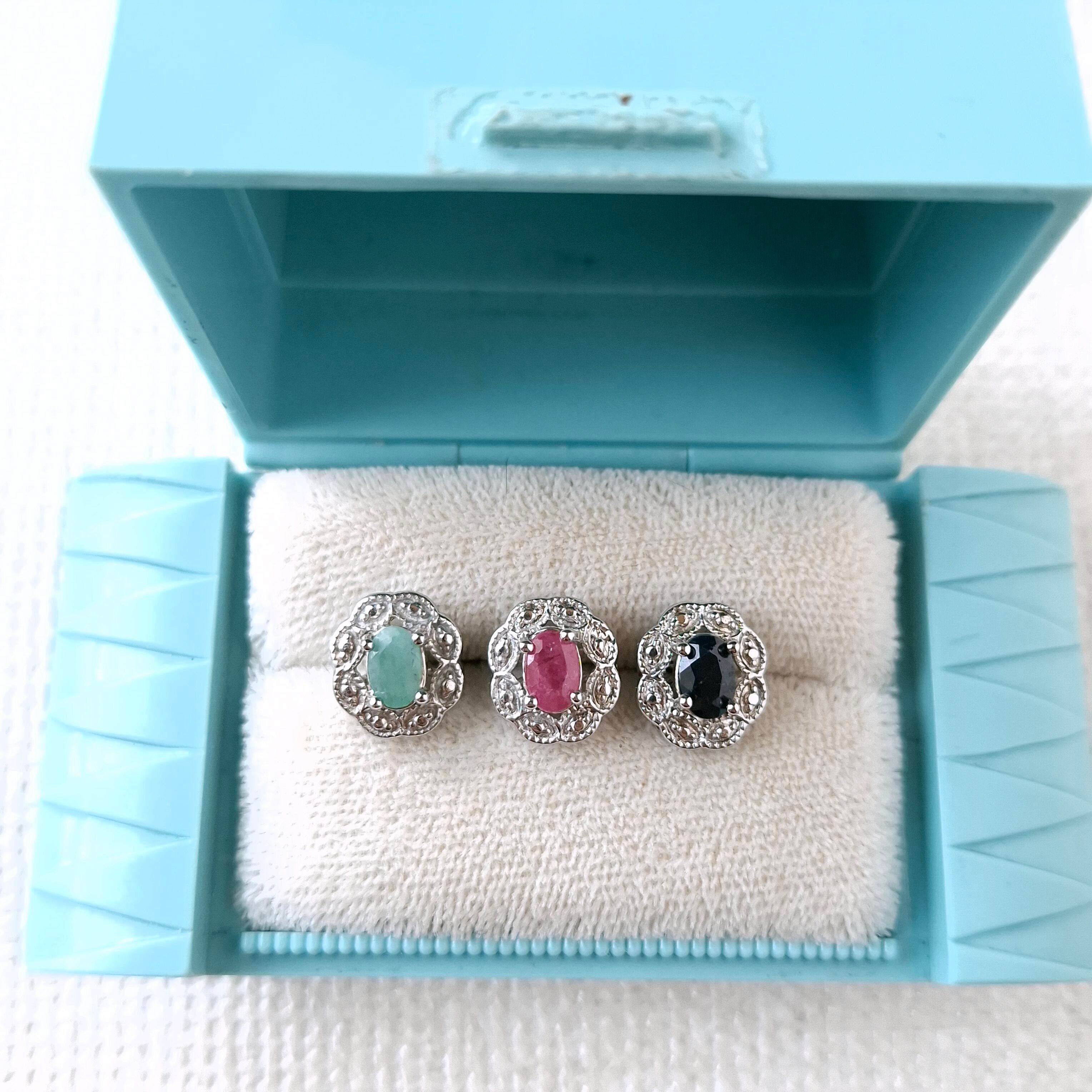 アンティークデザインのシルバーメタルにフェイクジェイド、ピンクとホワイトのマーブル、ヘマタイトのガラスラインストーンがそれぞれセットされたヴィンテージピアスです。