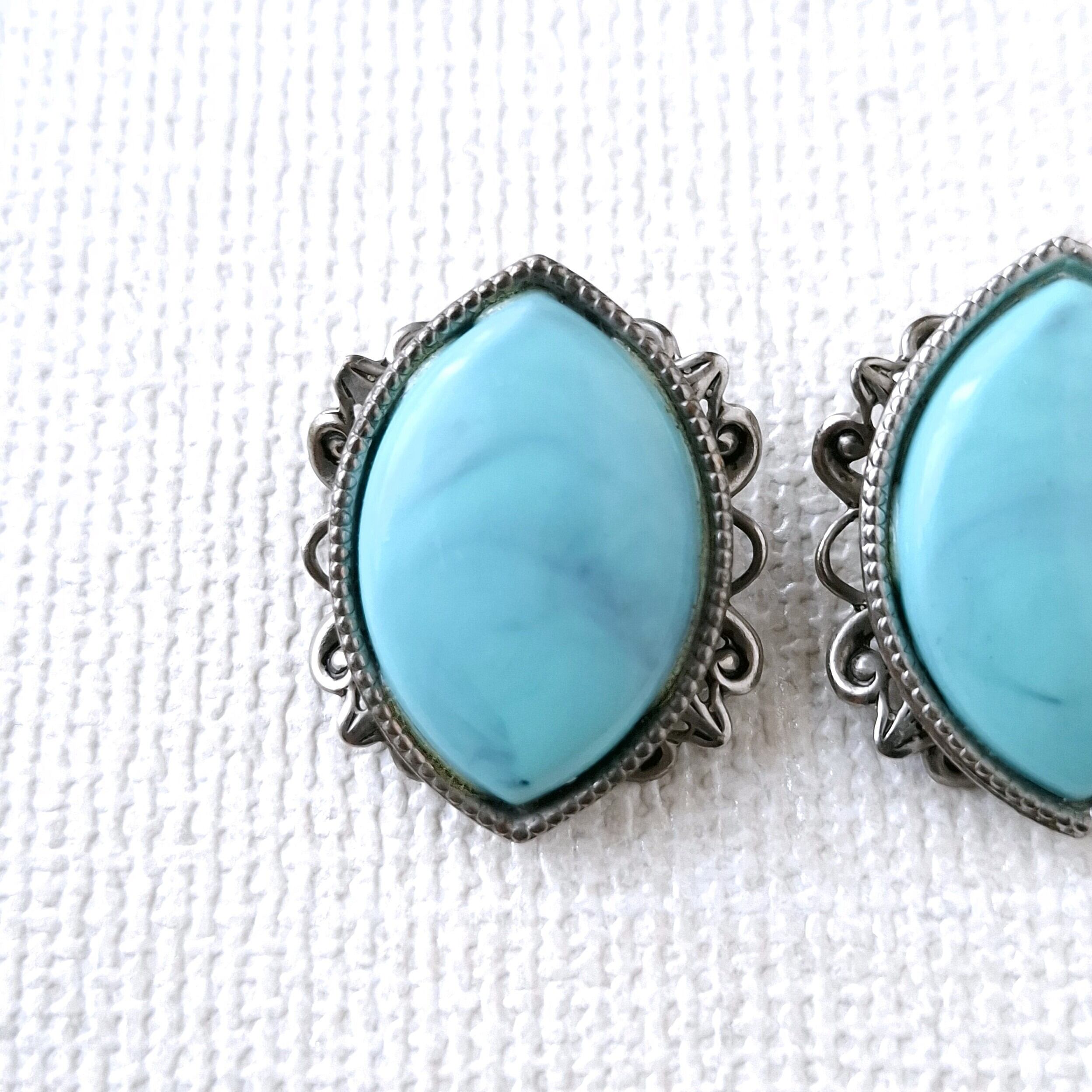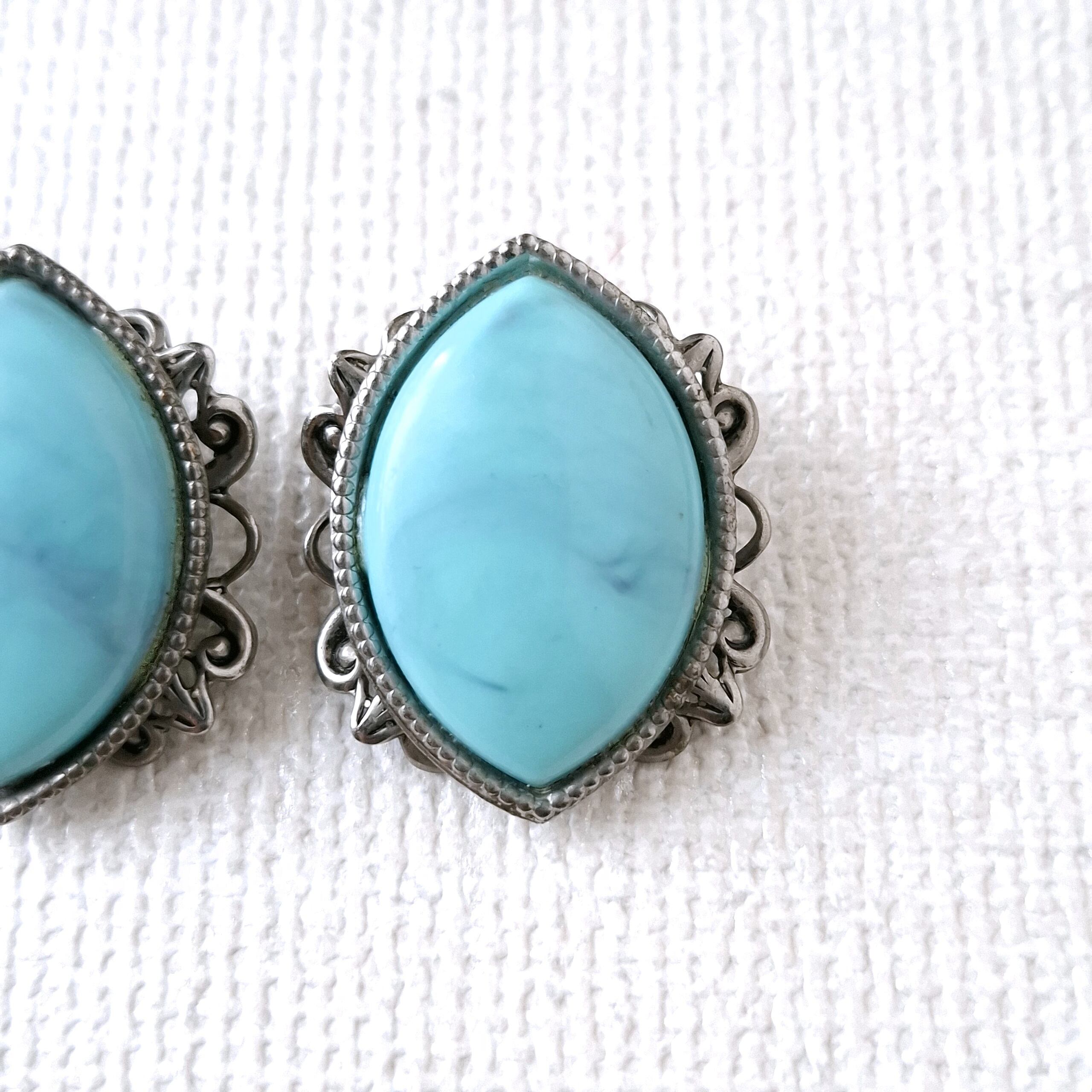 silver watermark faux turquoise plastic vintage earrings ヴィンテージイヤリング