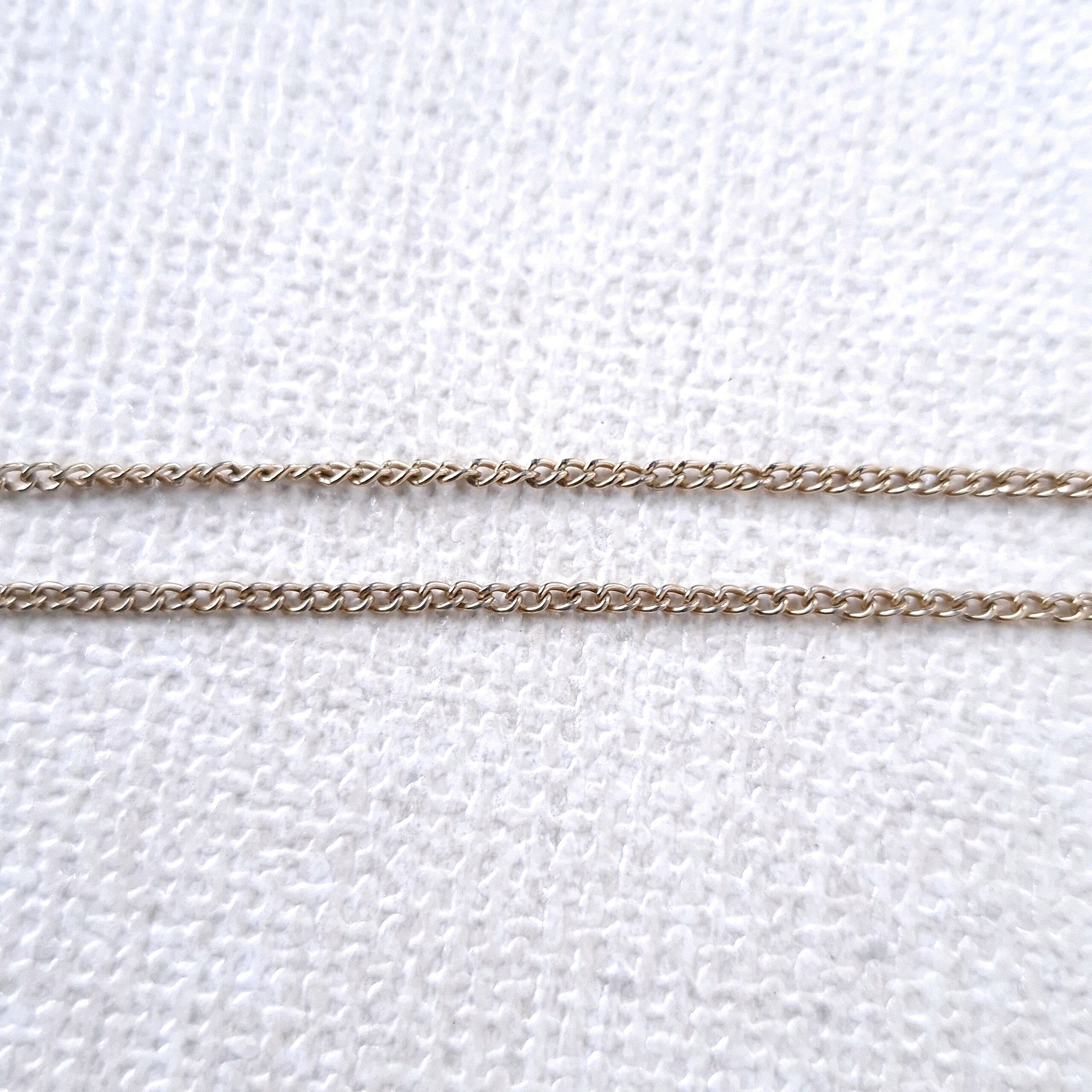 裏側、留め具、チェーンにくすみや色褪せ、細かな傷が見られます。