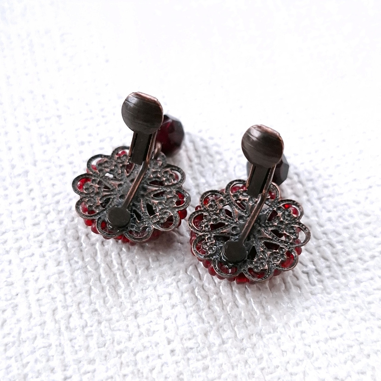 《Avon》 “BEADED BUTTON” red vintage earrings エイボン ヴィンテージイヤリング