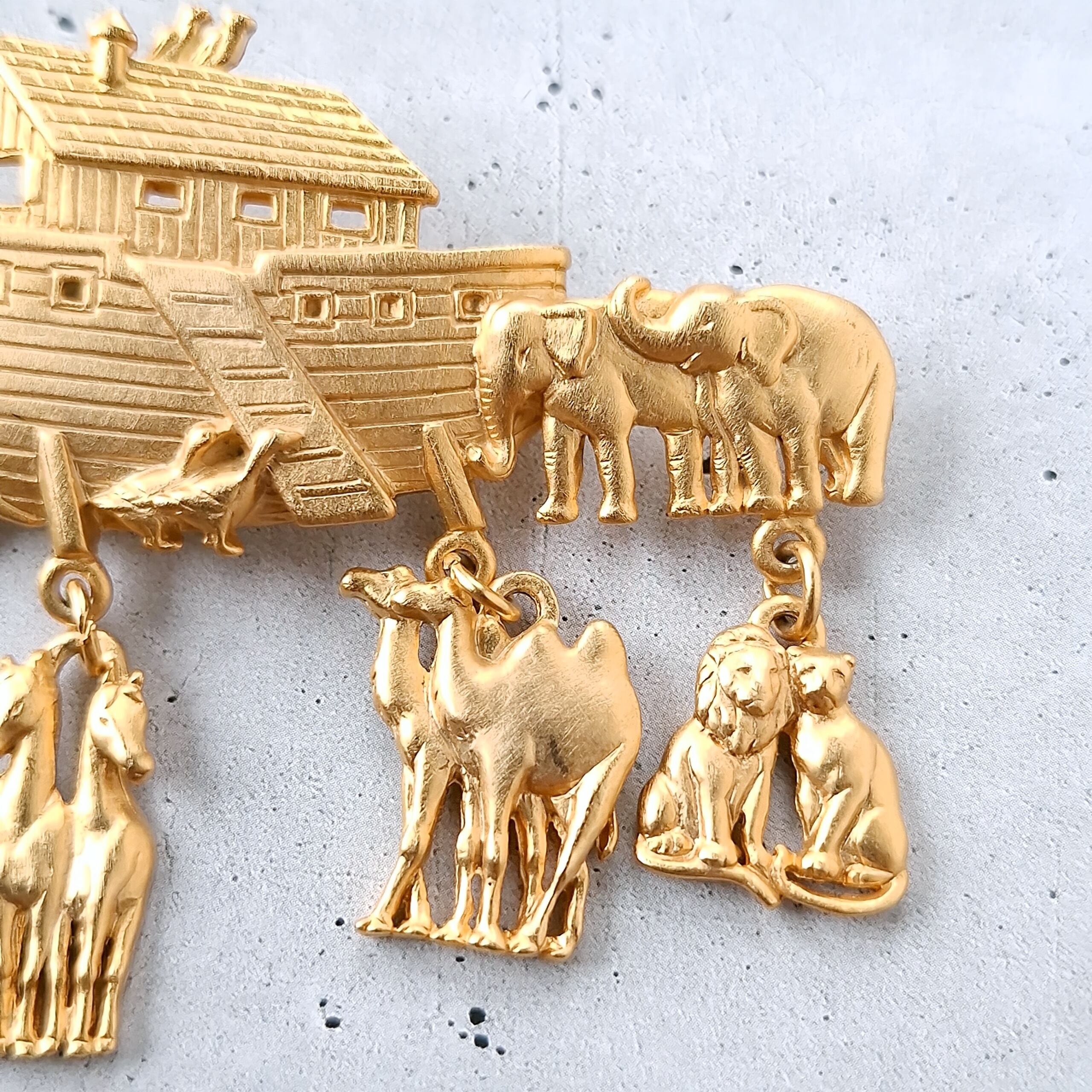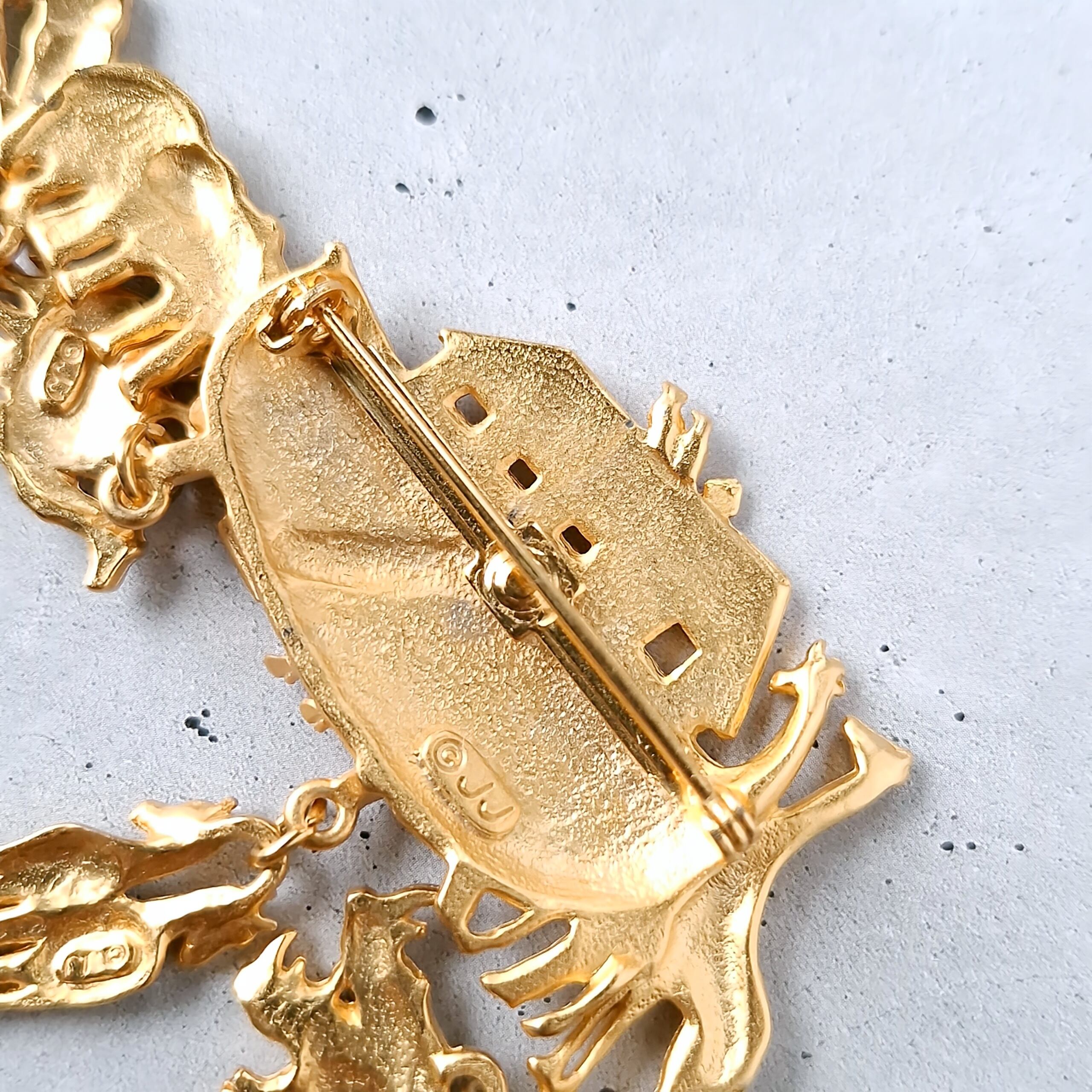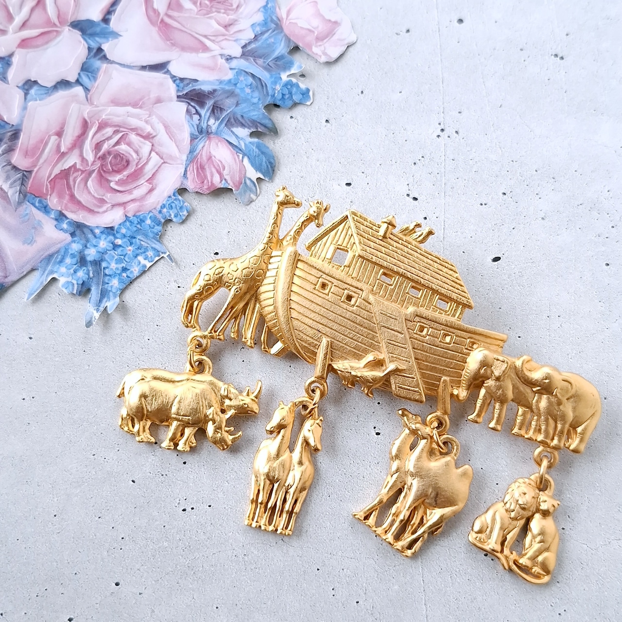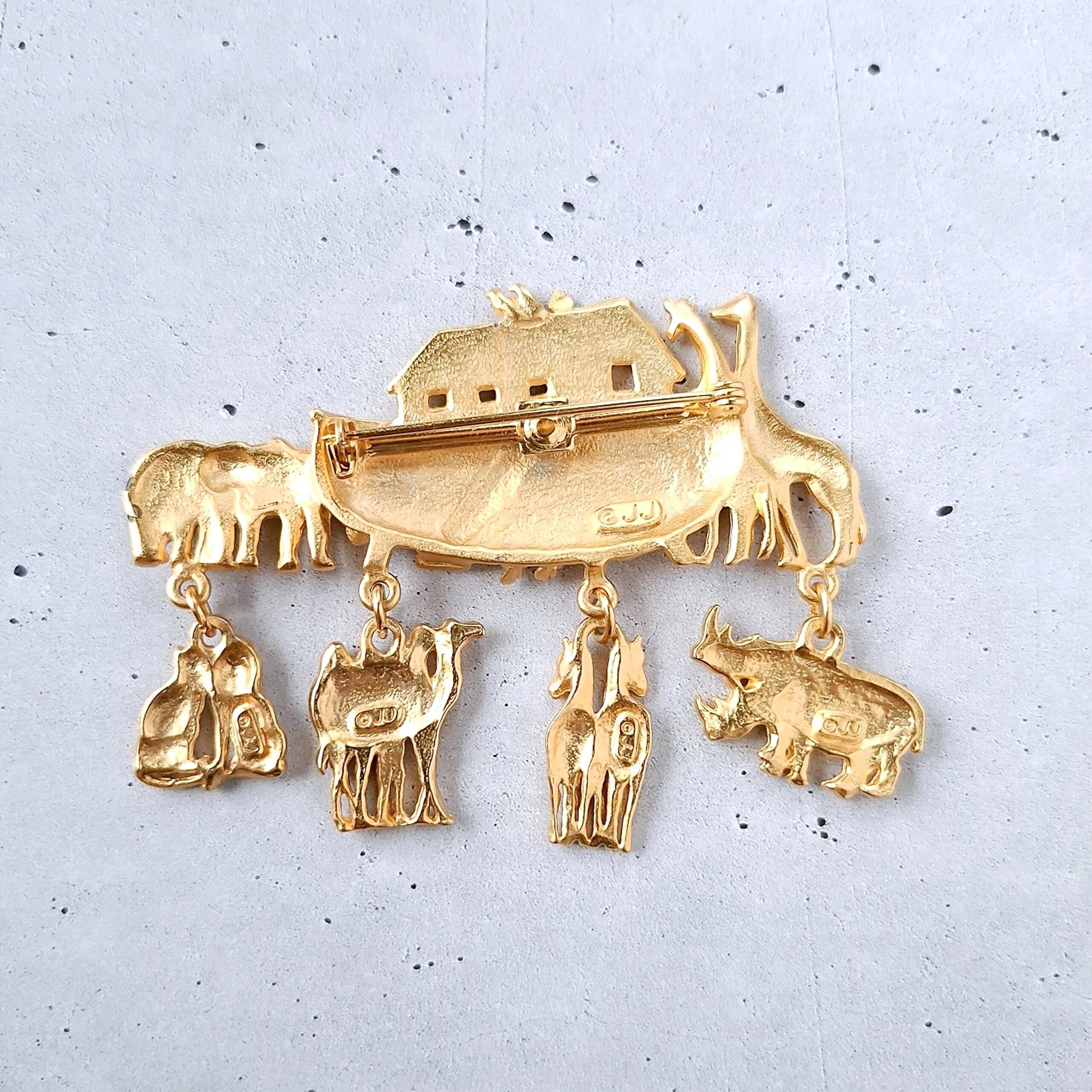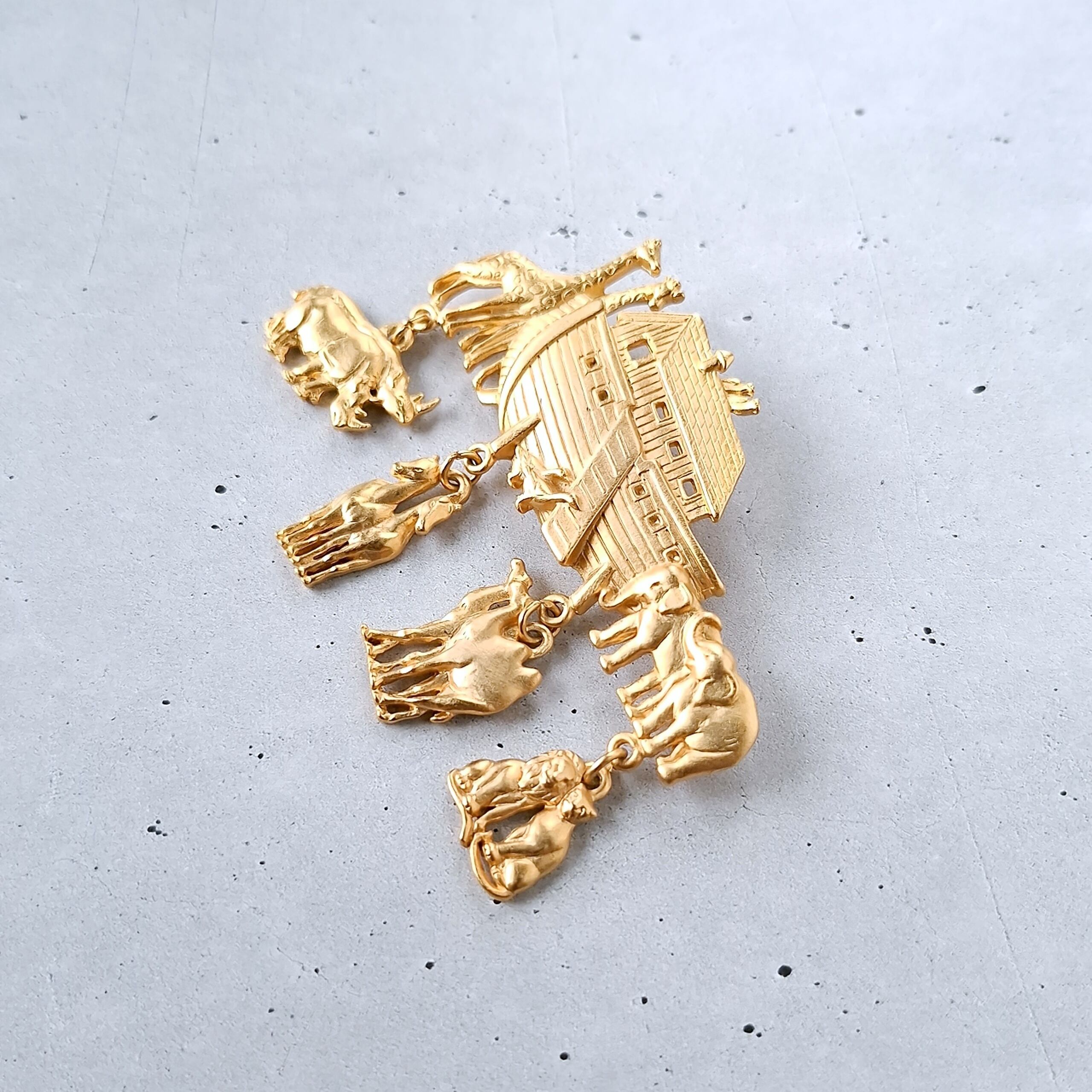 《J.J.》 matte gold Noah's Ark vintage brooch ジェイジェイ JJ ジョネットジュエリー ヴィンテージブローチ