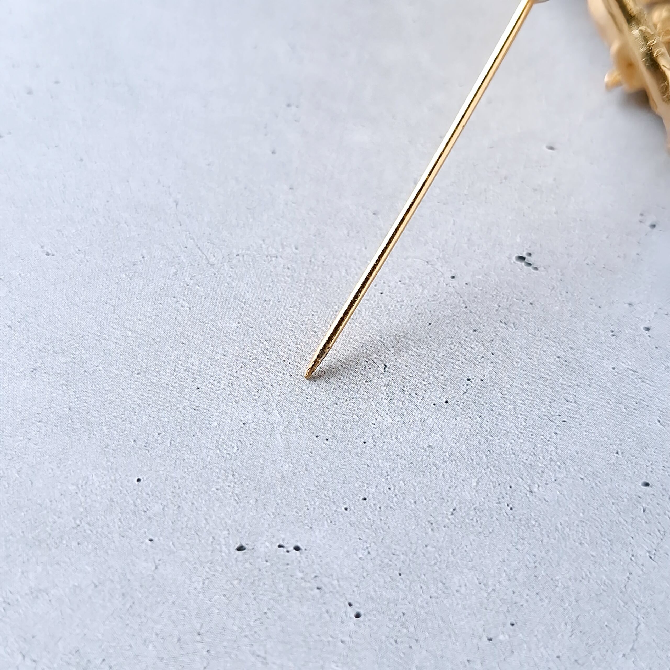 裏側に色褪せによりシルバーの色味になっている箇所、ピンを留めているリベット(中央の打ち付けて留めている部分)に傷が見られます。