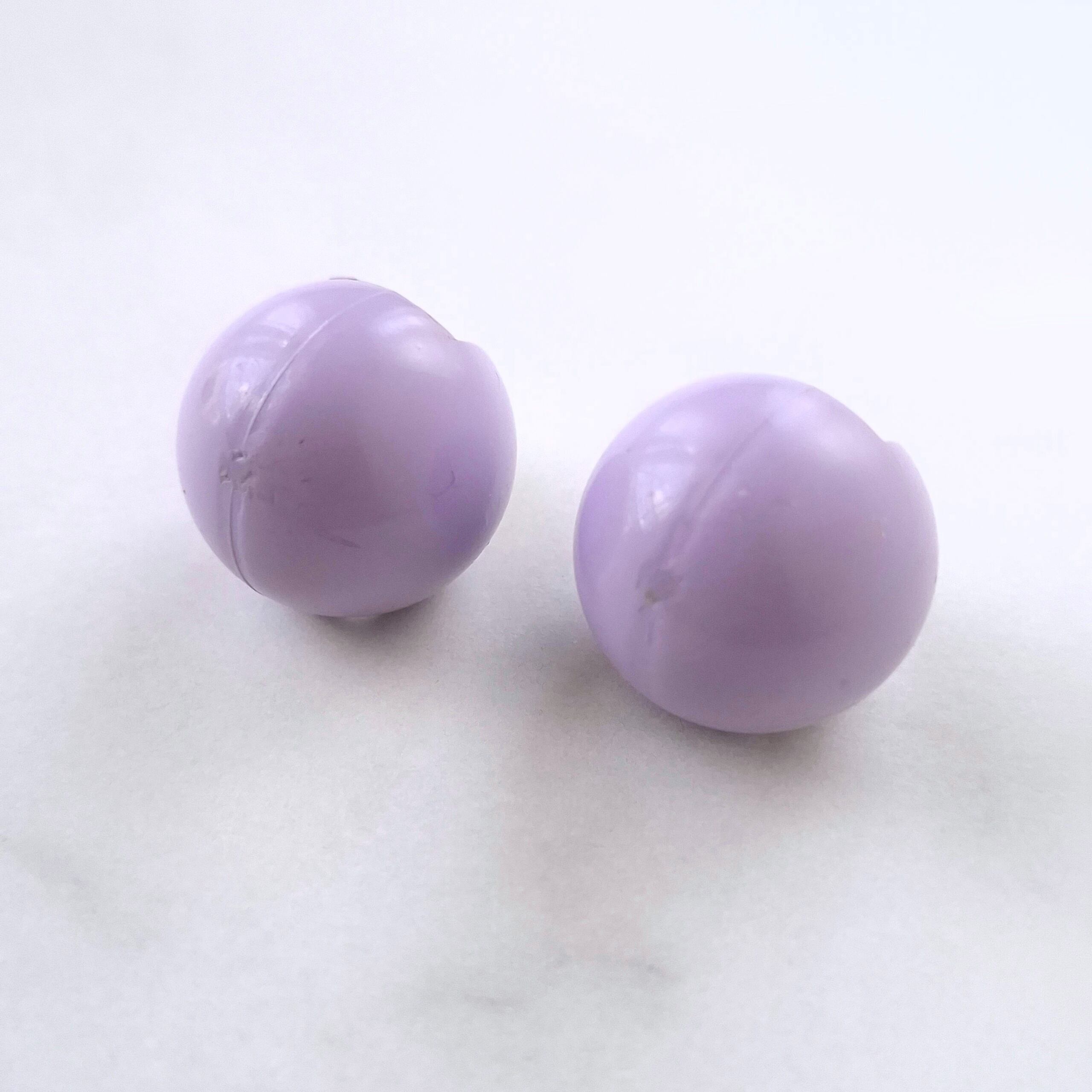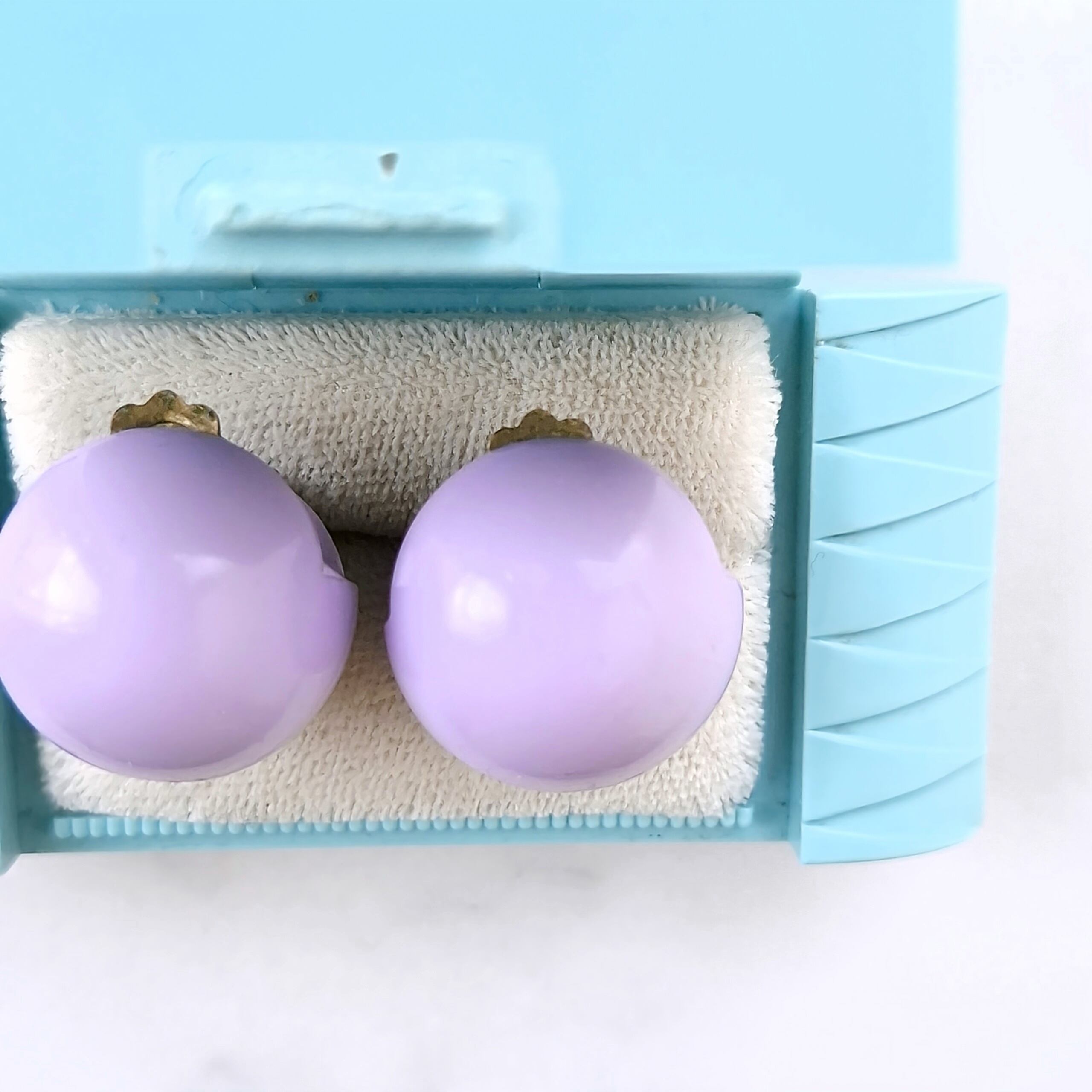 W.GERMANY(西ドイツ)のラベンダートーンのコロンとしたボールデザインのプラスチックのヴィンテージイヤリングです。