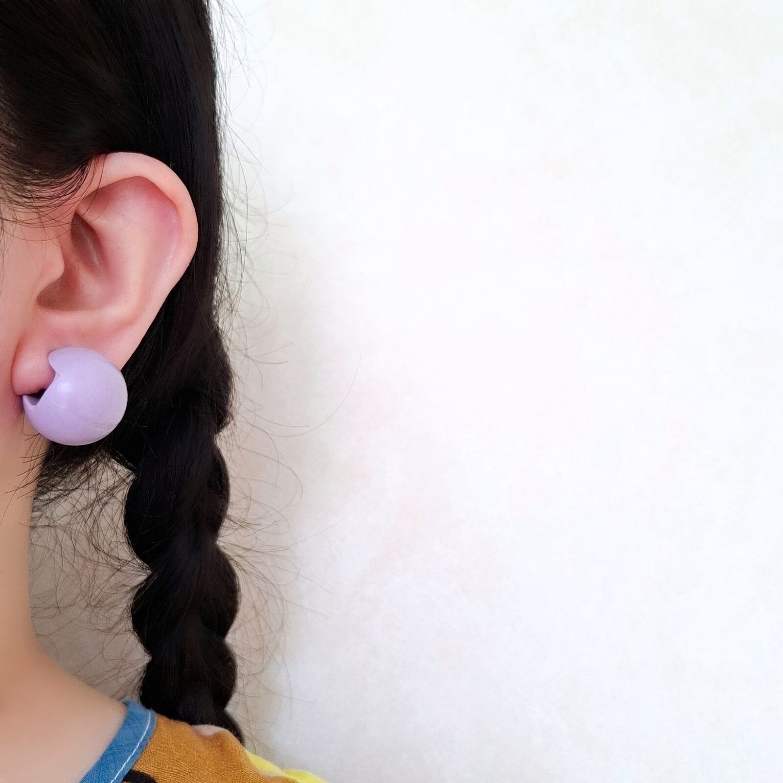 ボールの中にクリップが付いたユニークなデザインで、着用する際は指でクリップを押さえて開いた状態を保ちながら耳たぶを挟めます。