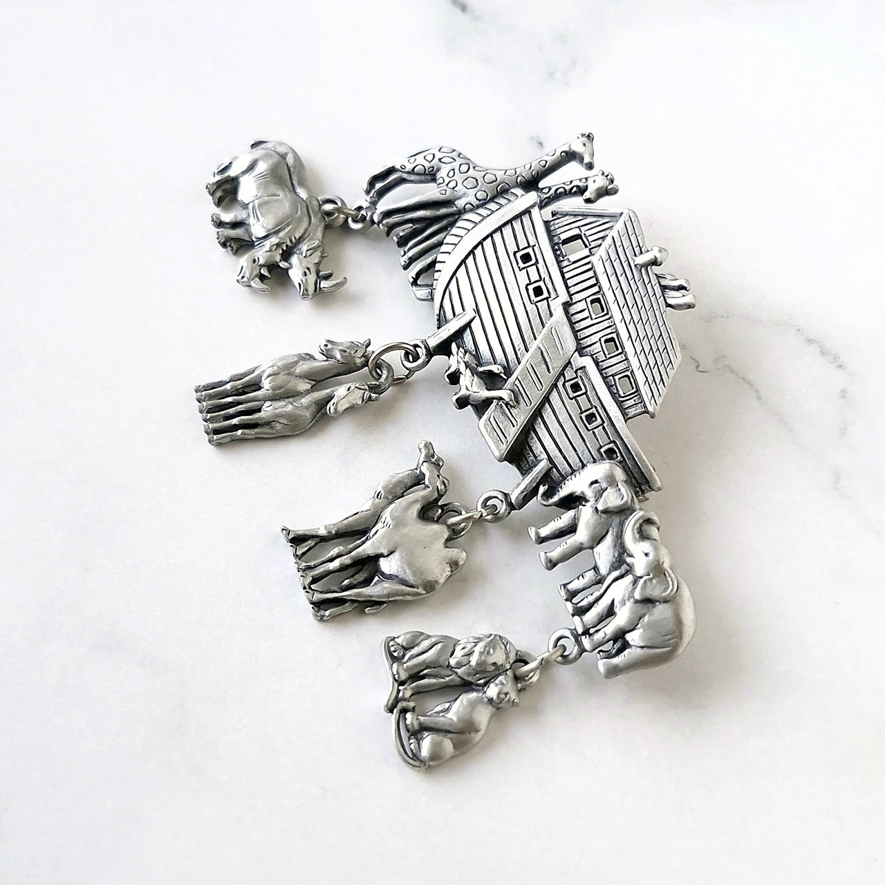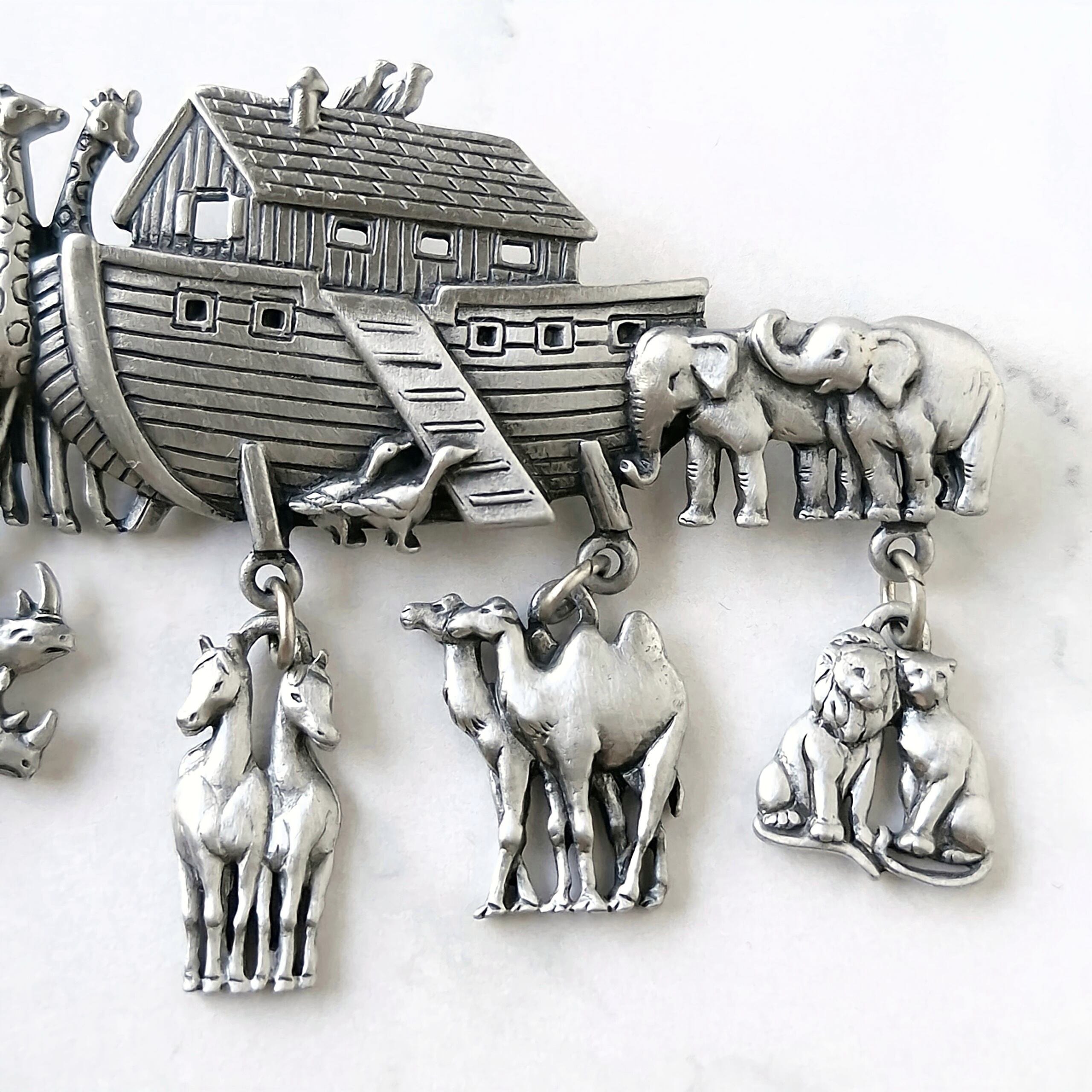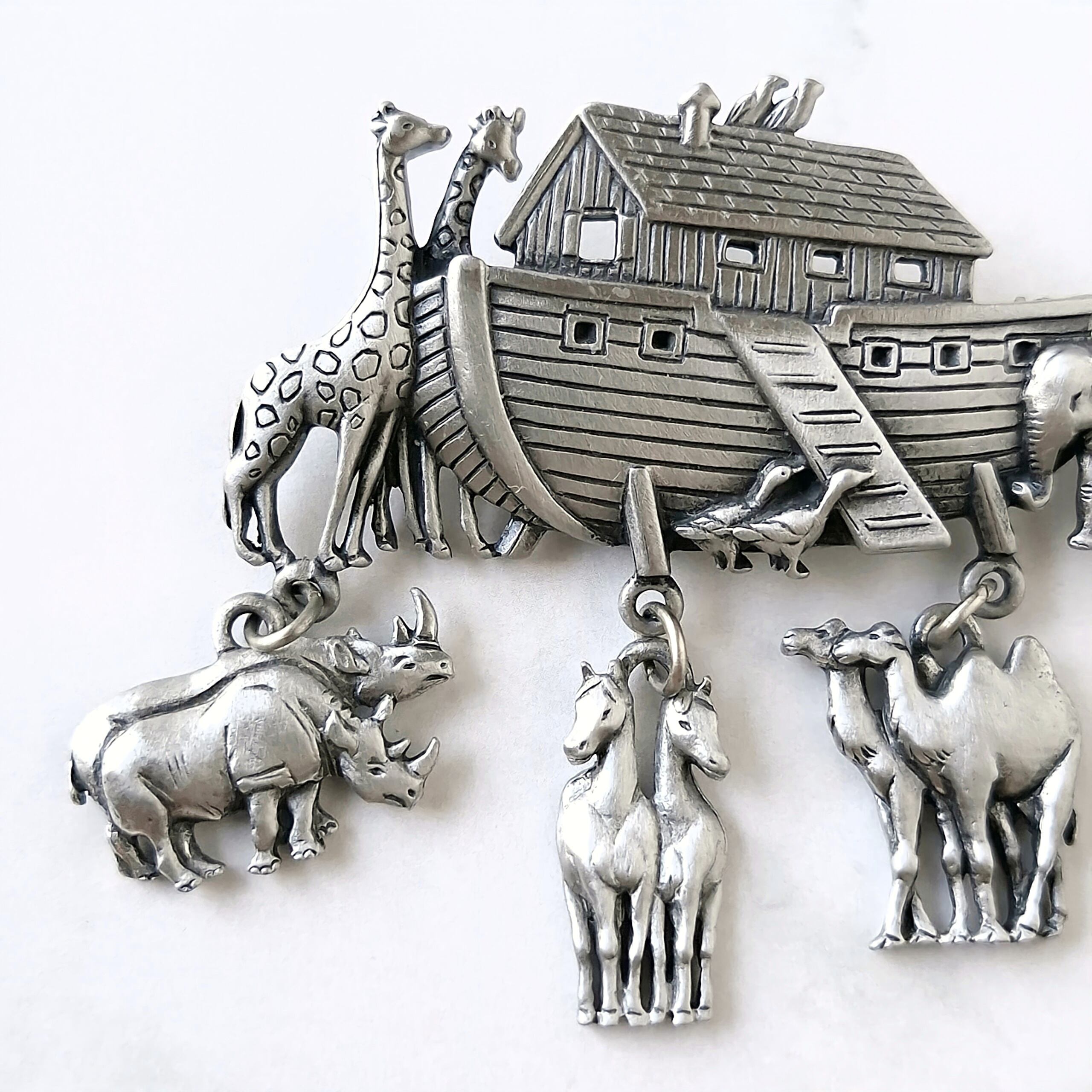 《J.J.》 silver pewter Noah's Ark vintage brooch ジェイジェイ JJ ジョネットジュエリー ヴィンテージブローチ