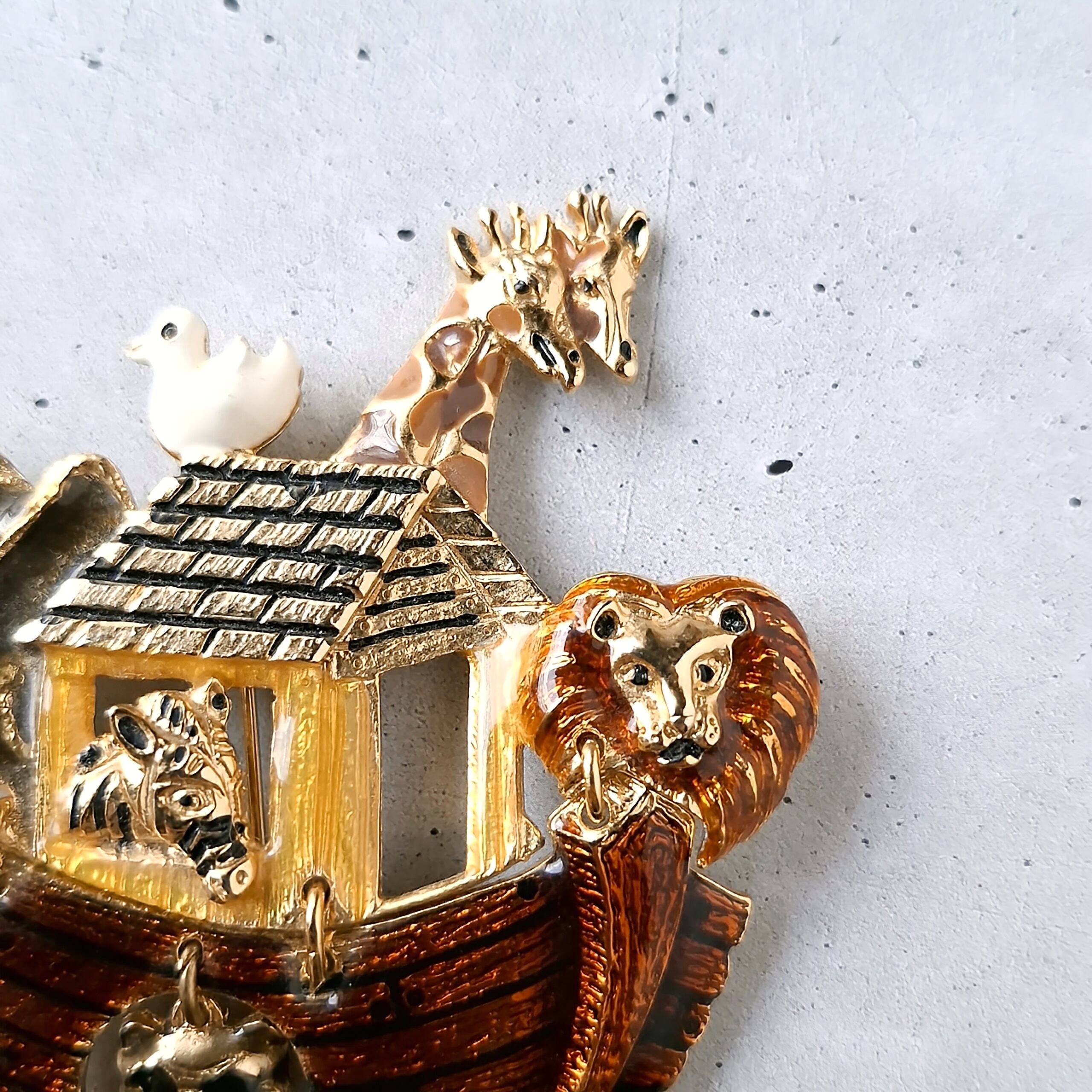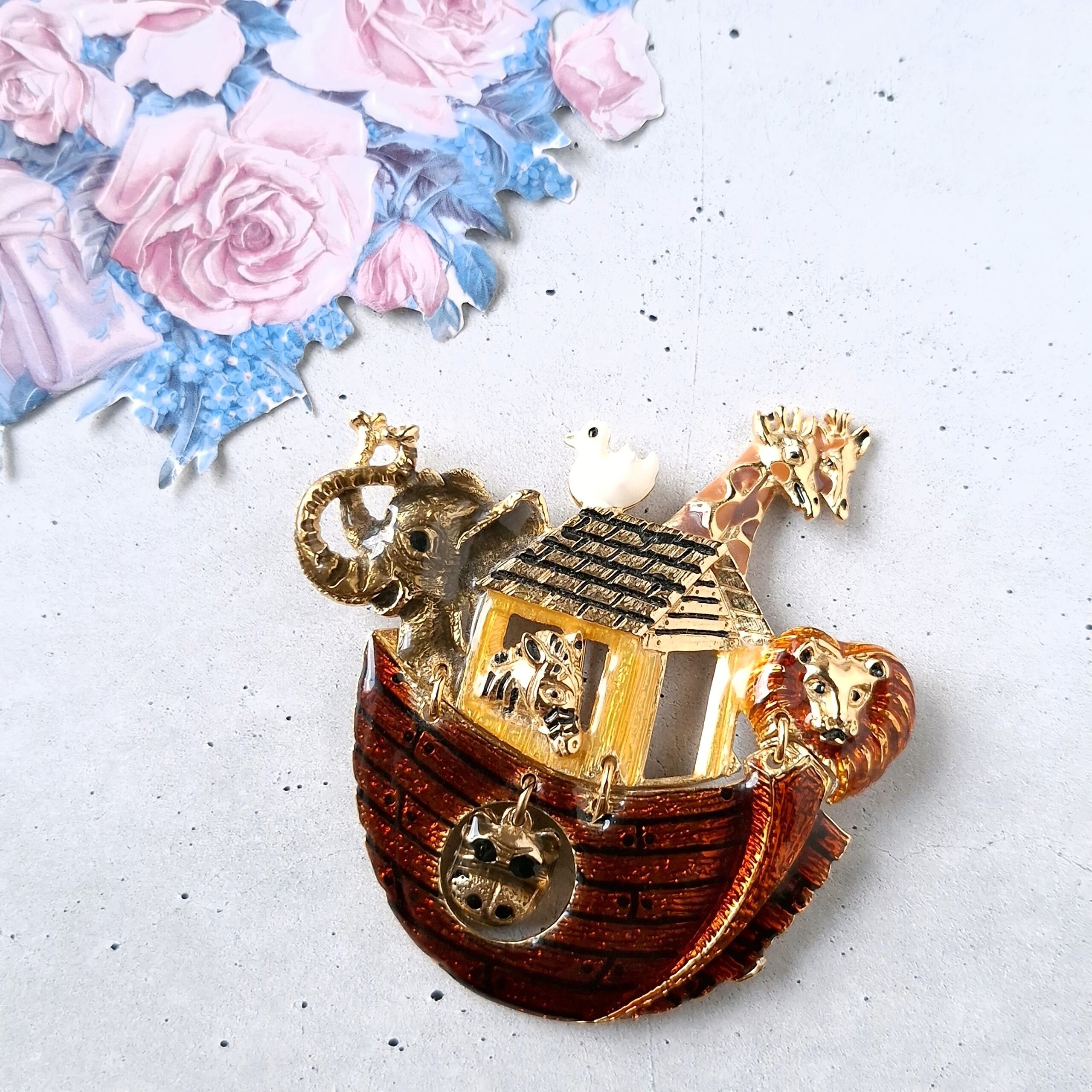 《Don-Lin Jewelry Co.lnc.》 Noah's Ark enamel dangle vintage brooch ドンリン ヴィンテージブローチ