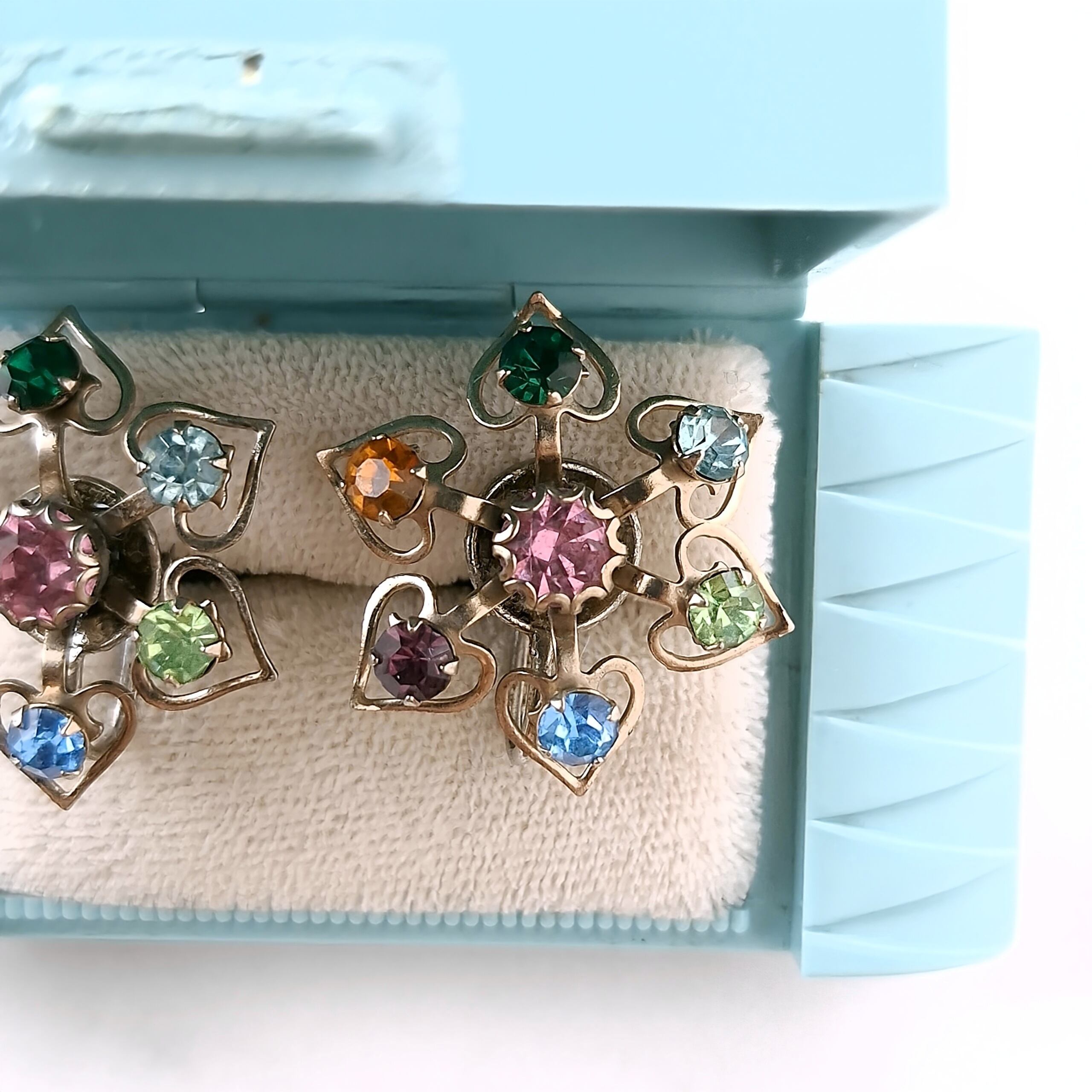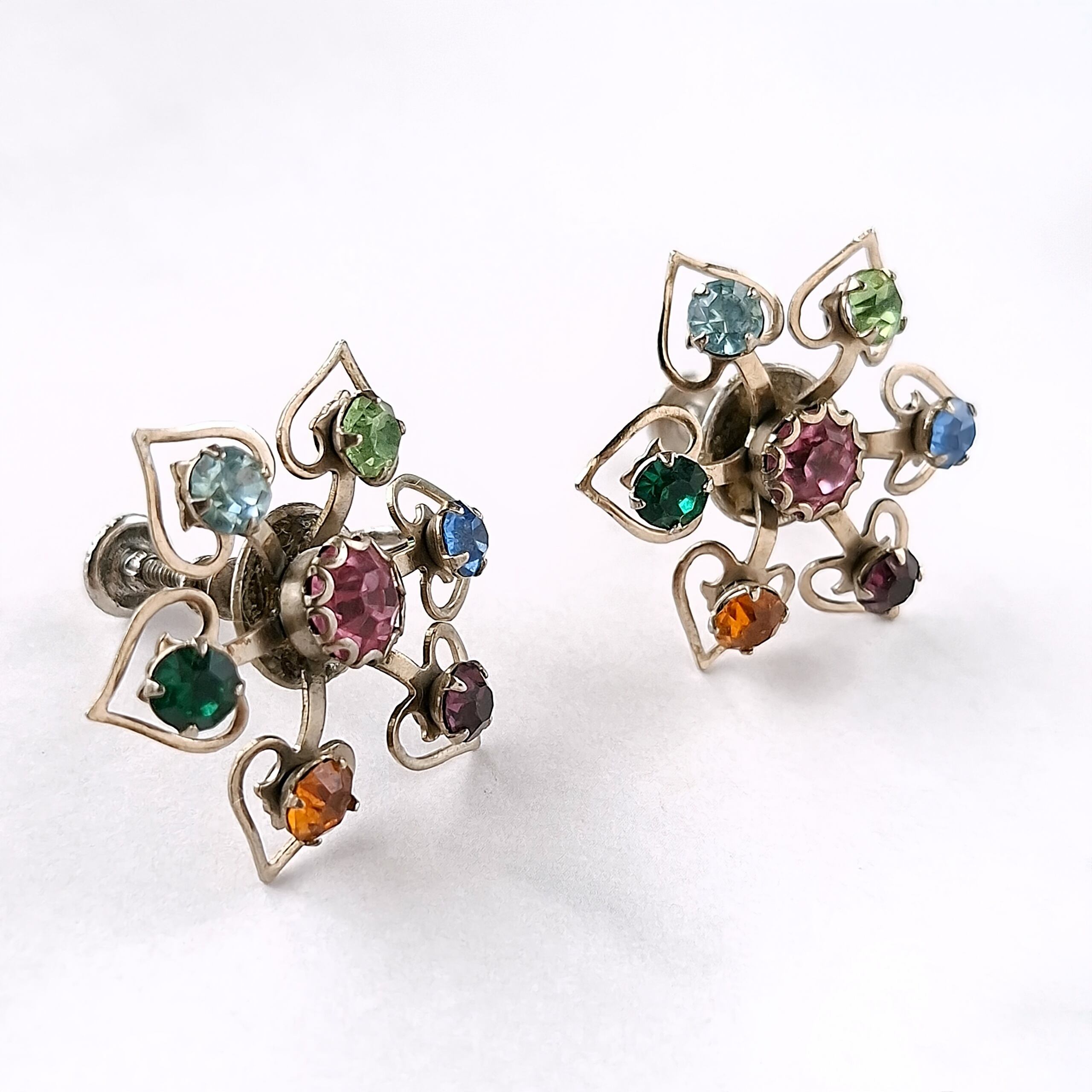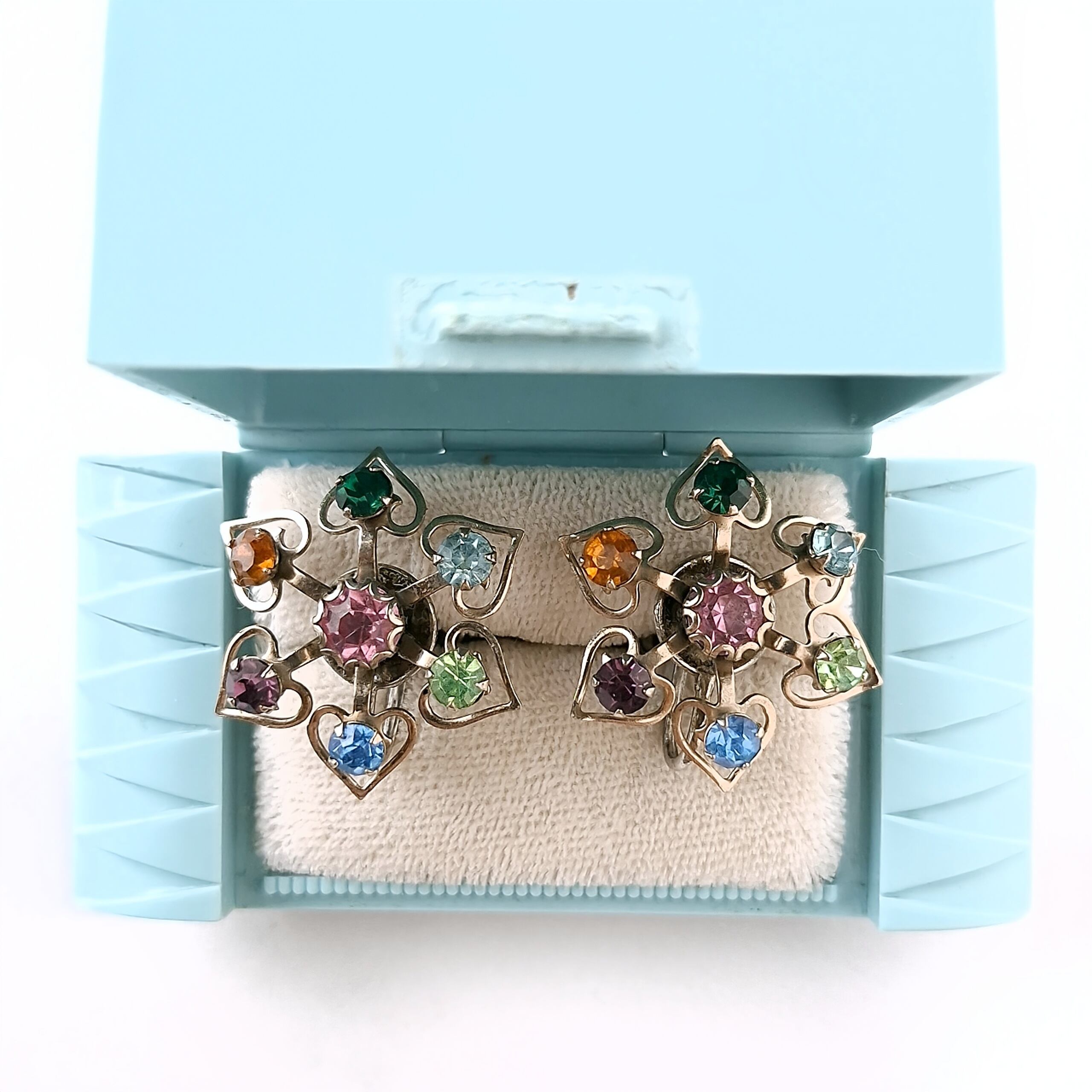 openwork heart petals colorful rhinestone vintage earrings ヴィンテージイヤリング