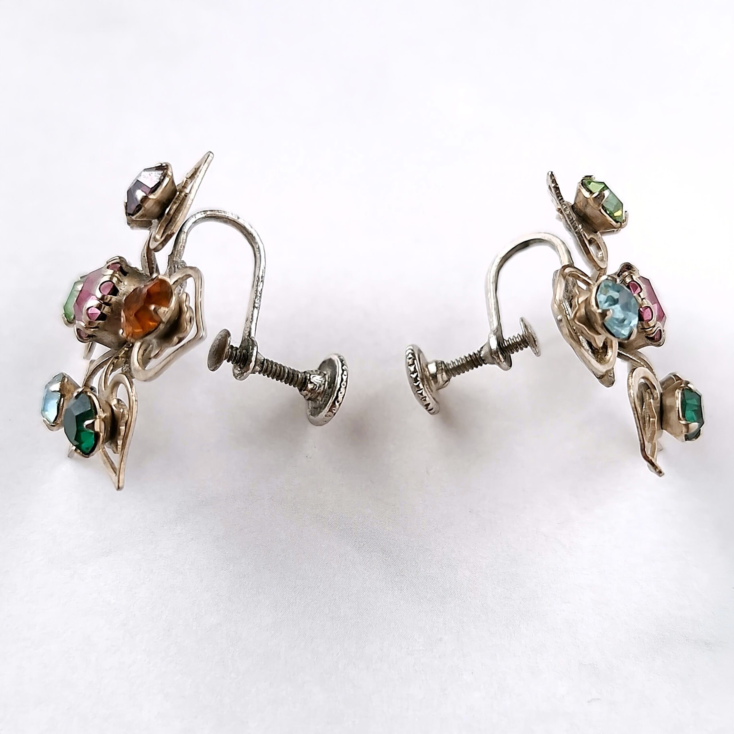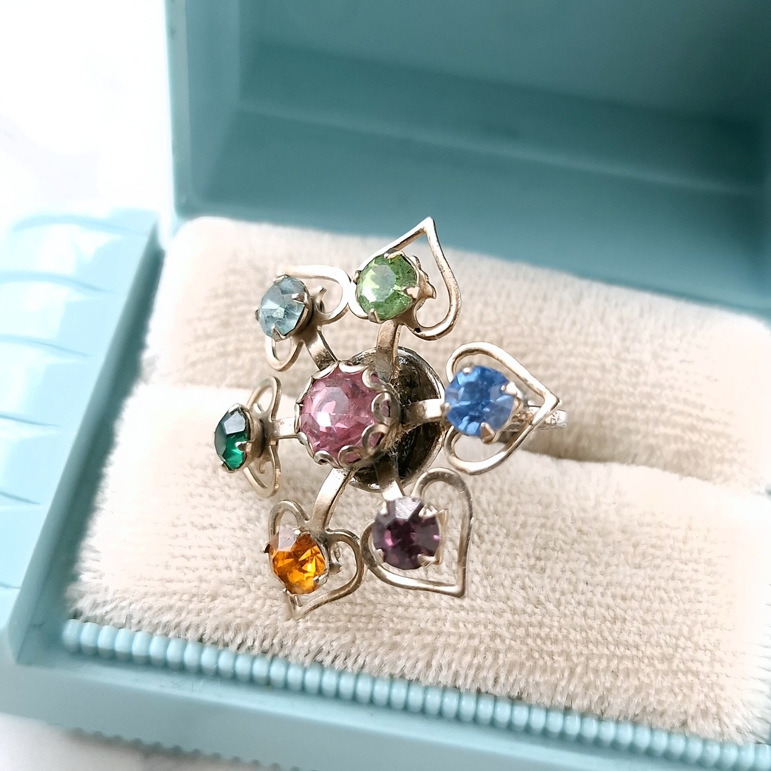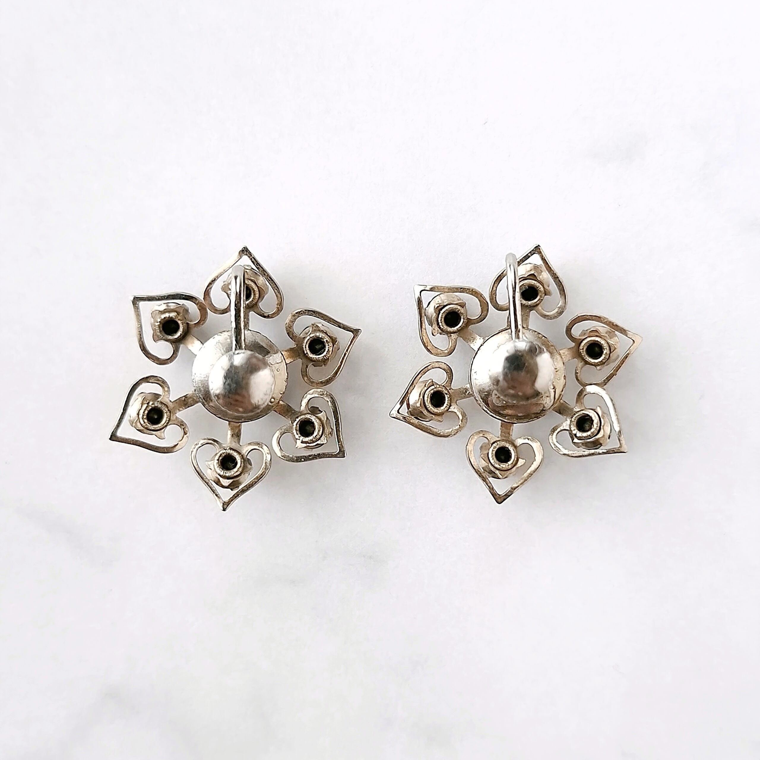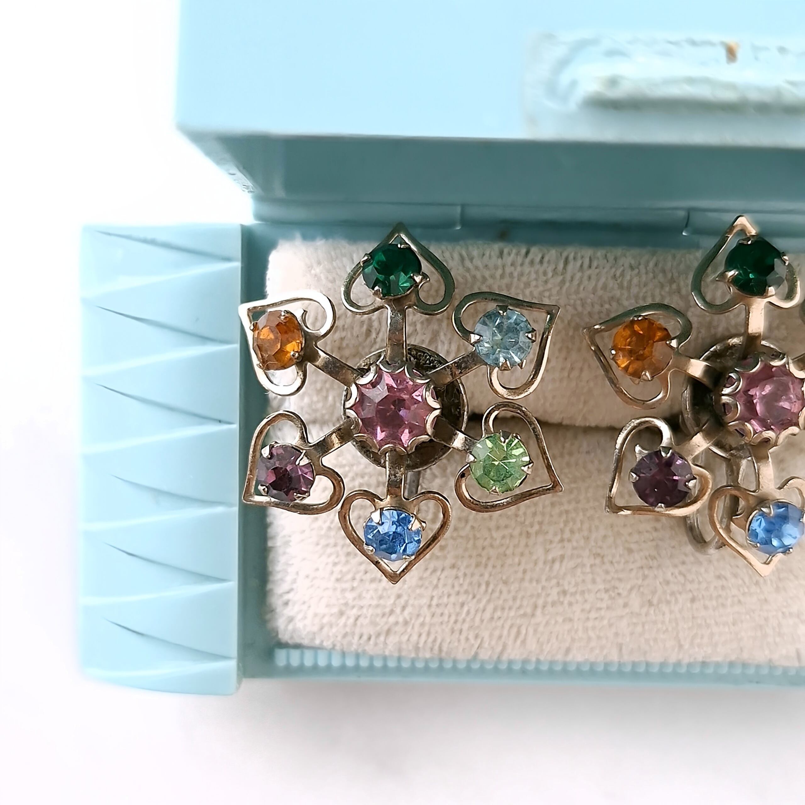 openwork heart petals colorful rhinestone vintage earrings ヴィンテージイヤリング