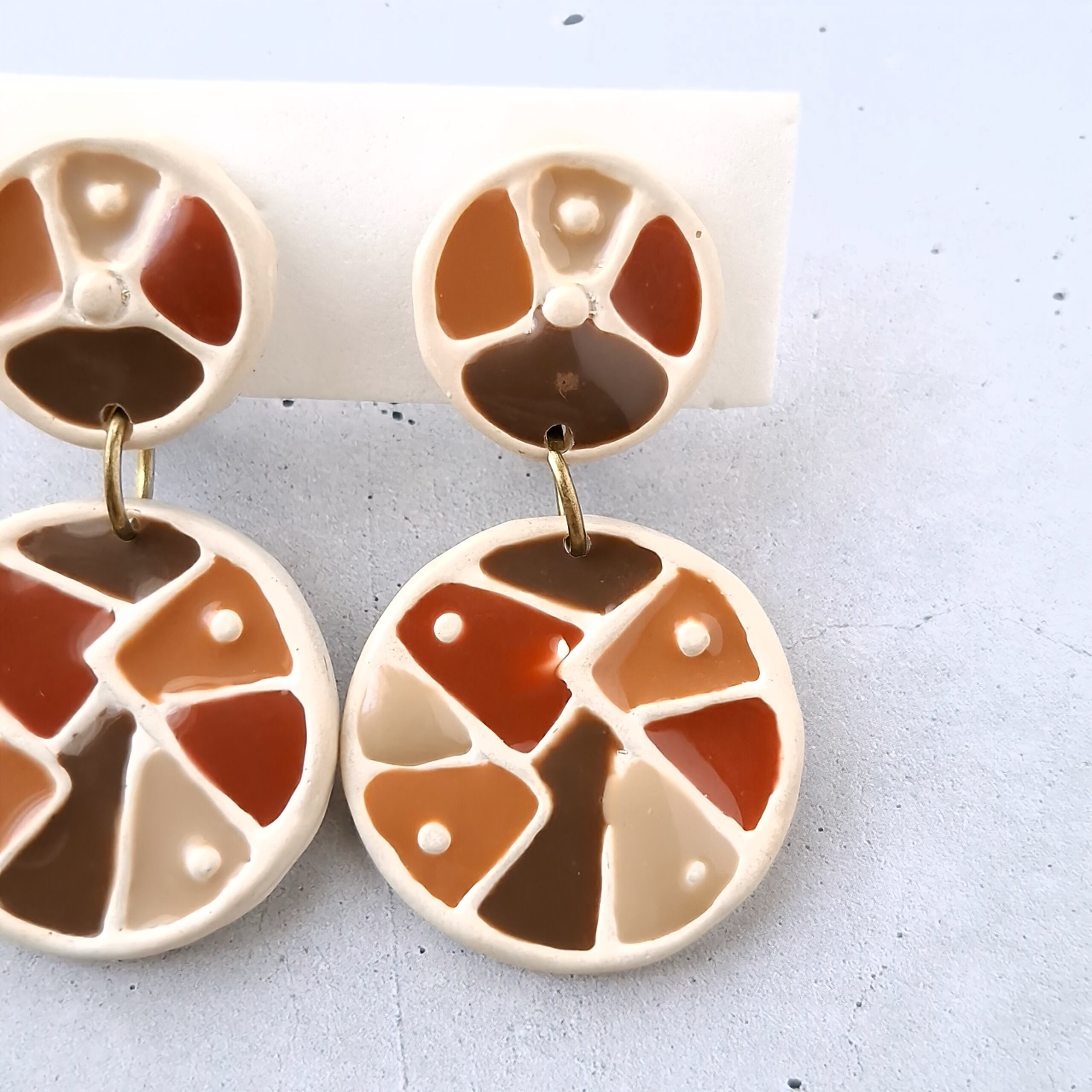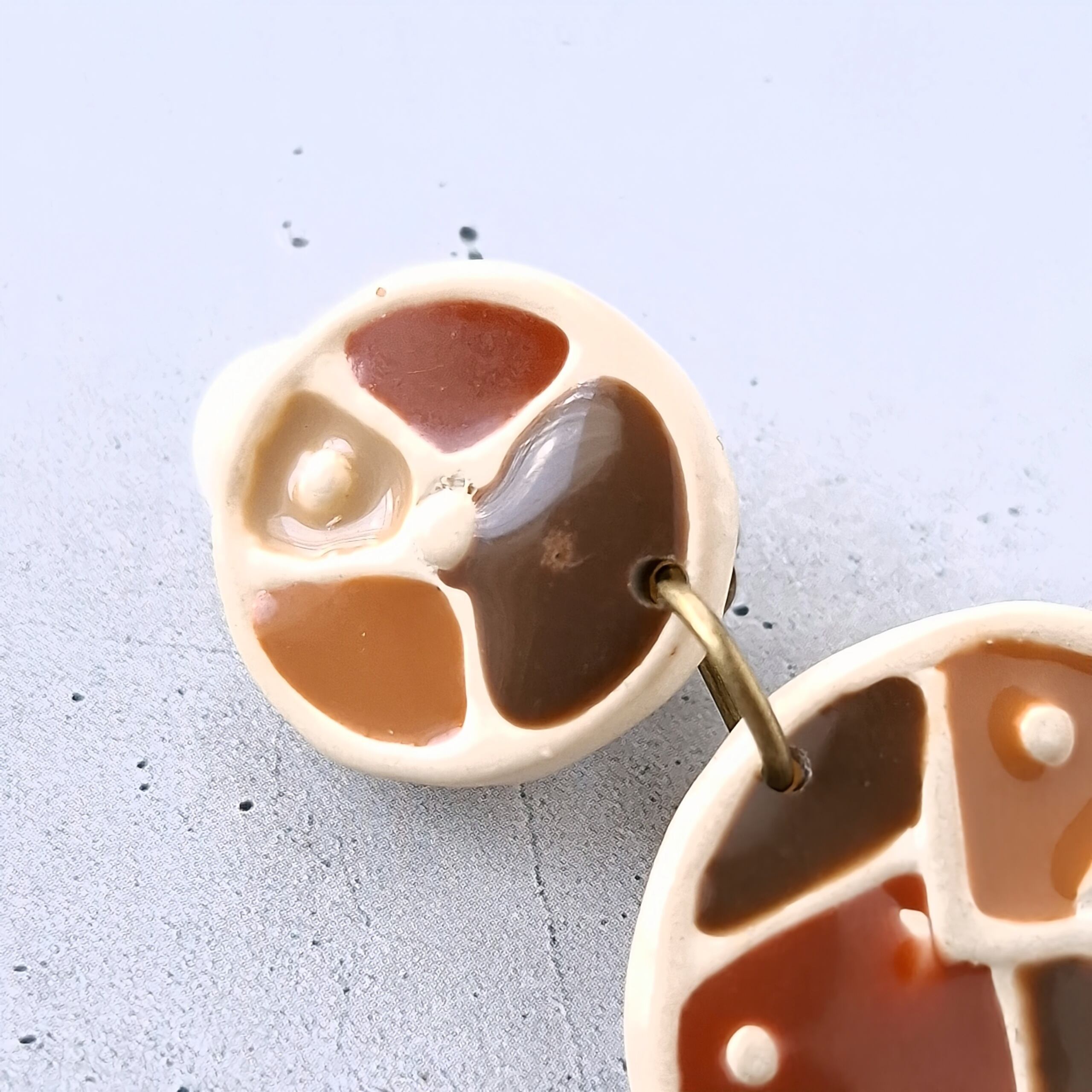 shades of brown enamel beige round plastic dangle vintage earrings ヴィンテージイヤリング