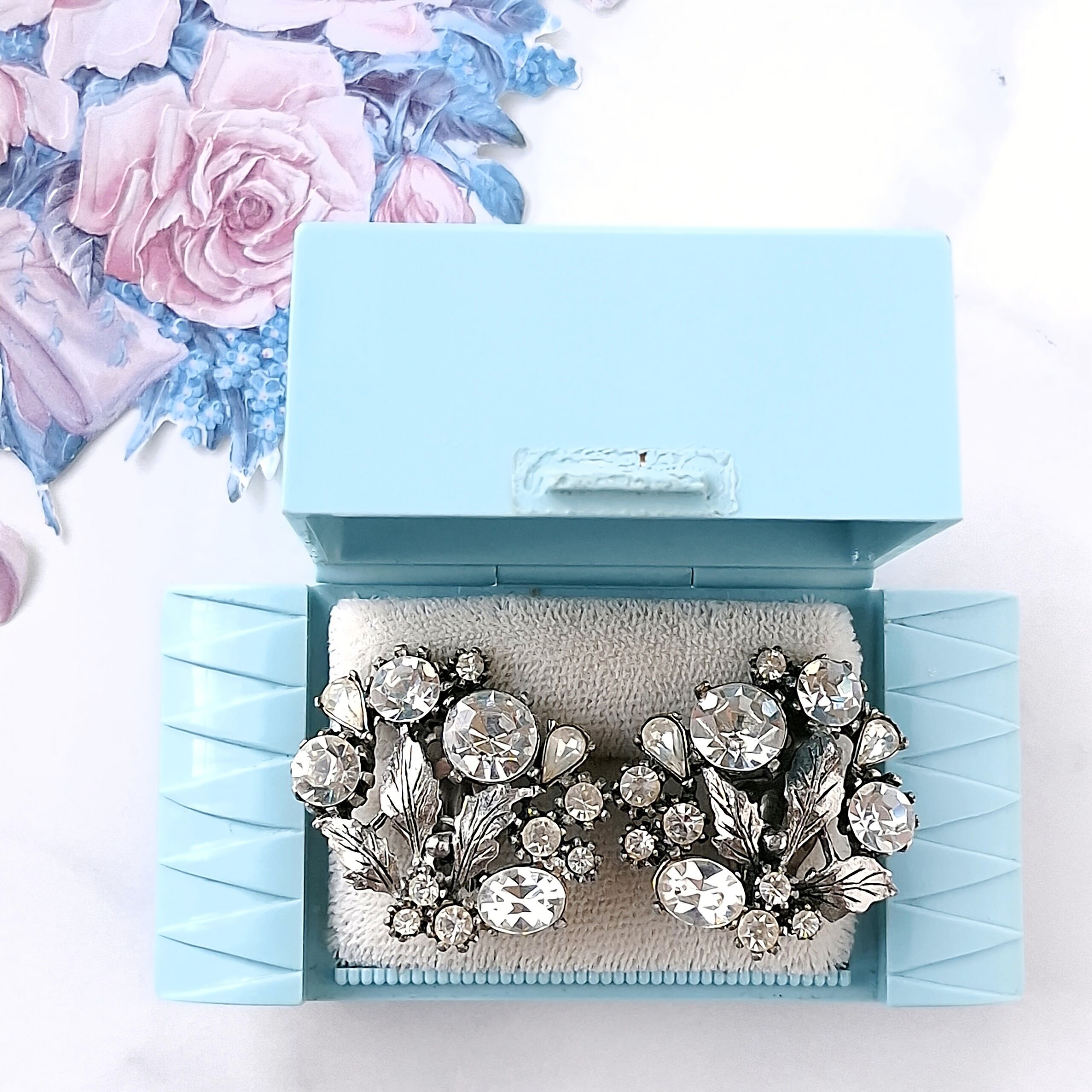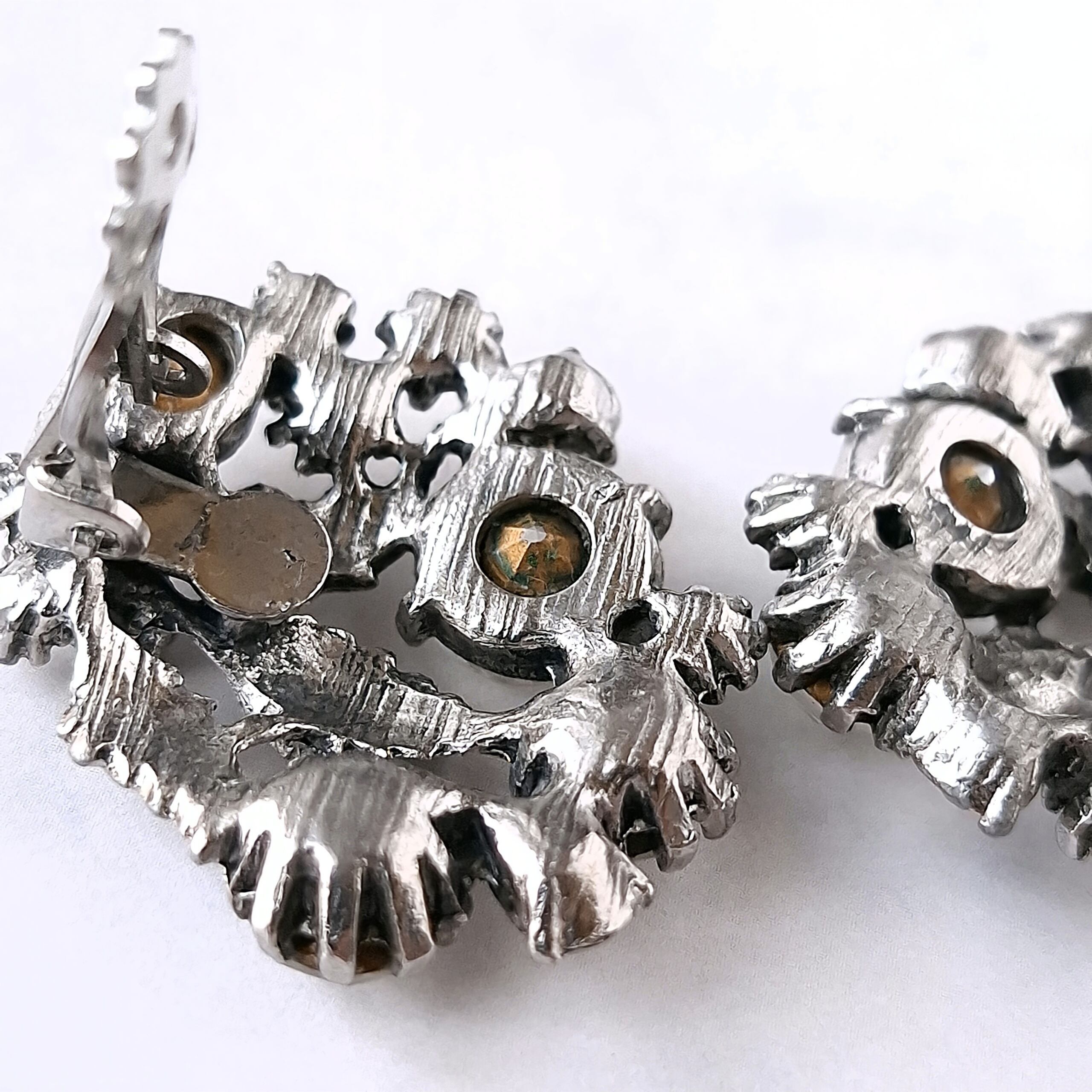 1904年にアメリカのニューヨークで創業したLISNER(リスナー)のシルバーメタルのリーフを囲うようにクリアラインストーンが散りばめられたデザインのヴィンテージイヤリングです。