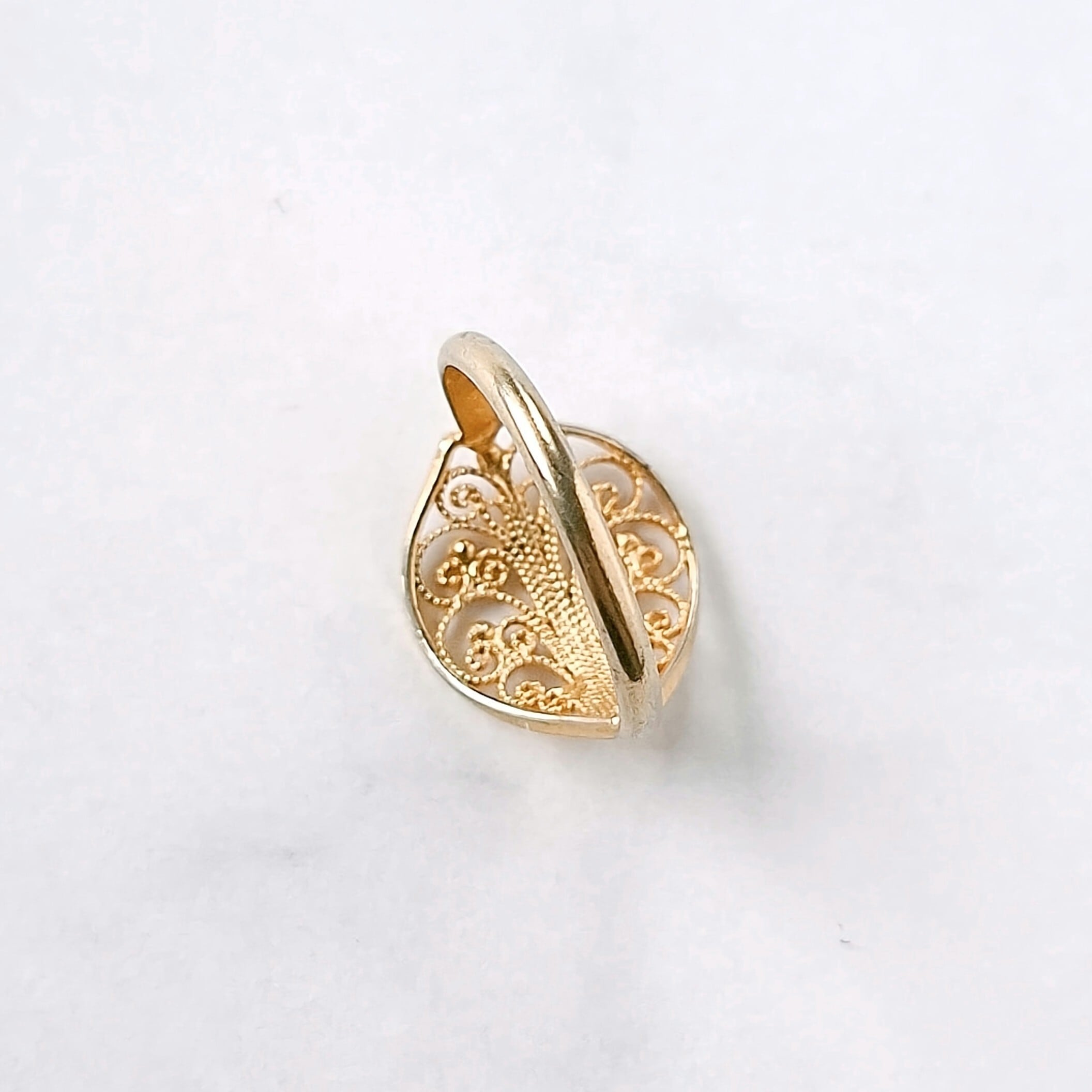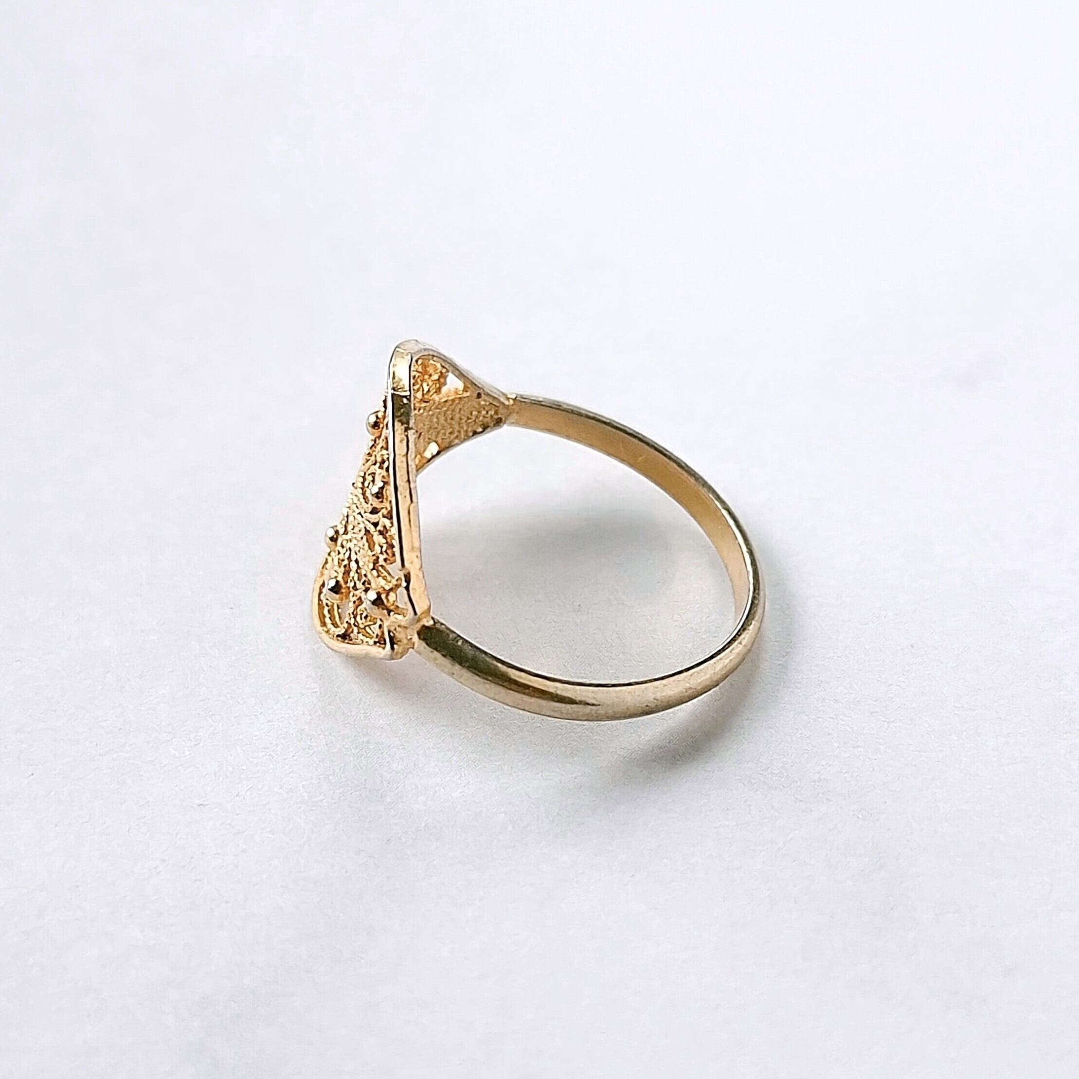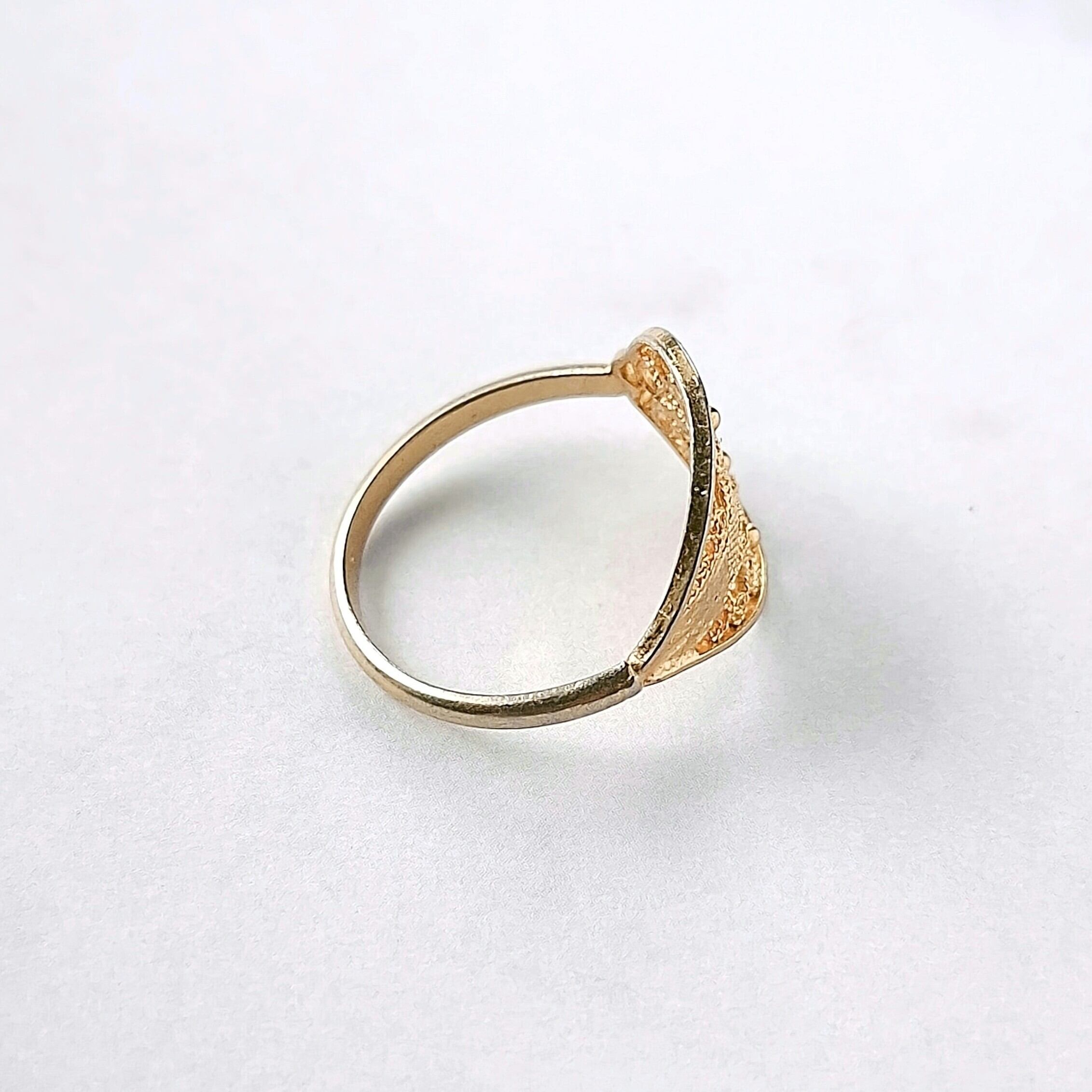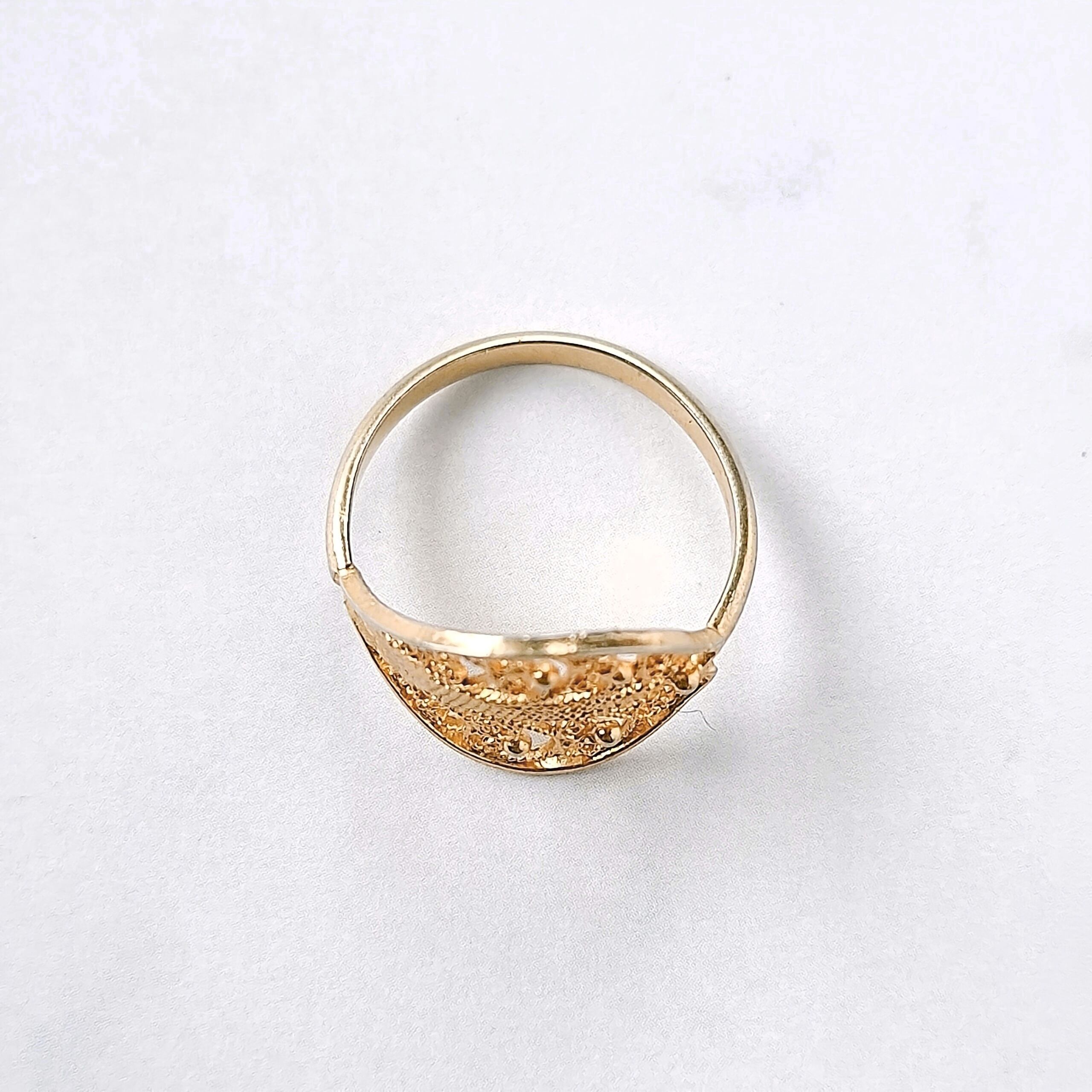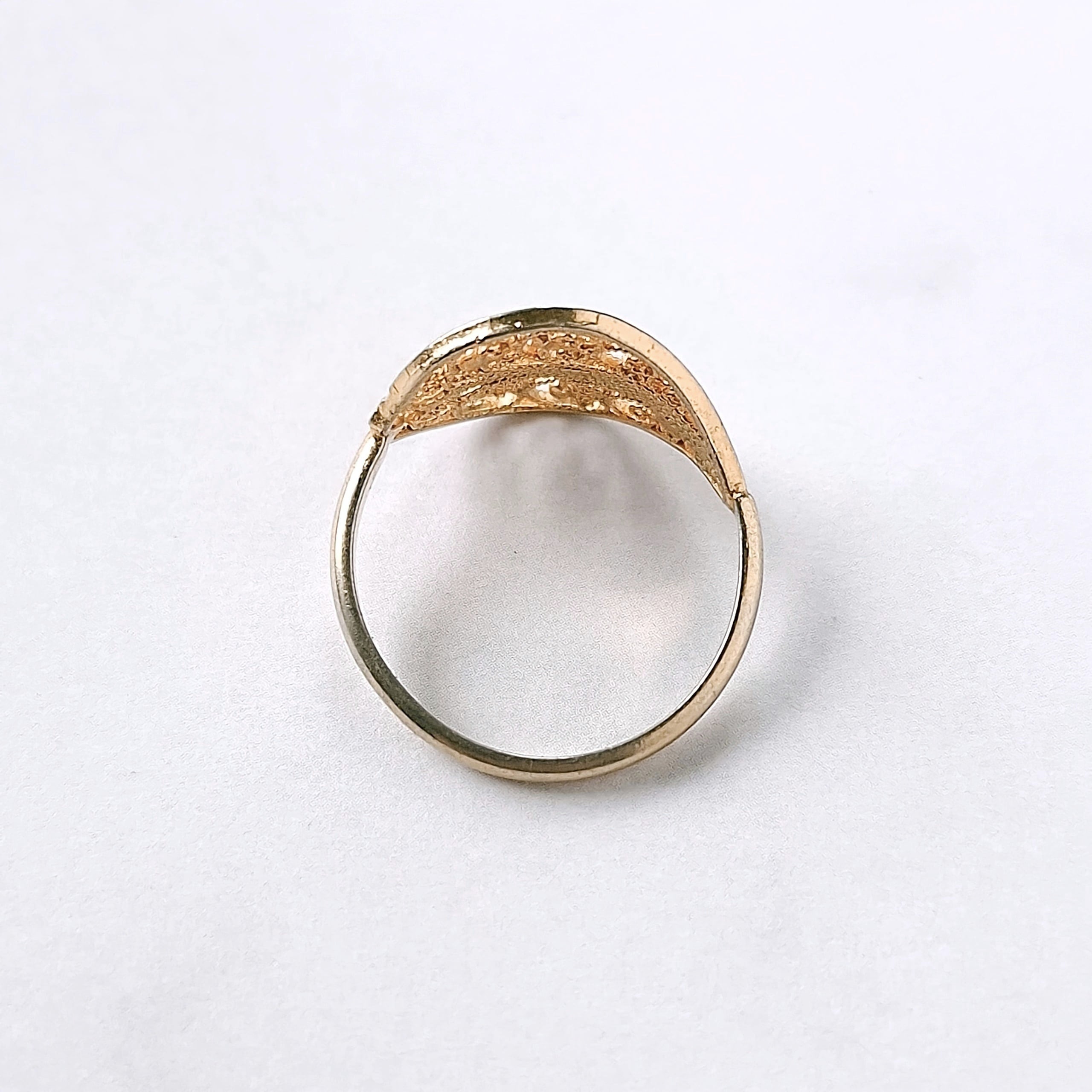 オープンワークのリーフにフィリグリー細工が施されたヴィンテージリングです。