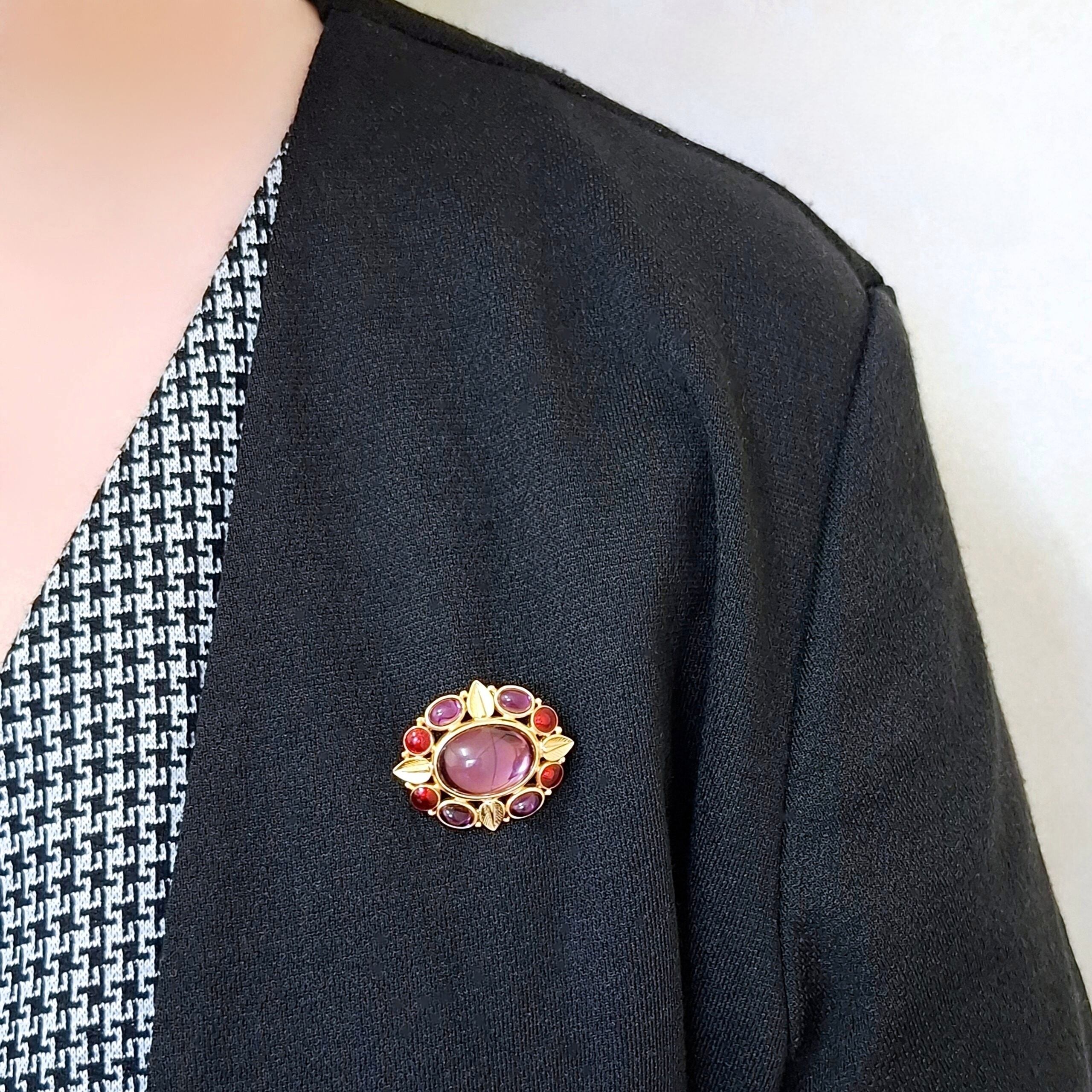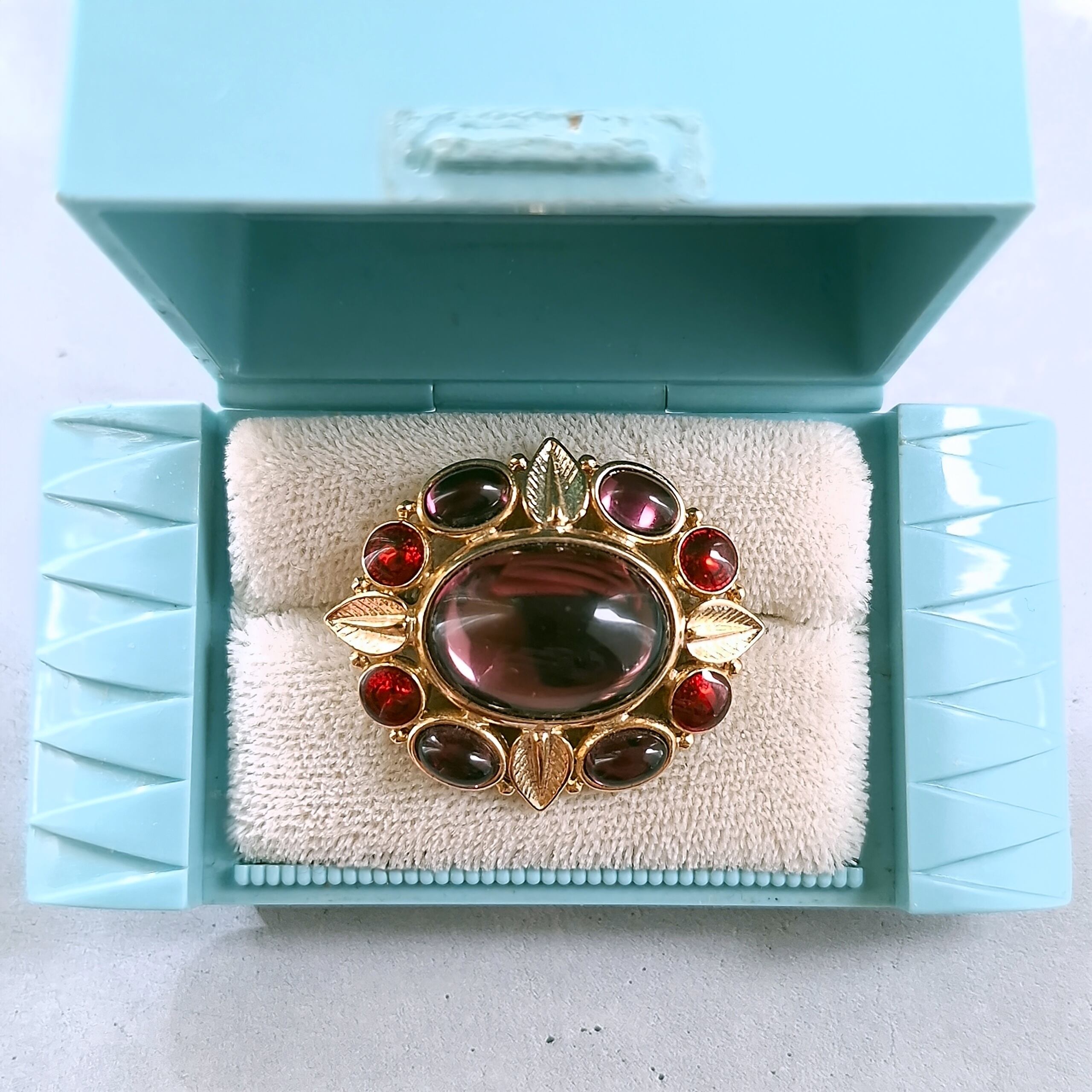 《Liz Claiborne》 purple glass clear red enamel leaf vintage brooch リズ・クレイボーン ヴィンテージブローチ