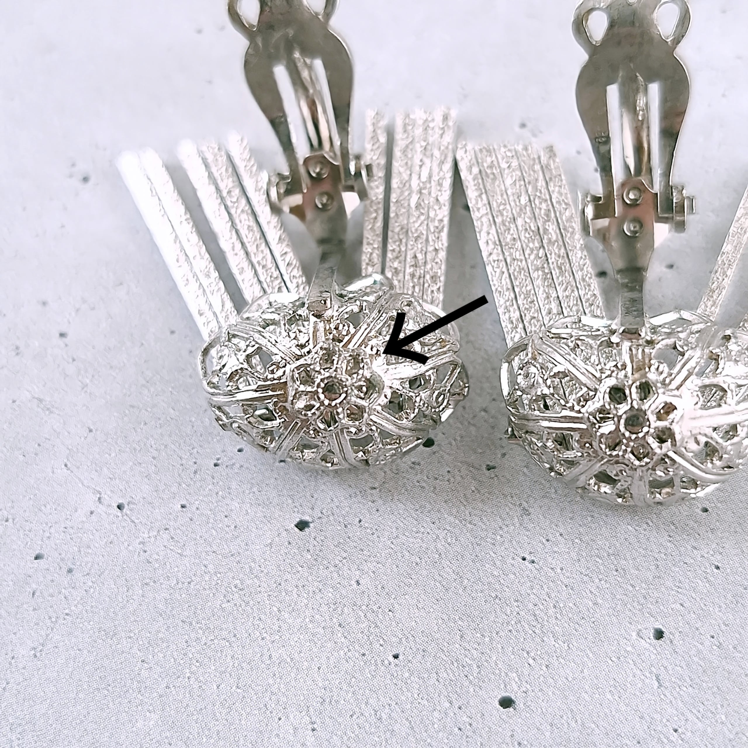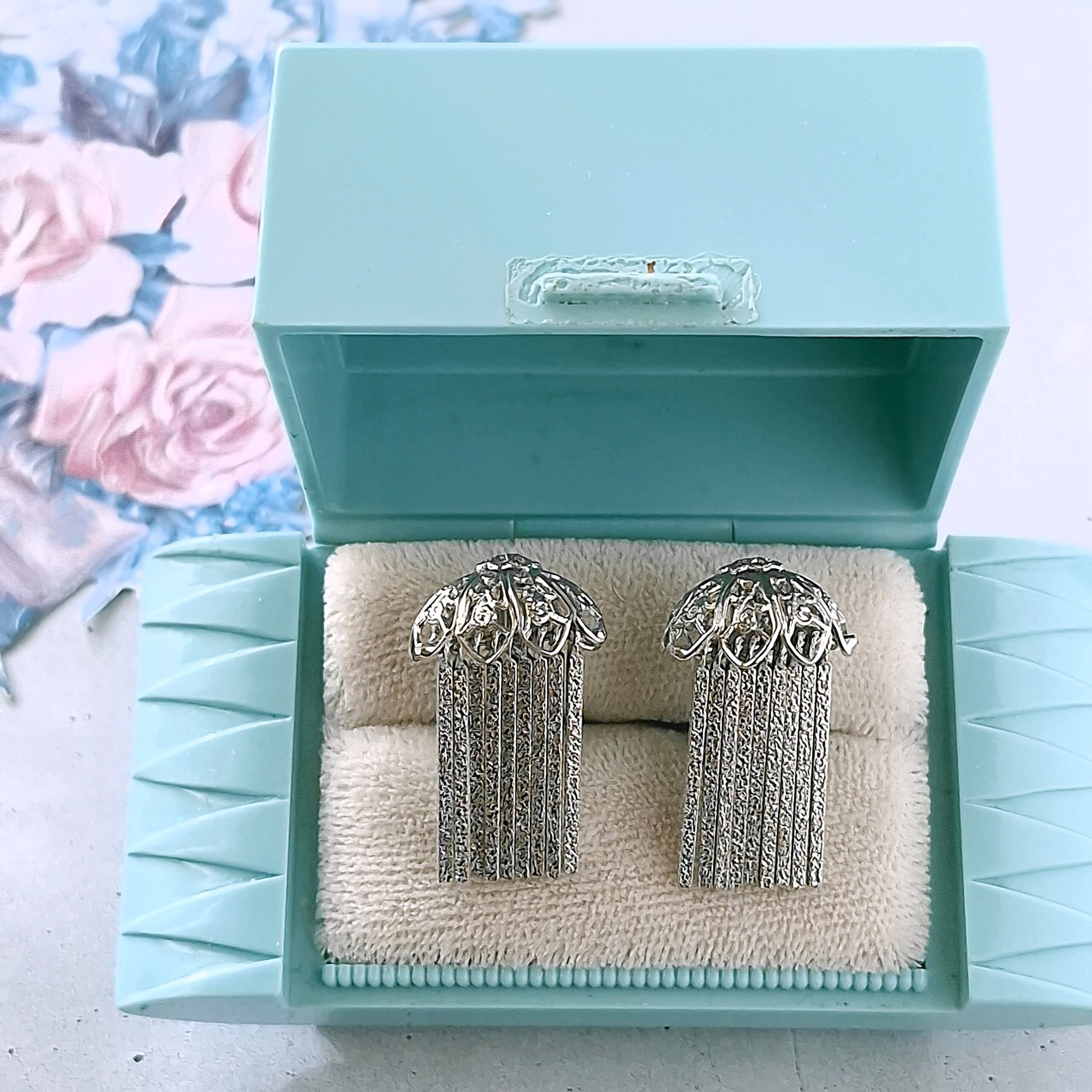 アメリカのコスチュームジュエリーブランドLewis Segal(ルイス シーガル)の透かしのキャップから細かな凹凸のあるテクスチャー加工が施されたグリッターのような煌めきのある棒状のメタルがぶら下がった、クラゲのようなデザインのヴィンテージイヤリングです。
