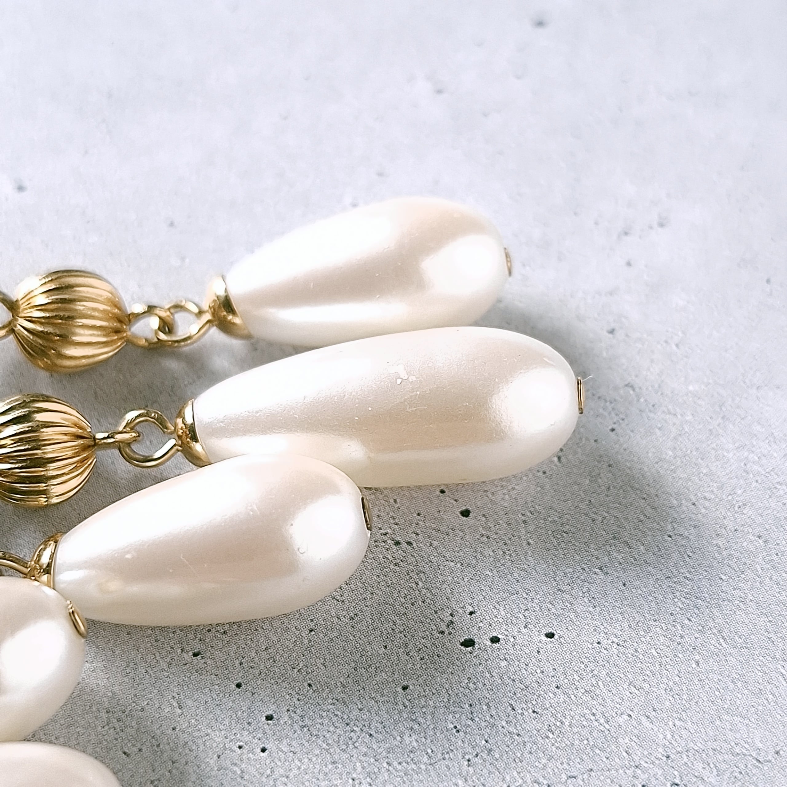 gold round teardrop faux pearl dangle vintage earrings ヴィンテージイヤリング