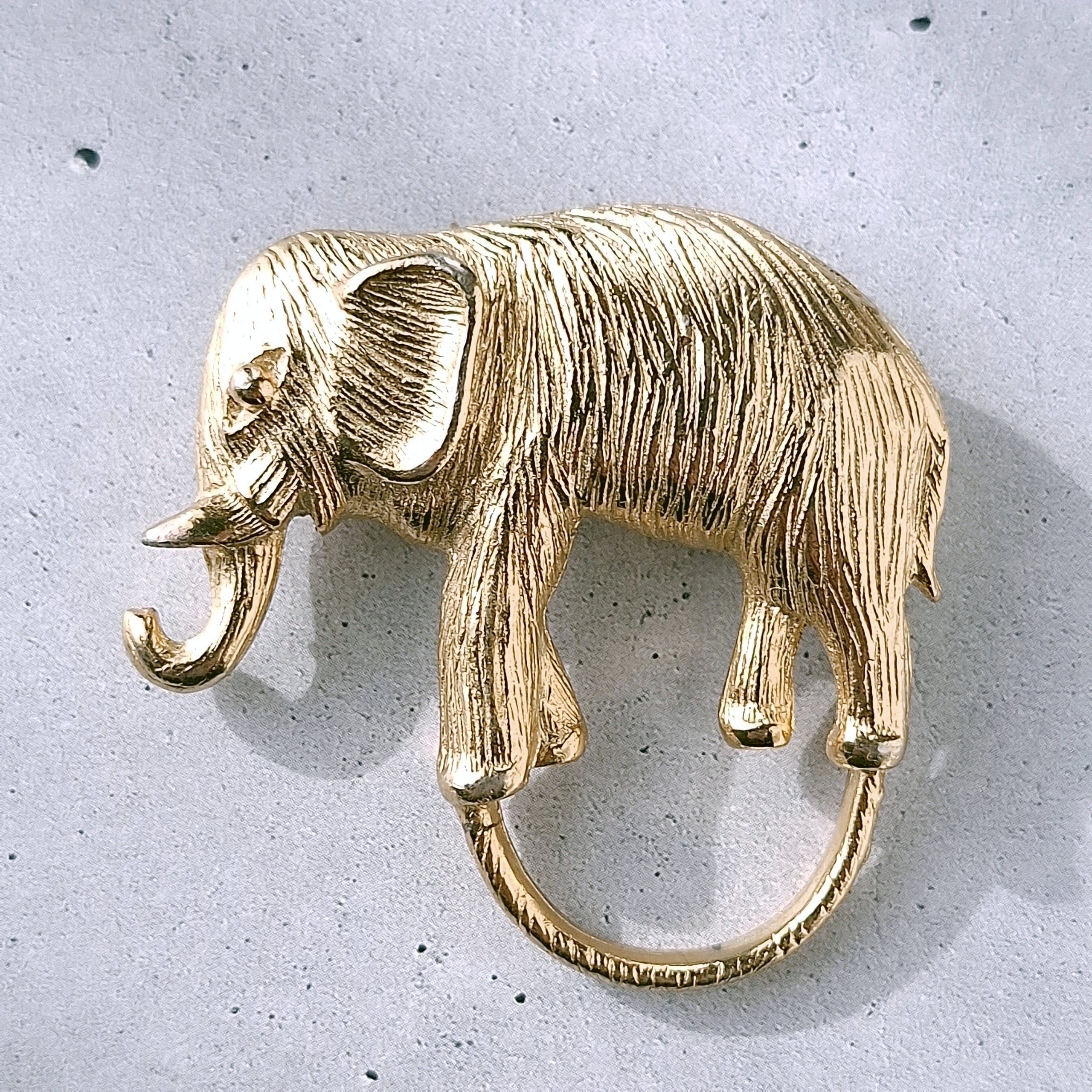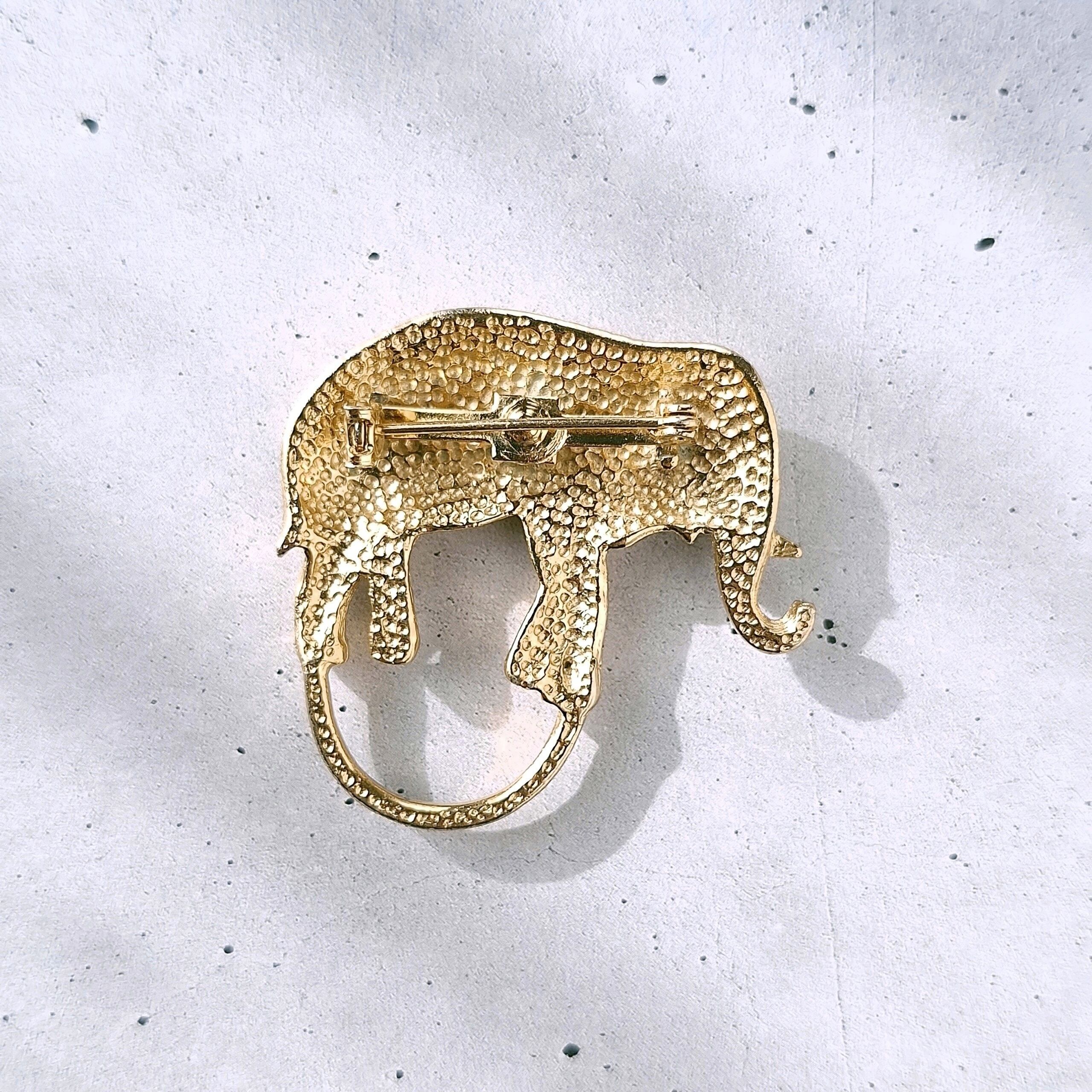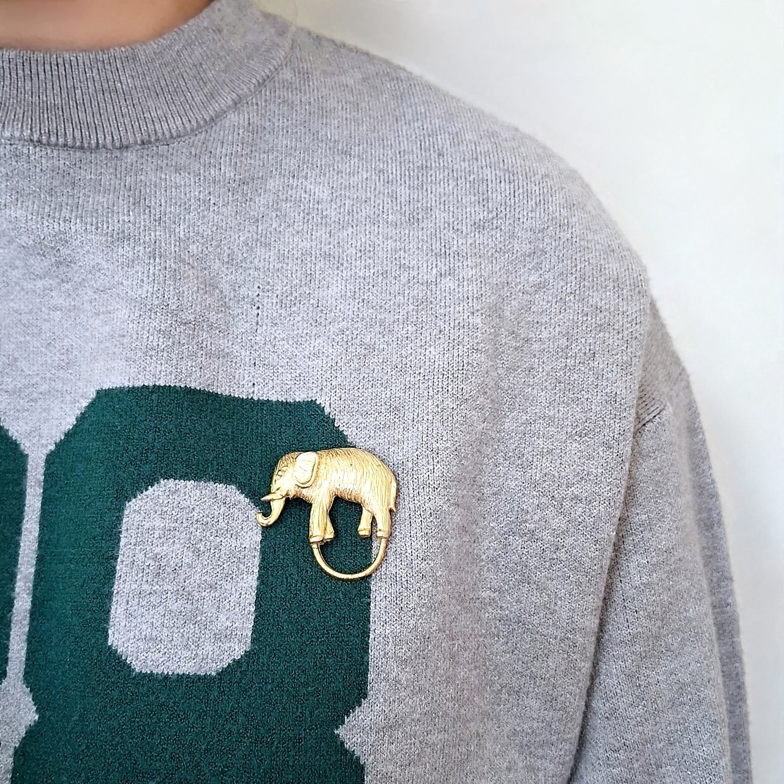 メガネやサングラスを引っ掛けられる輪っかが付いたグラスホルダーデザインのゾウのヴィンテージブローチです。