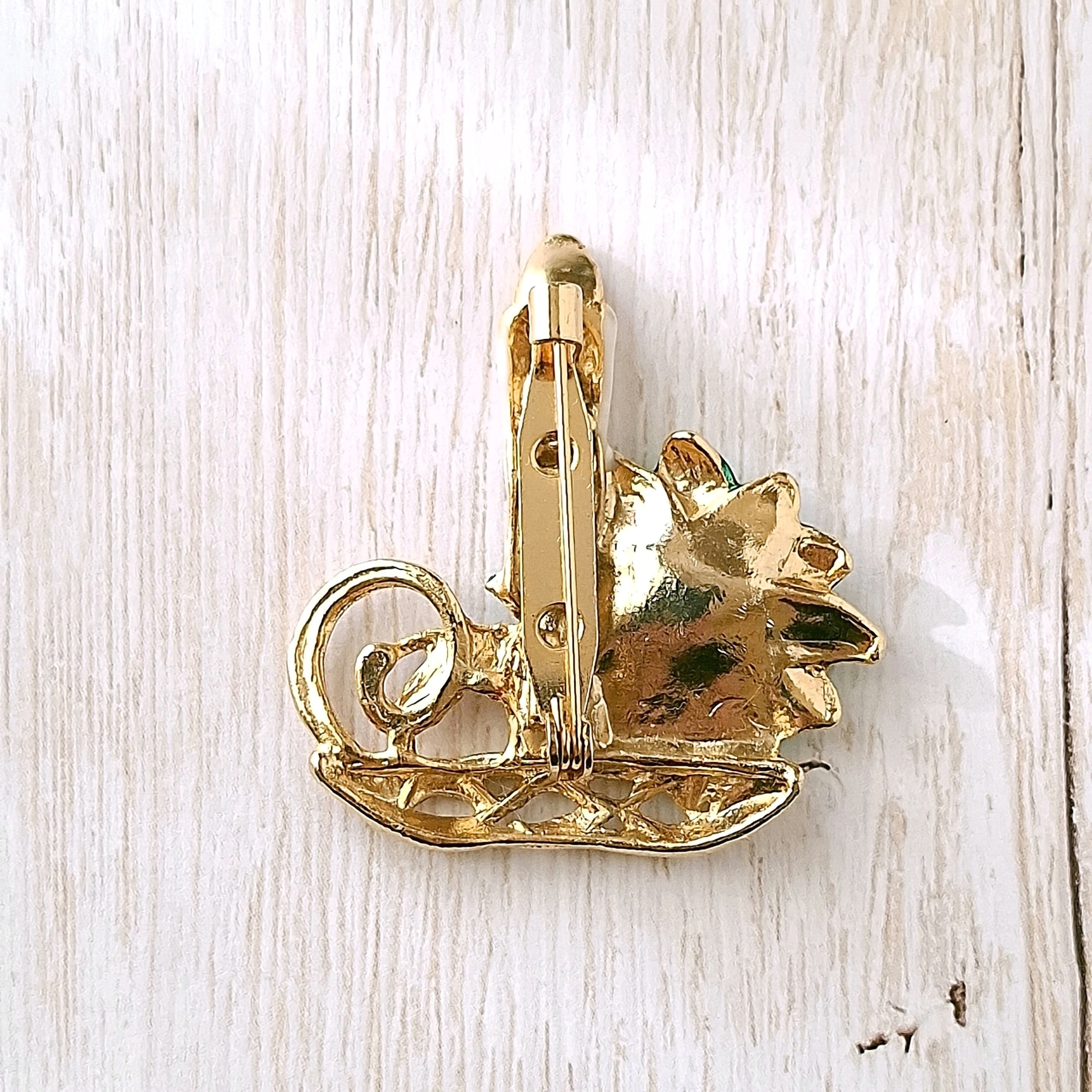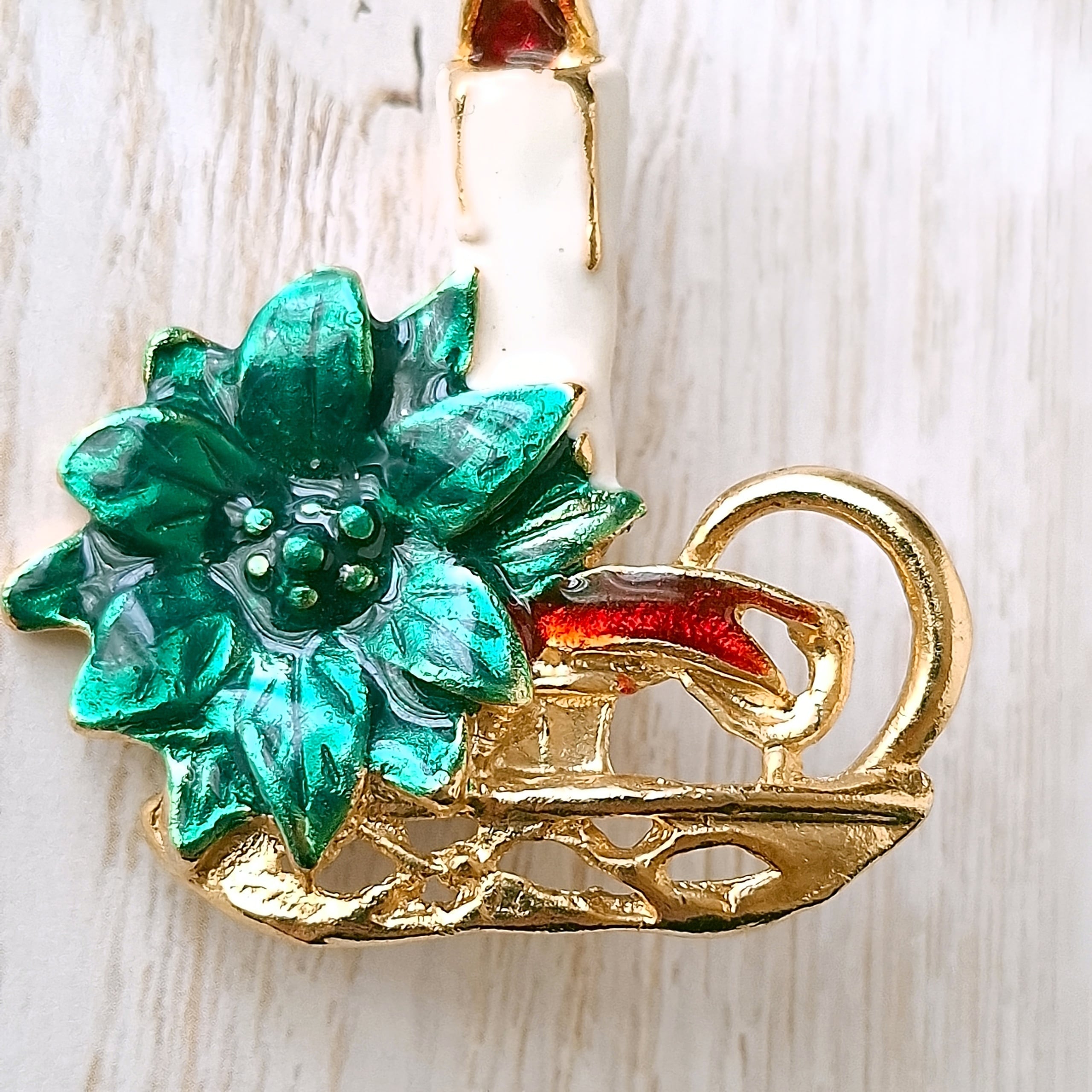 グリーンのポインセチアが添えられたクリスマスキャンドルのヴィンテージブローチです。