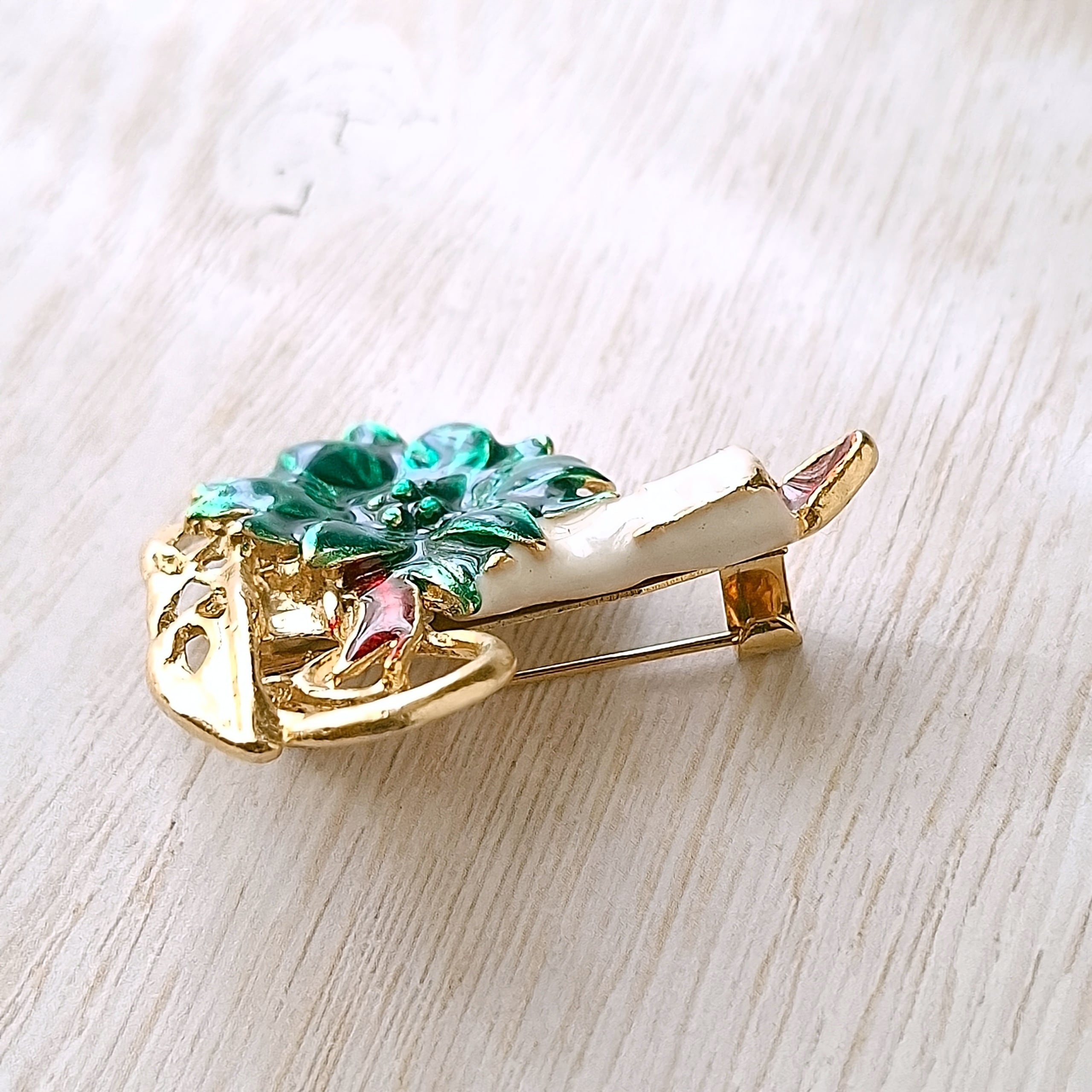 christmas candle poinsettia vintage brooch ヴィンテージブローチ