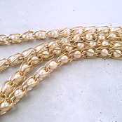 1875年アメリカのマサチューセッツで銀製の時計バンドを製作する会社を創業、第一次世界対戦後に社名を変更してアクセサリーを製作した老舗コスチュームジュエリーメーカーNAPIER(ネイピア)のワイヤーワークデザインチェーンにフェイクパールが閉じ込められたロングタイプのヴィンテージネックレスです。