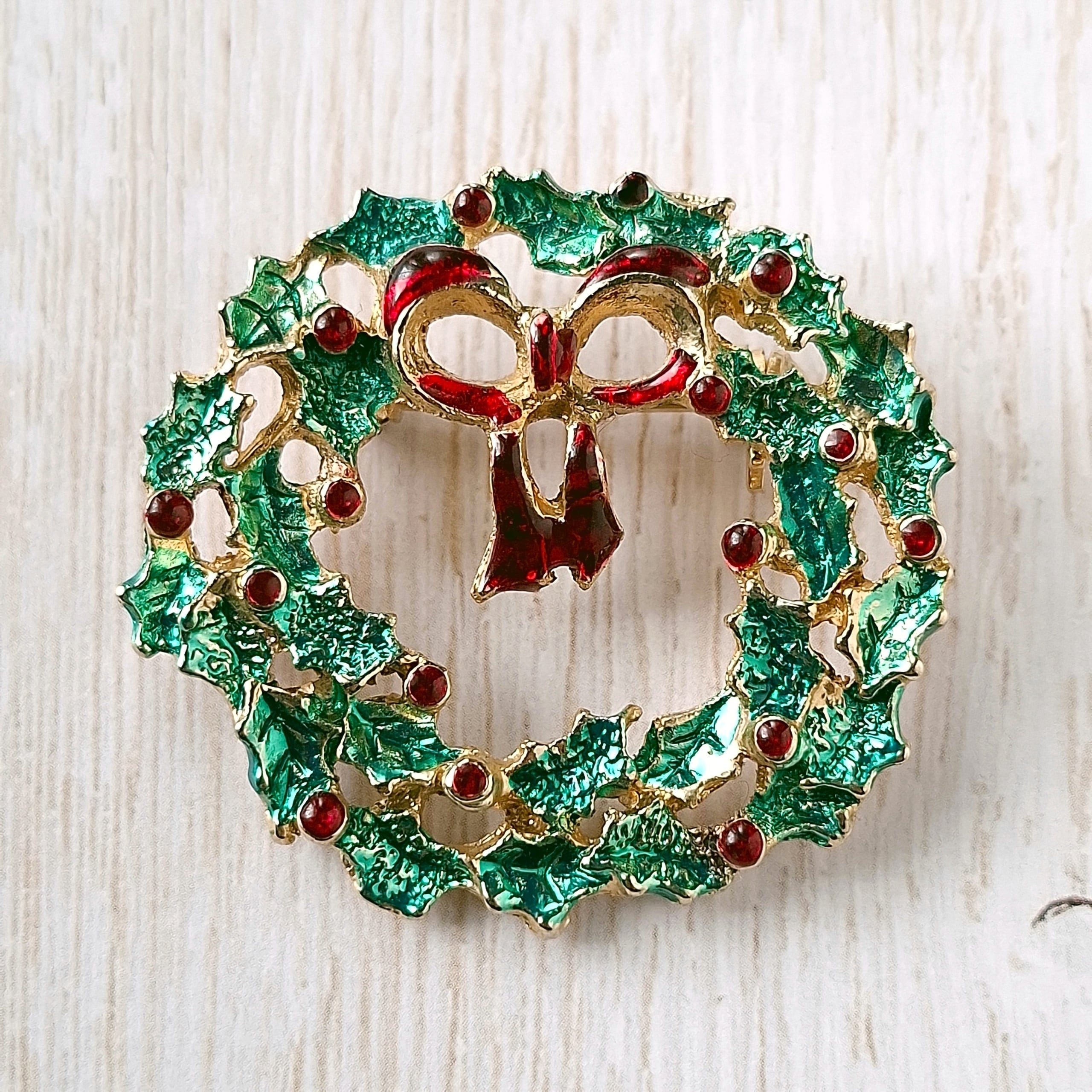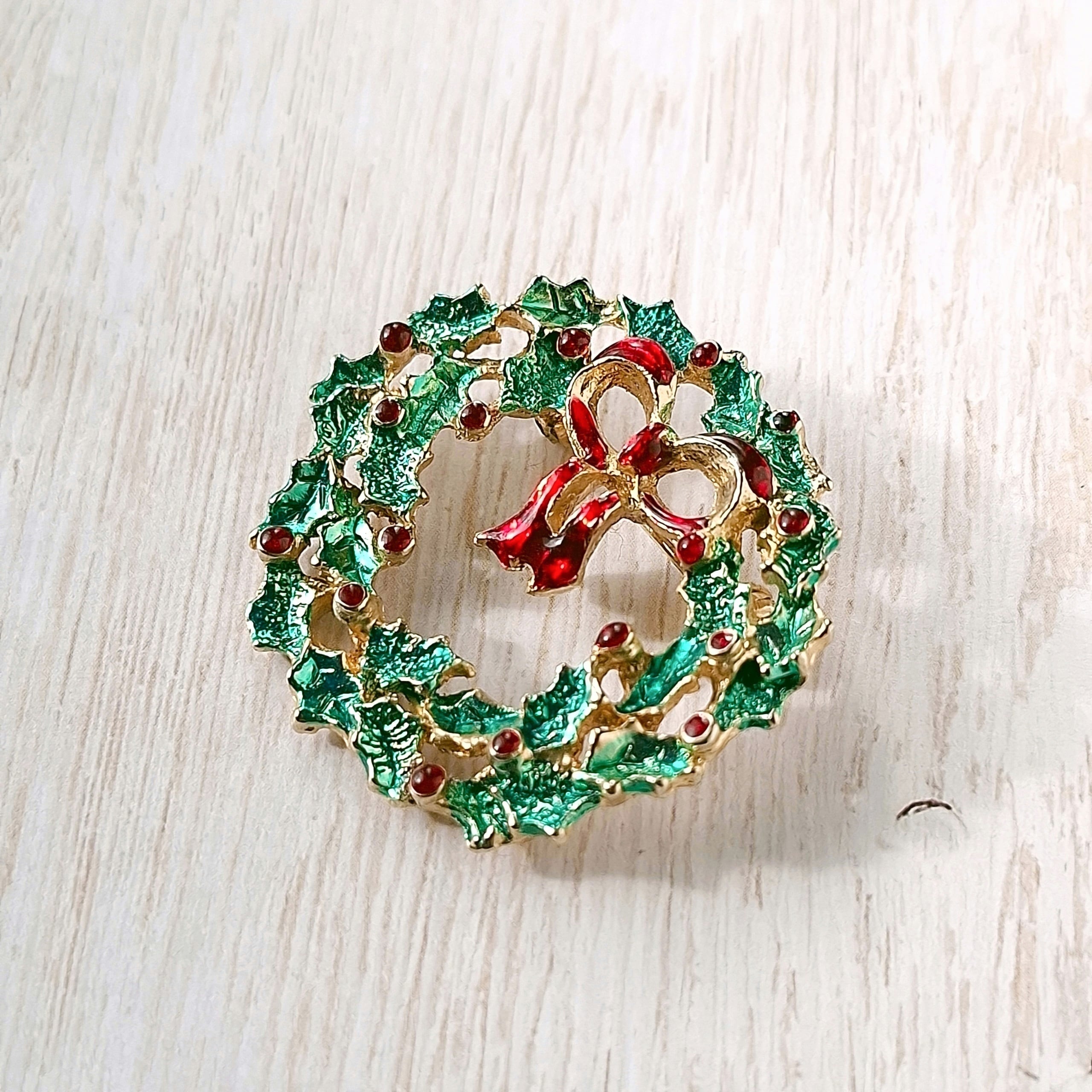 christmas holly wreath vintage brooch ヴィンテージブローチ
