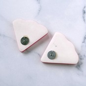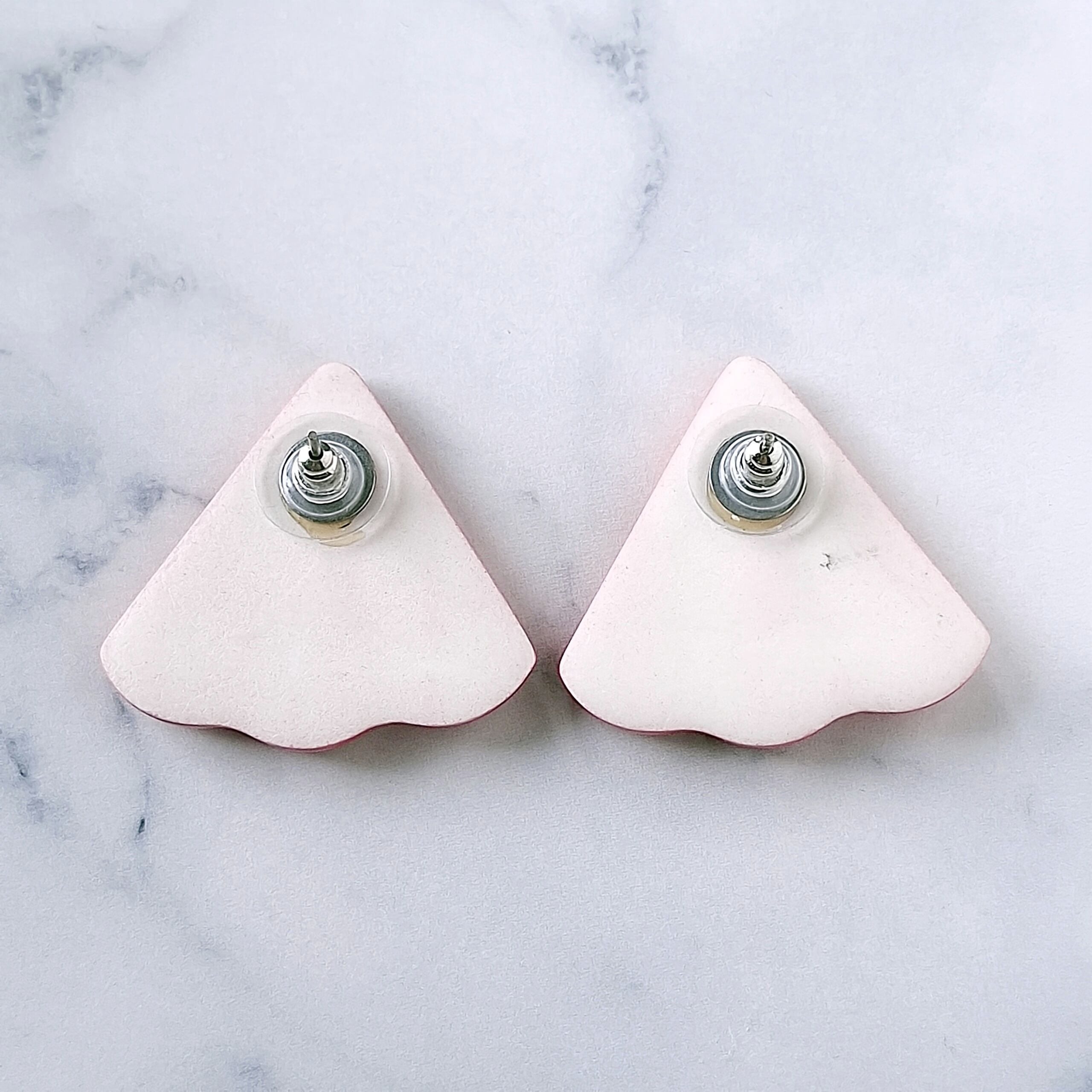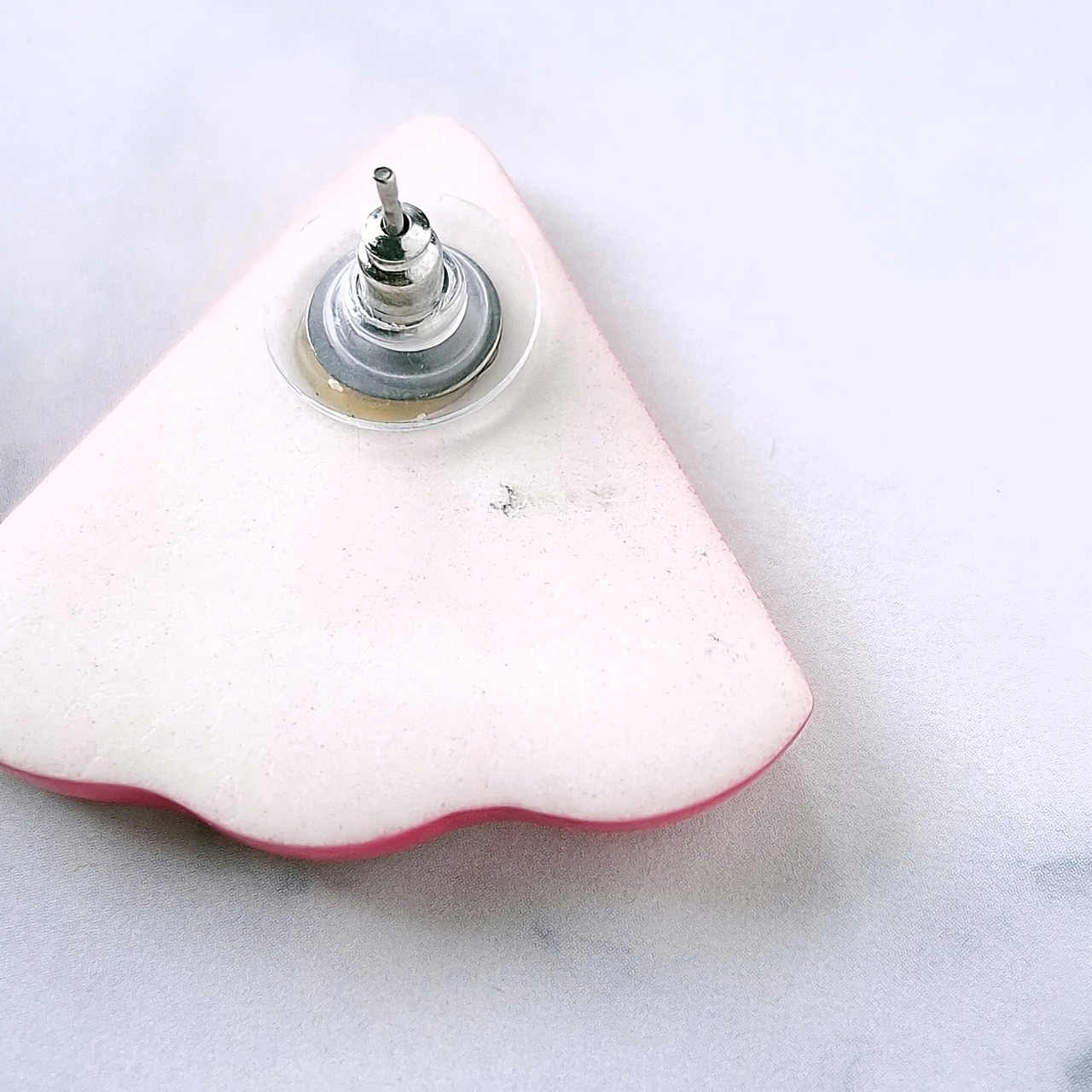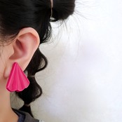 vivid pink fan shaped plastic vintage pierced earrings ヴィンテージピアス