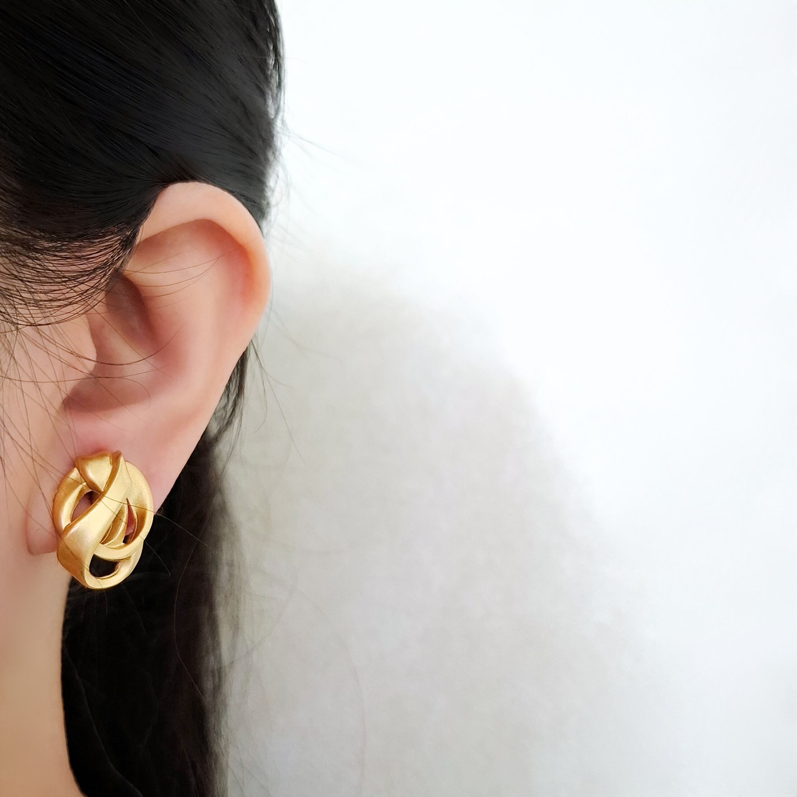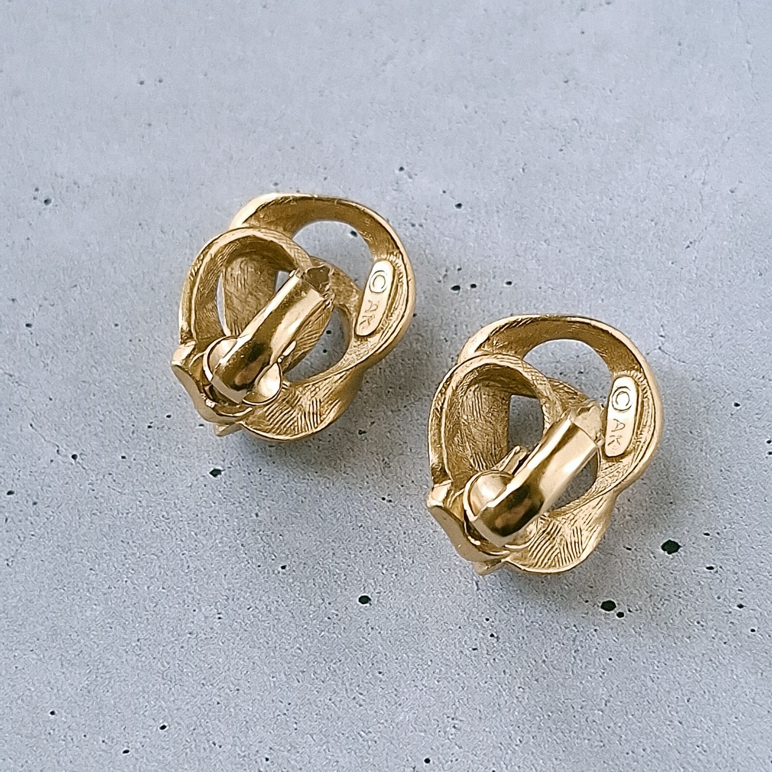 1968年にアメリカのニューヨークにて創業したANNE KLEIN(アンクライン)のマットなゴールドメタルでラフなノットがデザインされたヴィンテージイヤリングです。