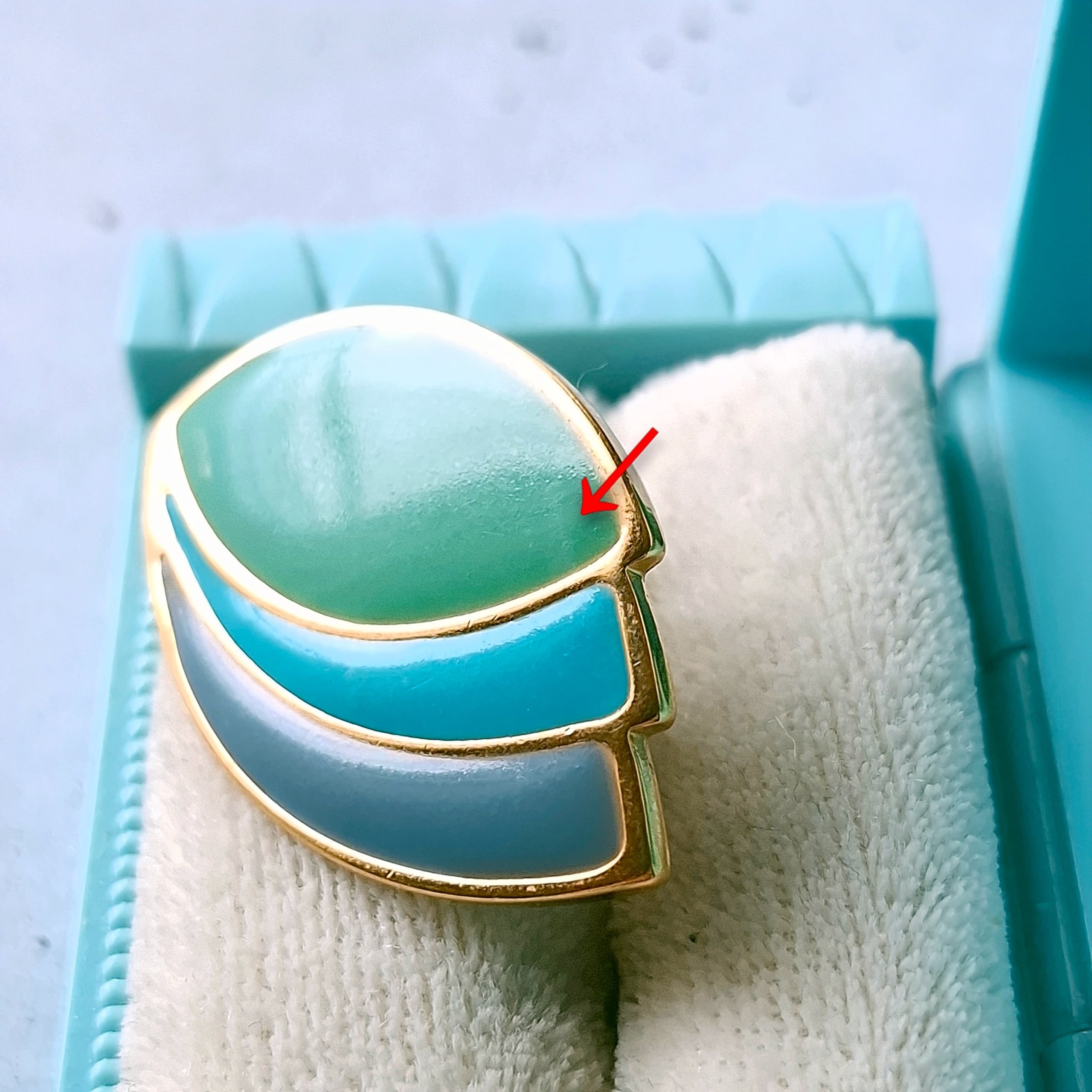 片方のグリーンとライトブルー赤い矢印の箇所に擦り傷によるくすみが見られます。