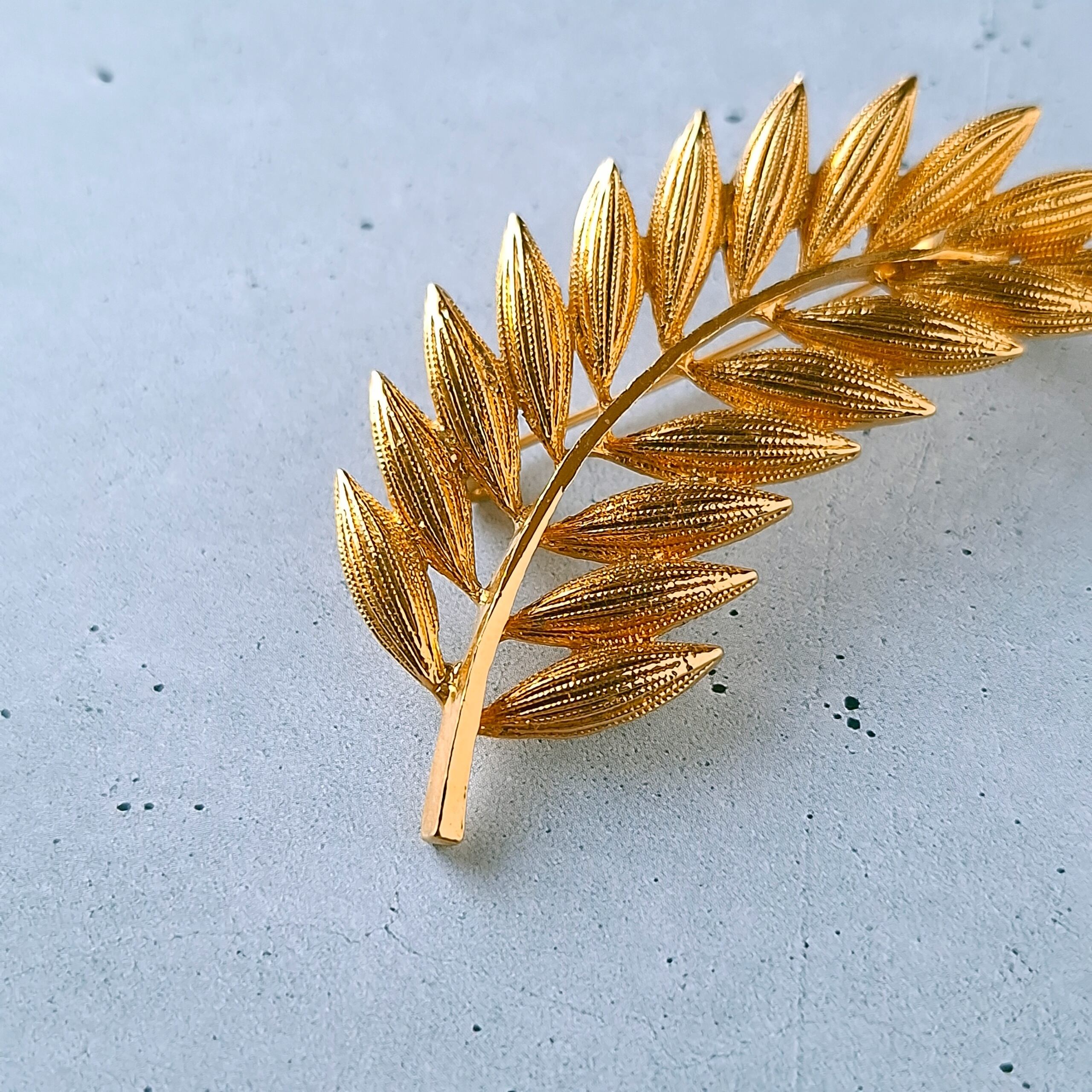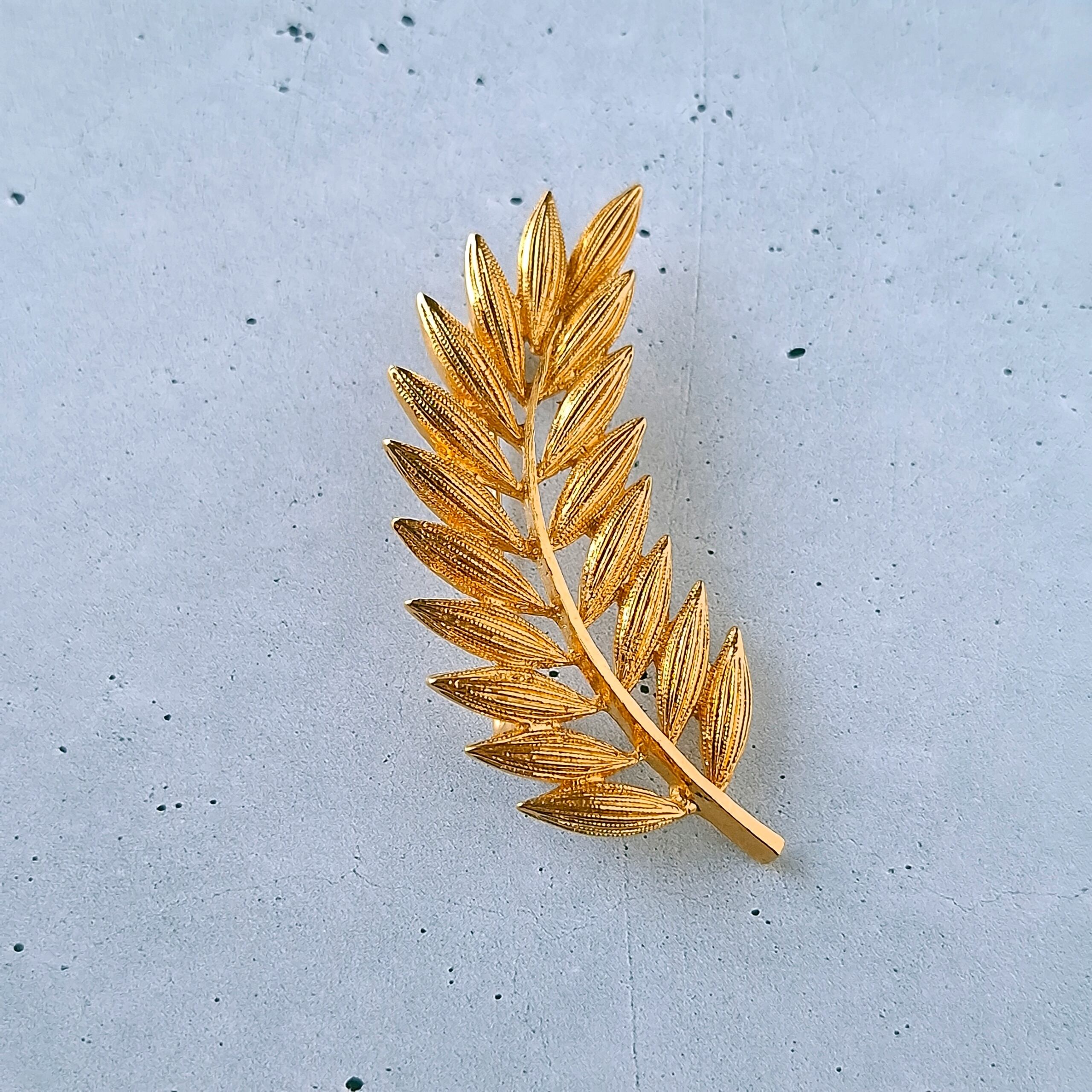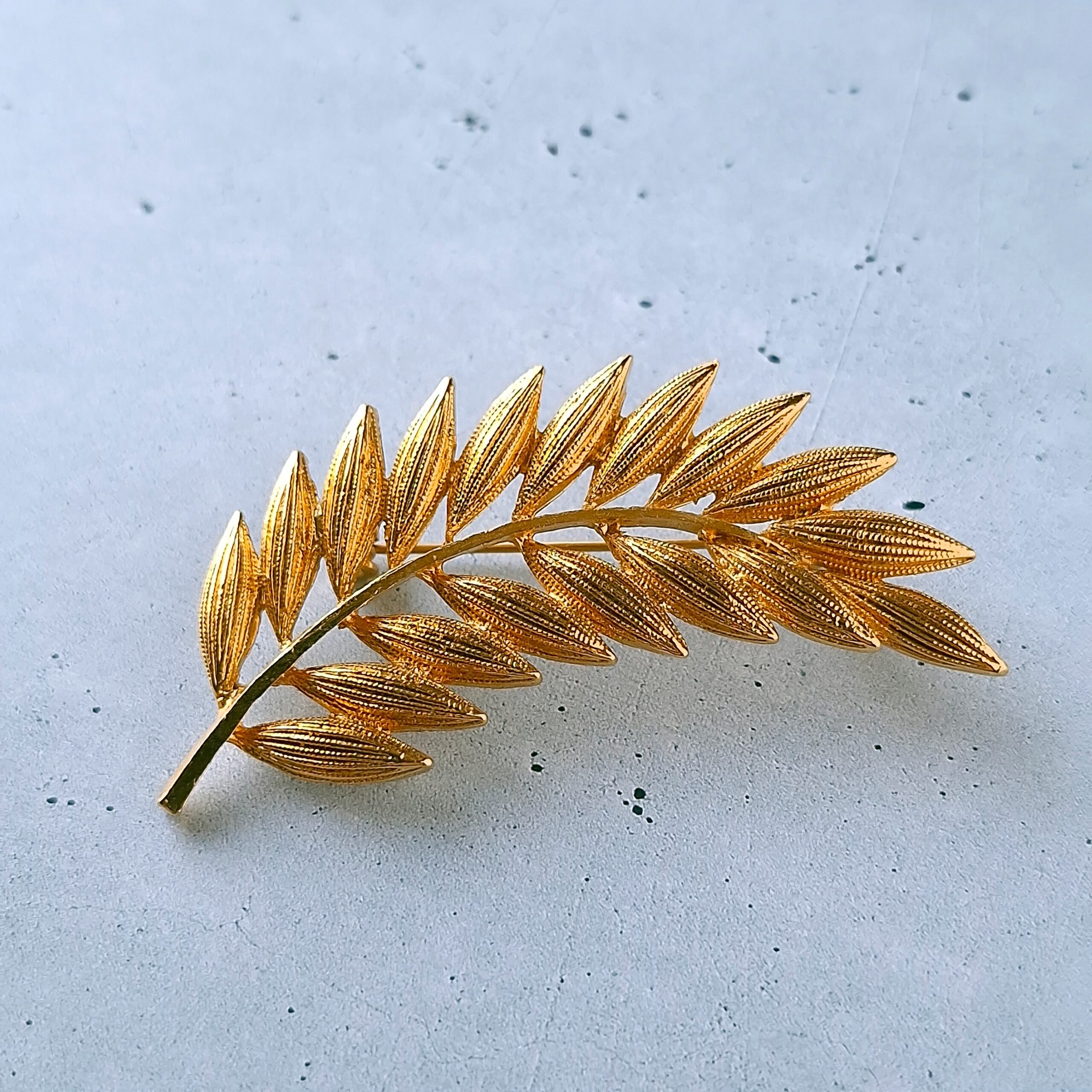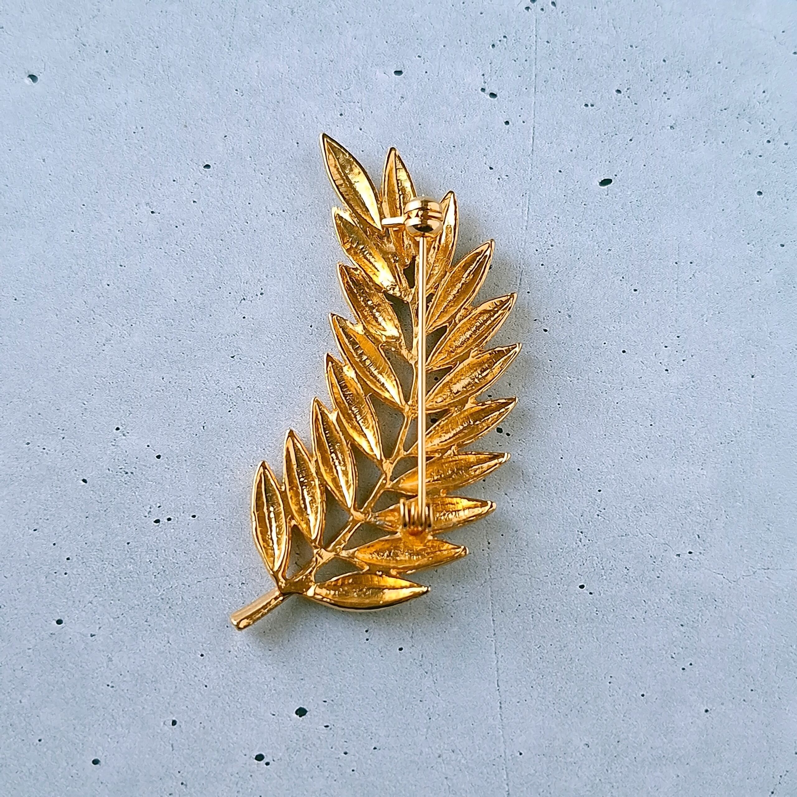 textured gold tone leaf branch vintage brooch ヴィンテージブローチ