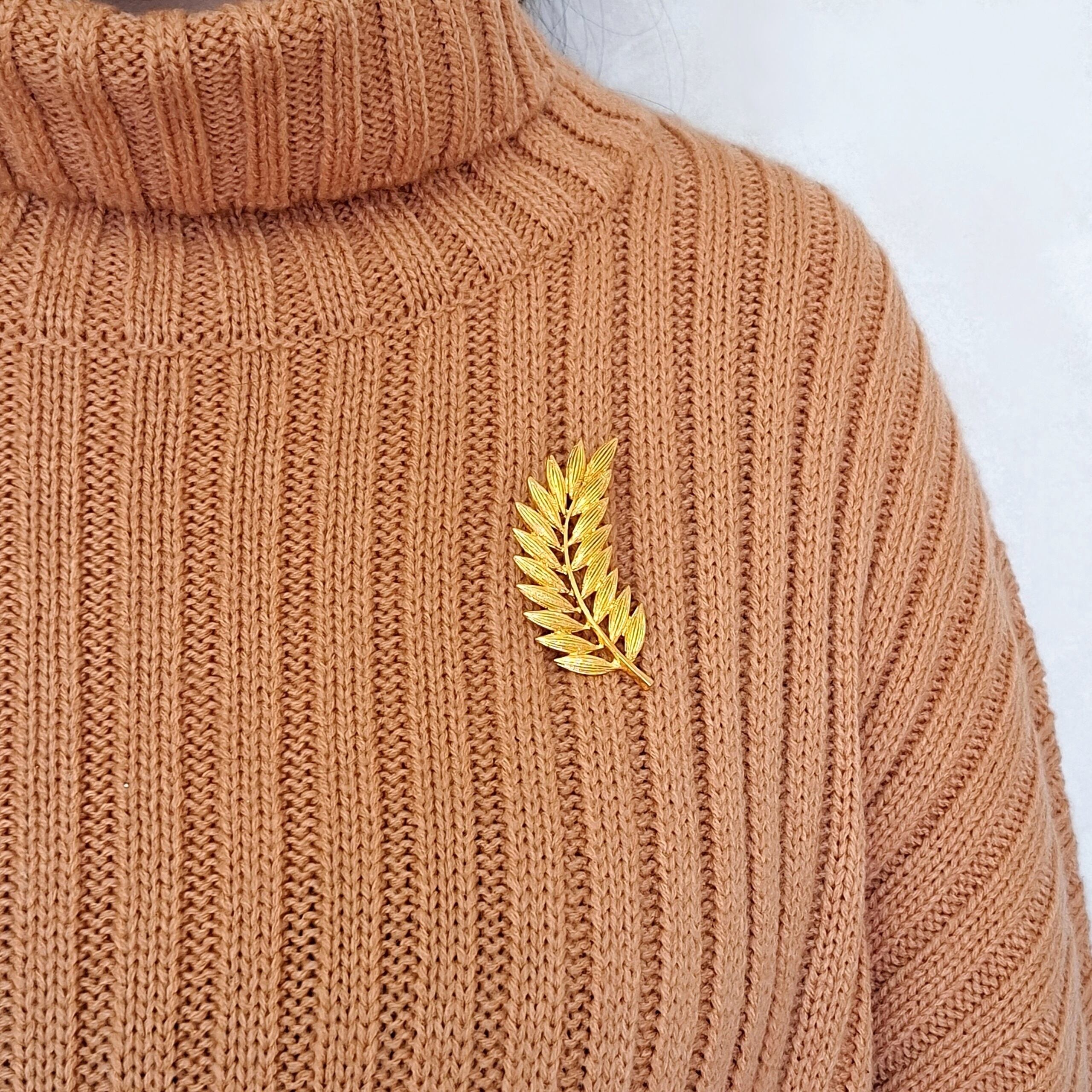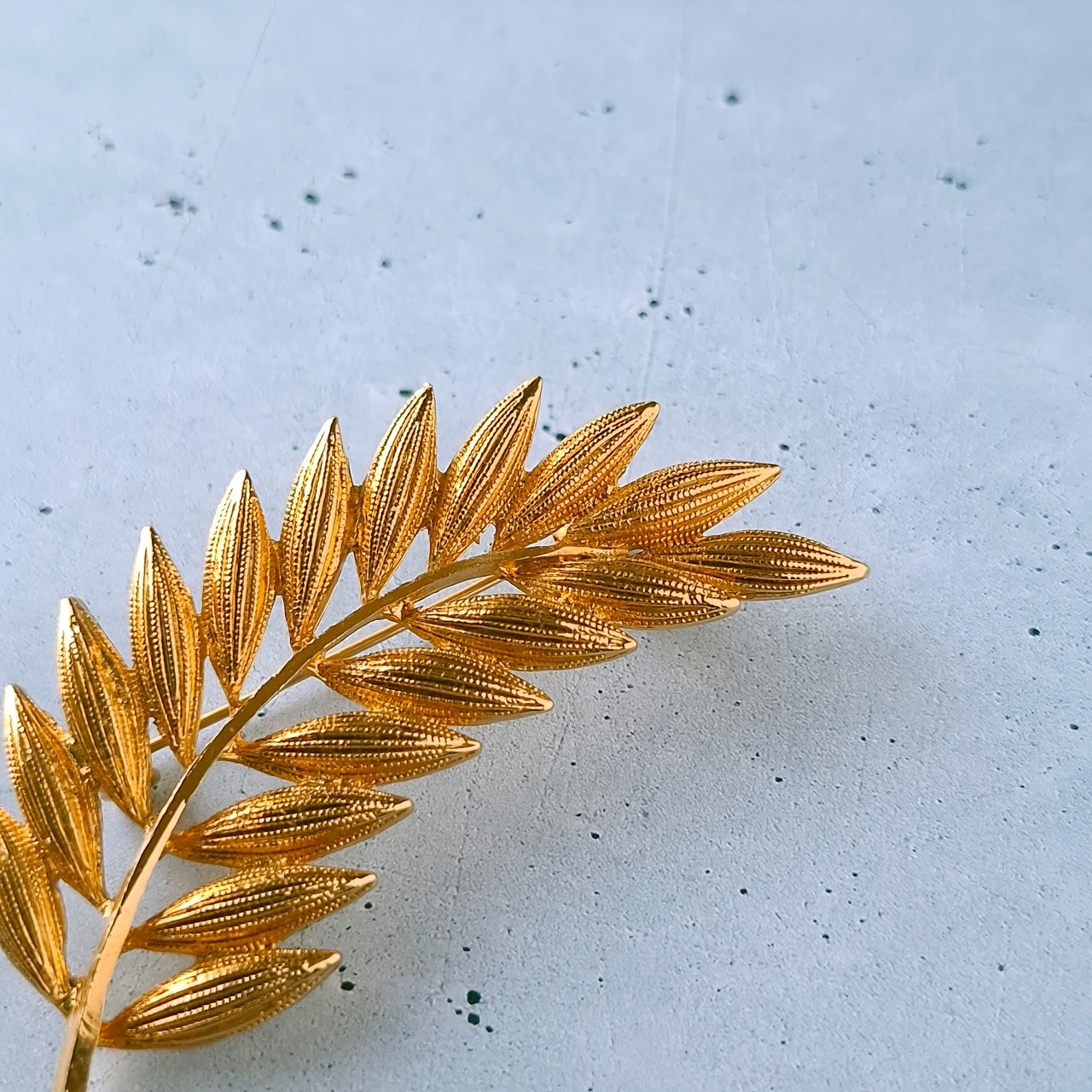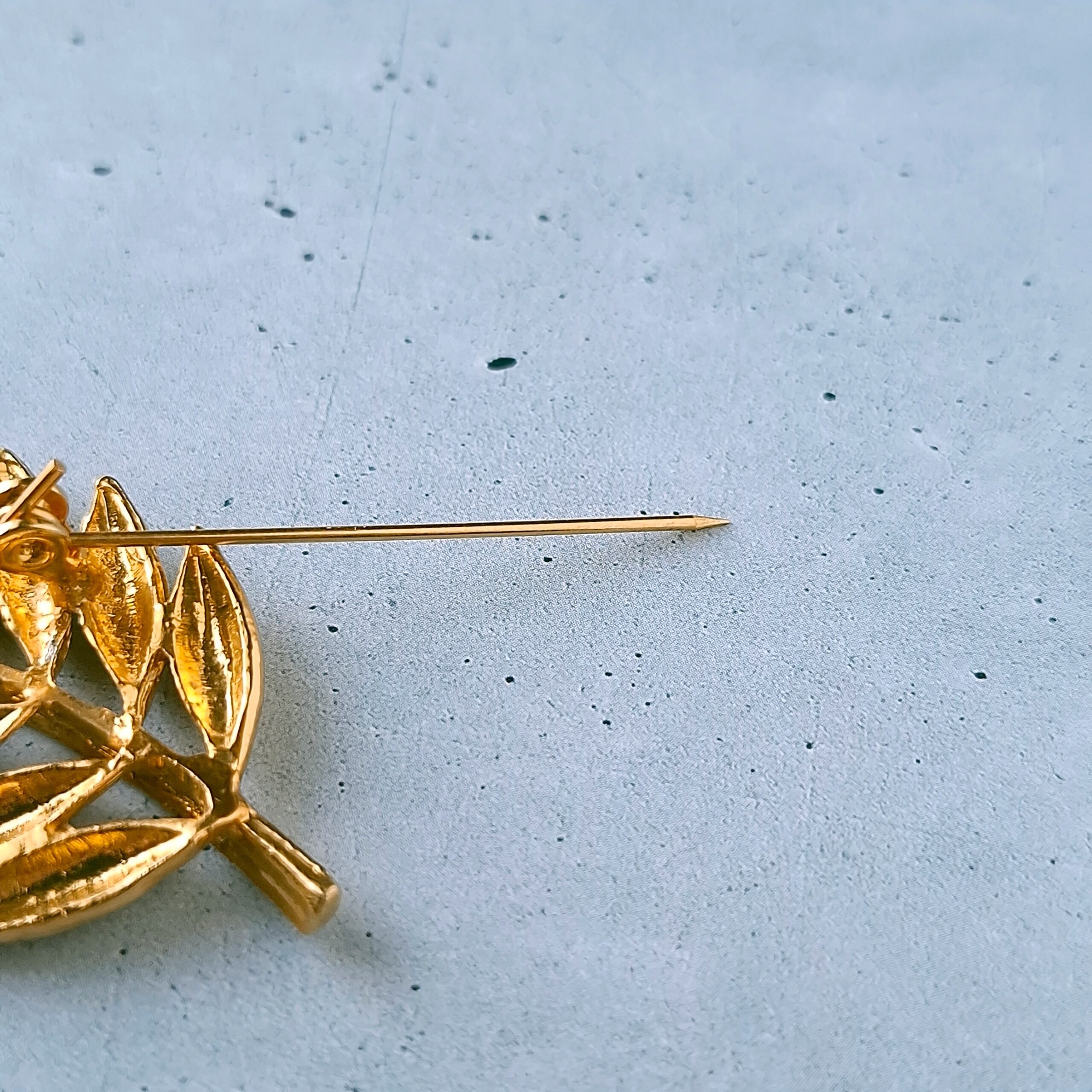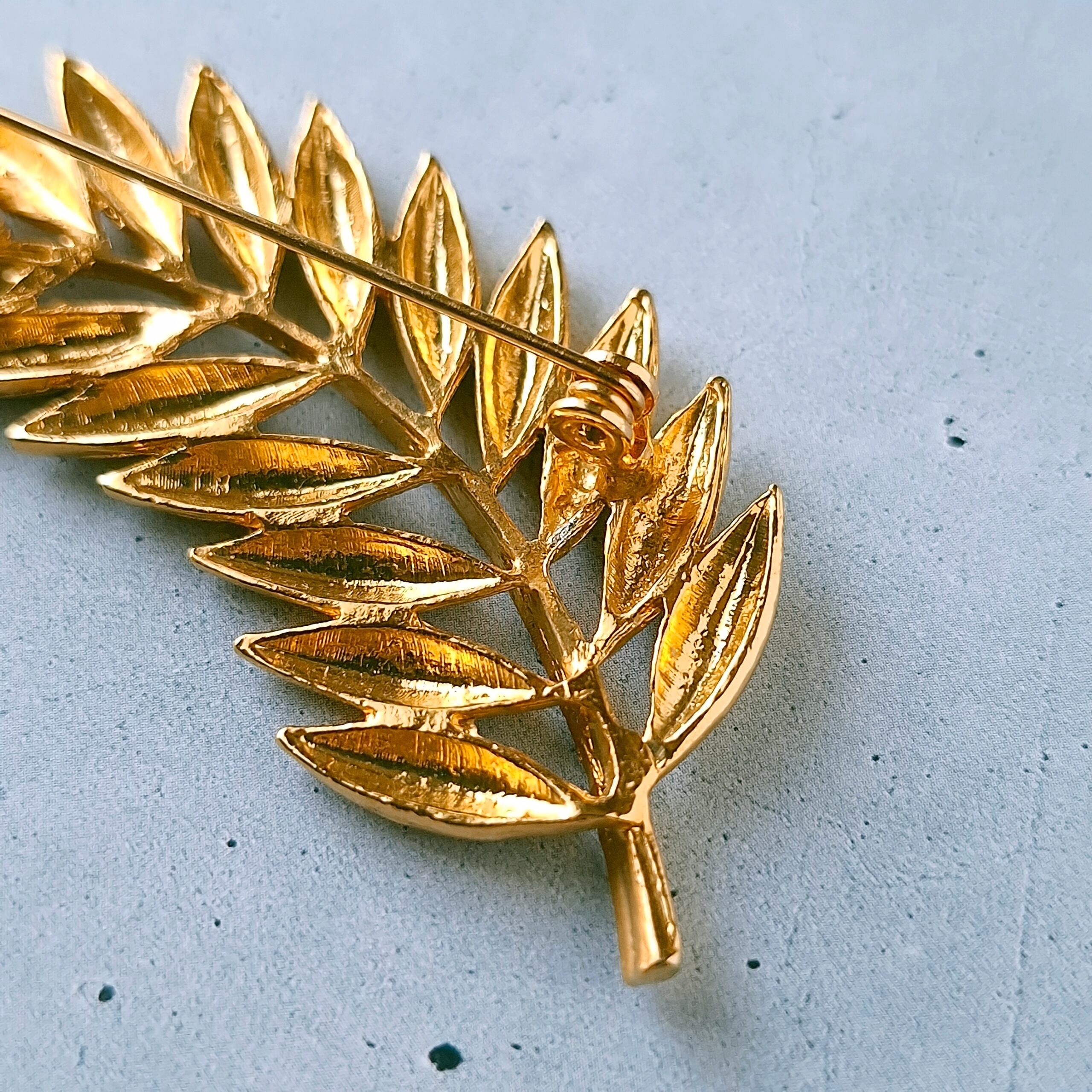 textured gold tone leaf branch vintage brooch ヴィンテージブローチ