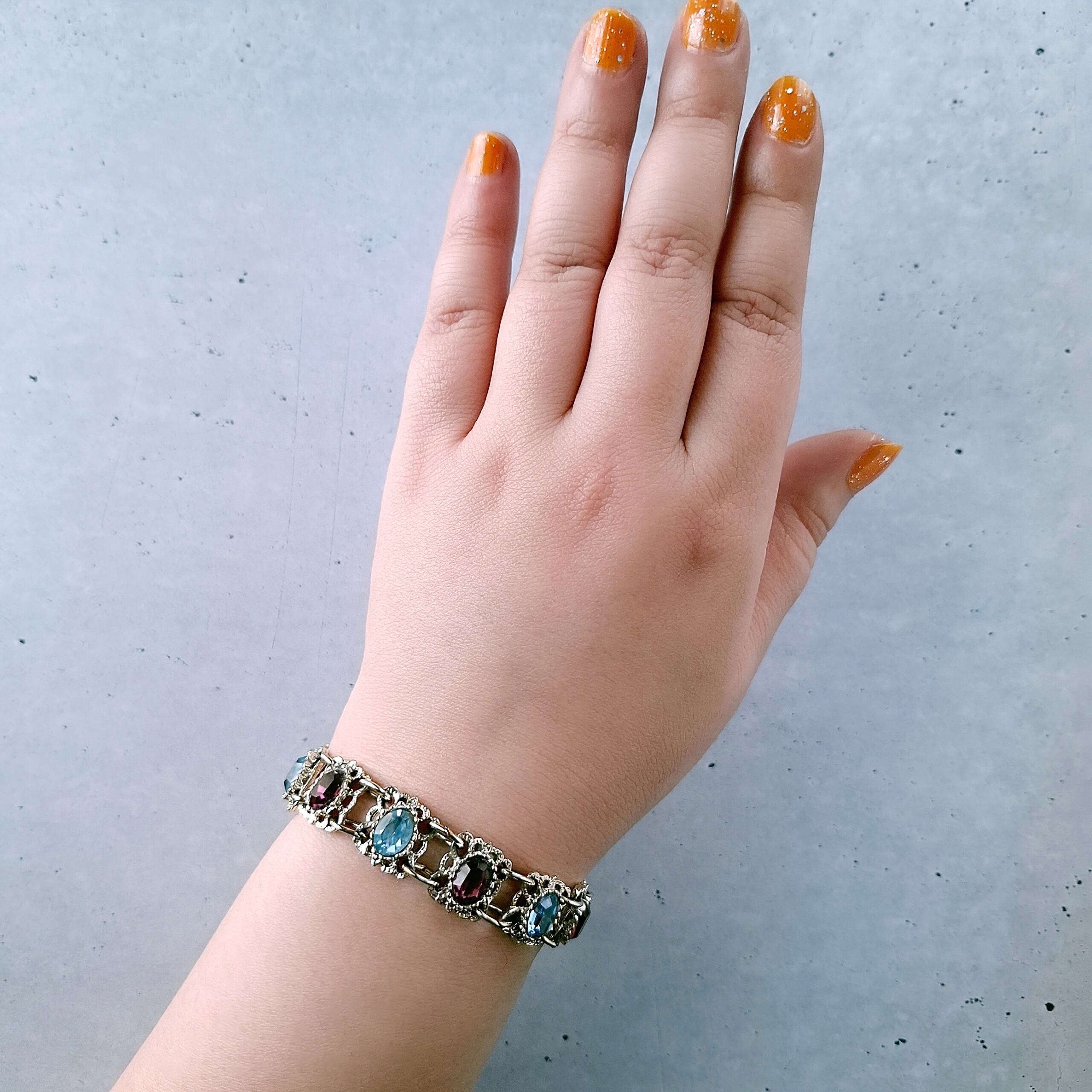 light blue purple rhinestone vintage bracelet ヴィンテージブレスレット