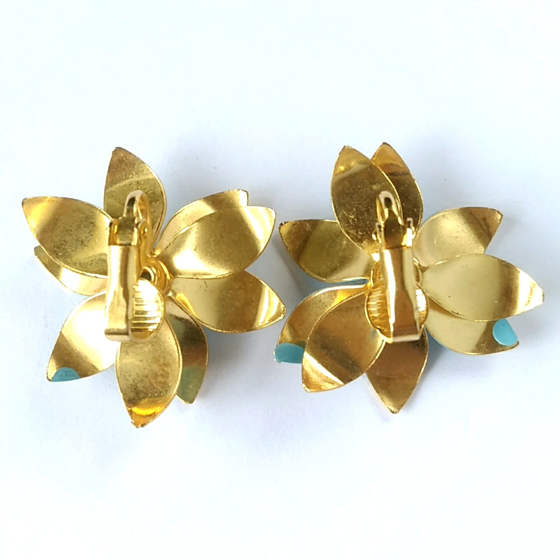 水色のエナメルのフラワーヴィンテージイヤリングです。