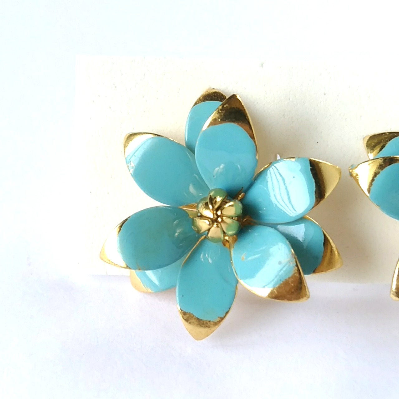 light blue enamel flower vintage earrings ヴィンテージイヤリング