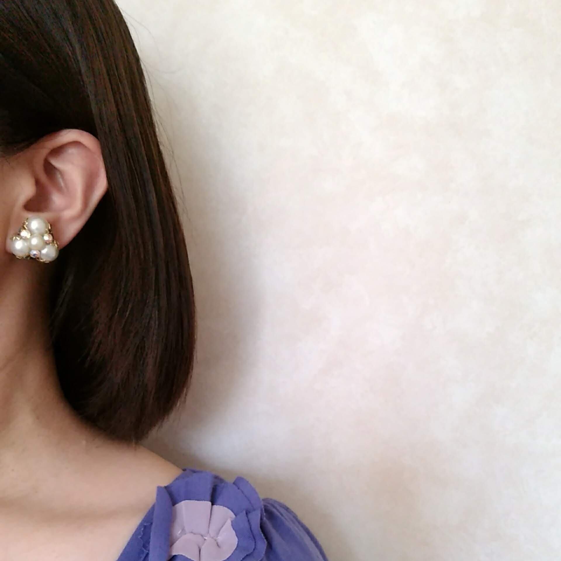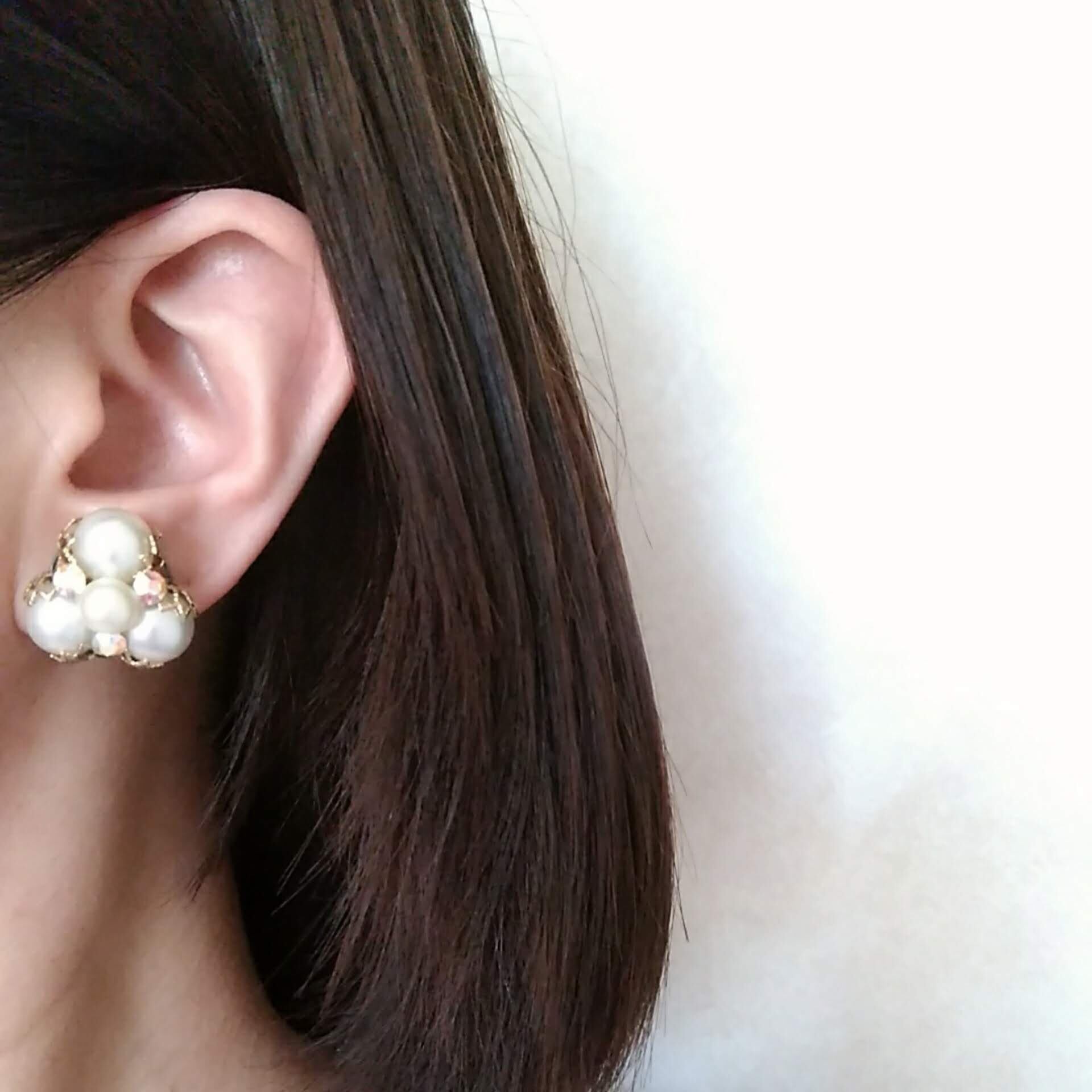 fauxpearl aurorastone cluster vintage earrings ヴィンテージイヤリング
