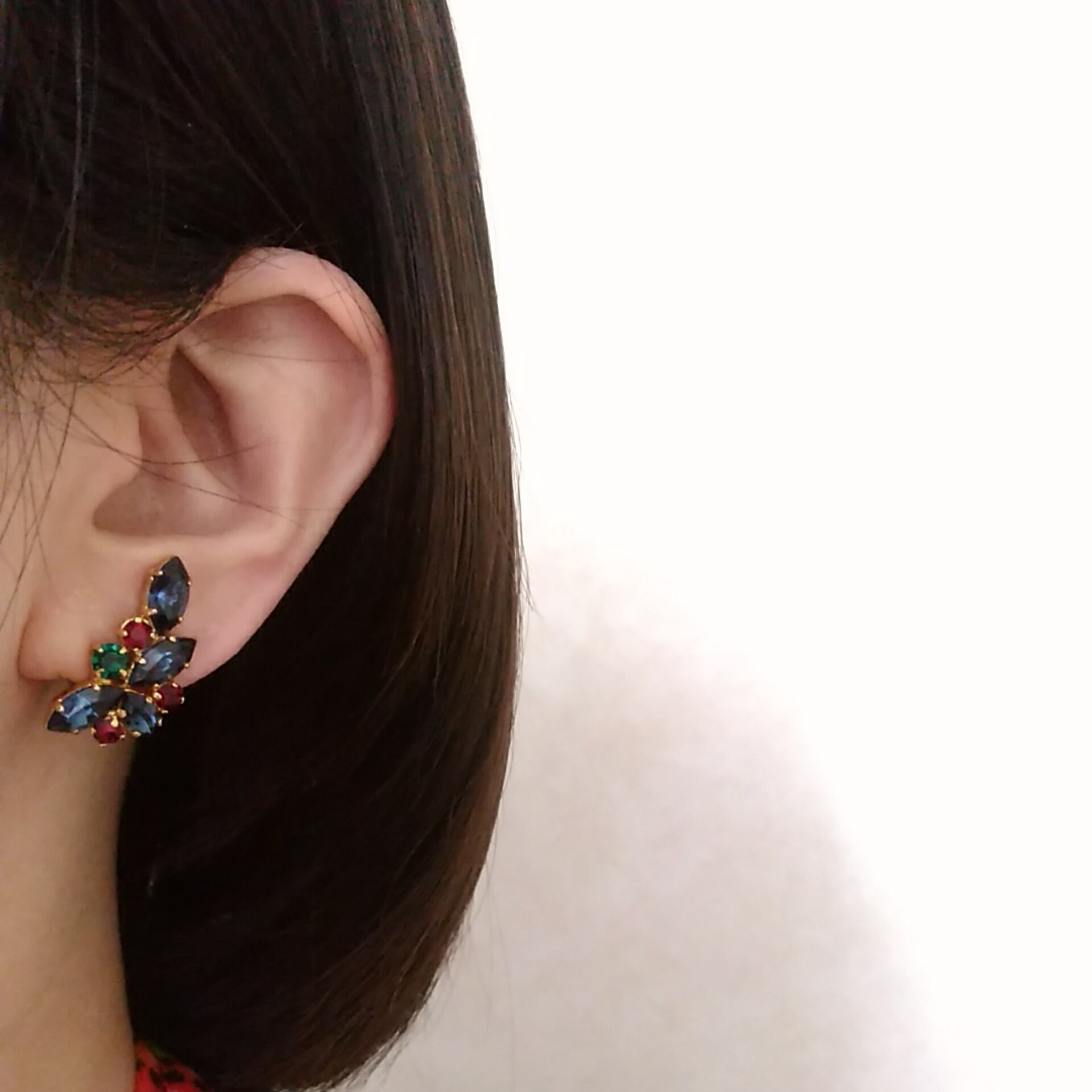 navy red green rhinestone vintage earrings ヴィンテージイヤリング
