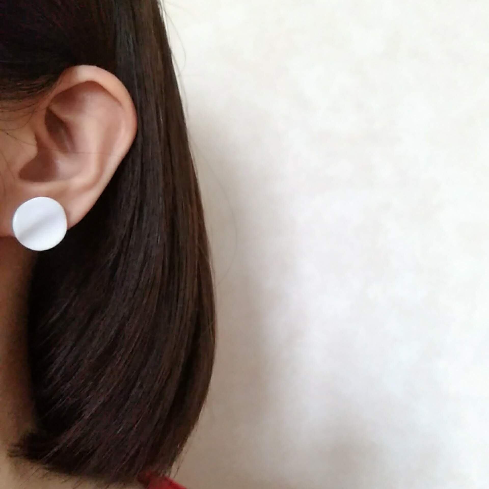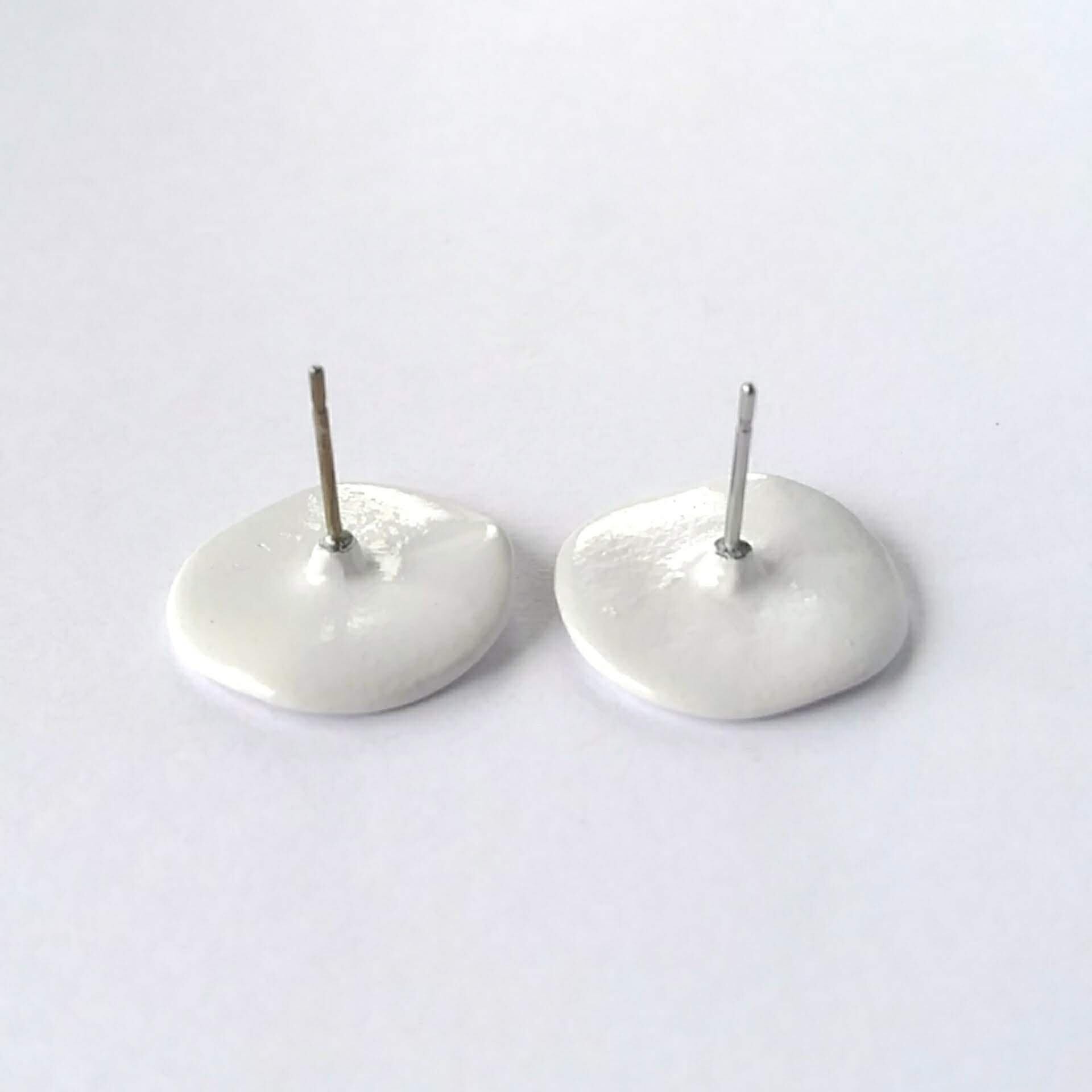 white enamel deformation round vintage piercedearrings ヴィンテージピアス