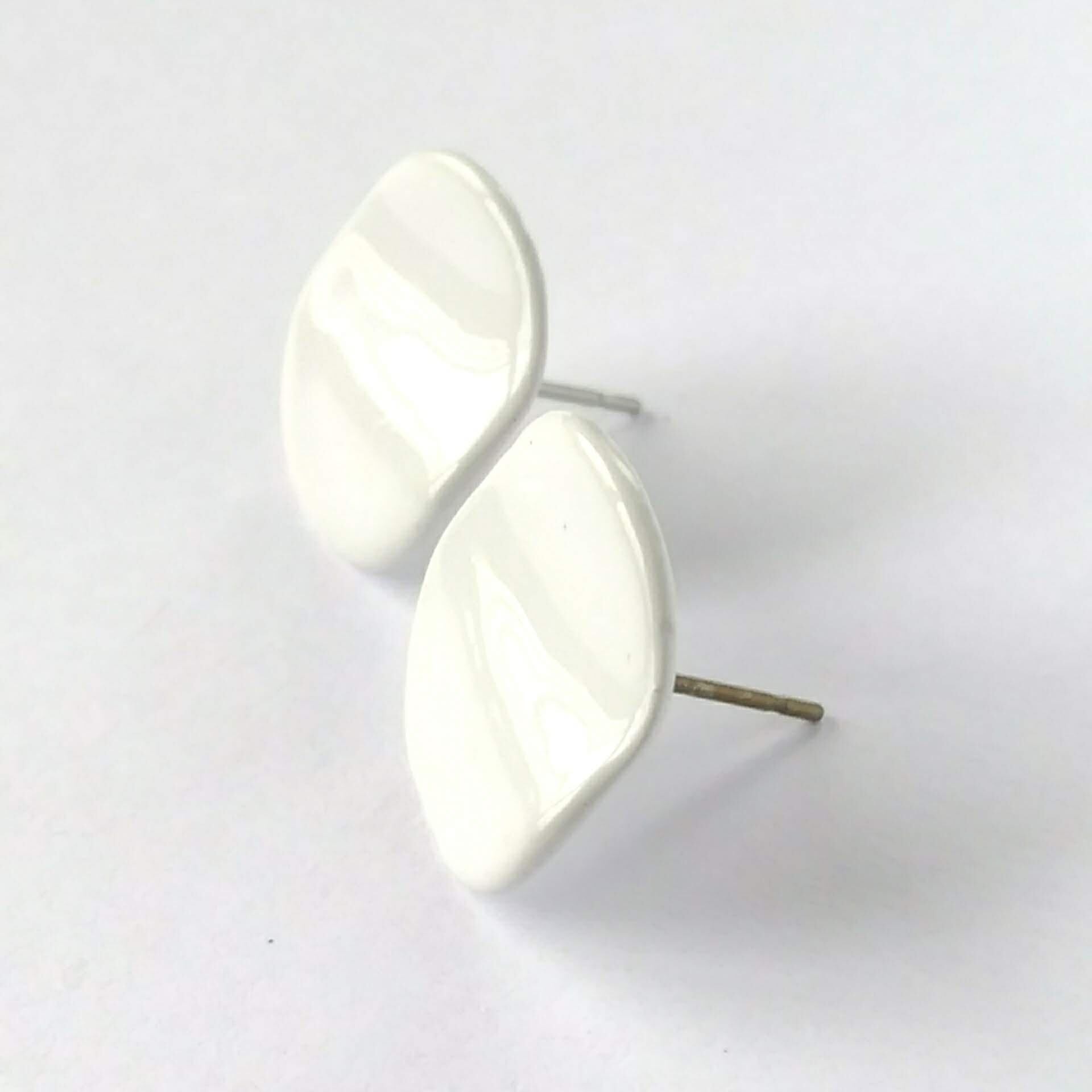 波打った様に変形したラウンドメタルにホワイトのエナメルで色付けされたヴィンテージピアスです。