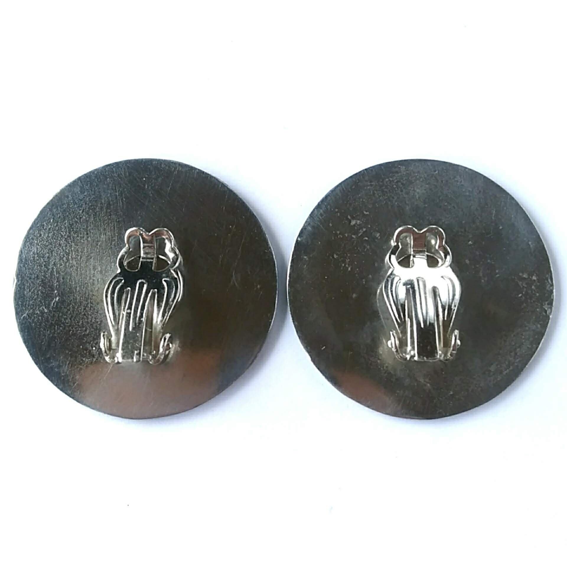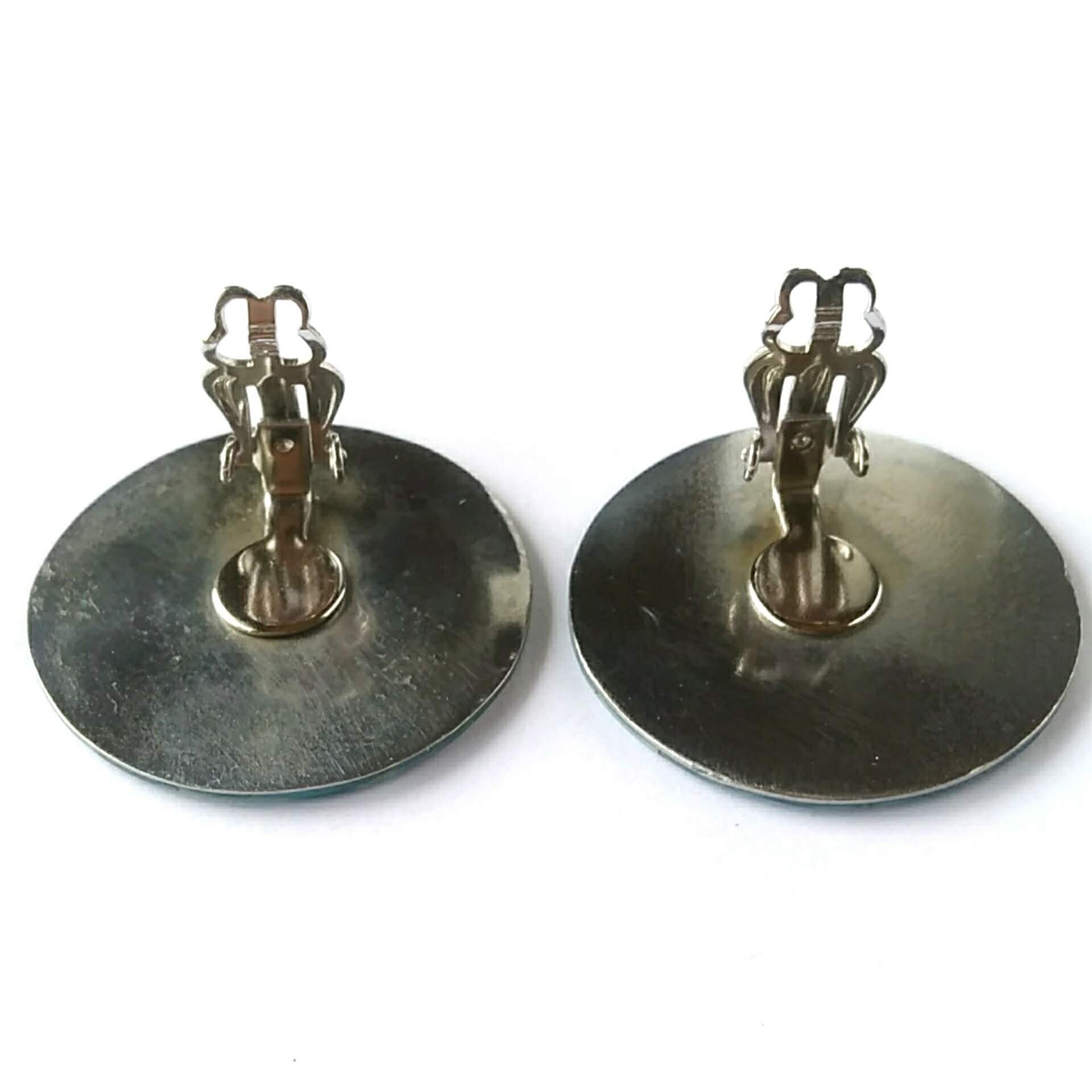 シルバーメタルのラウンドに青緑色のシェルが放射状にデザインされたヴィンテージイヤリングです。