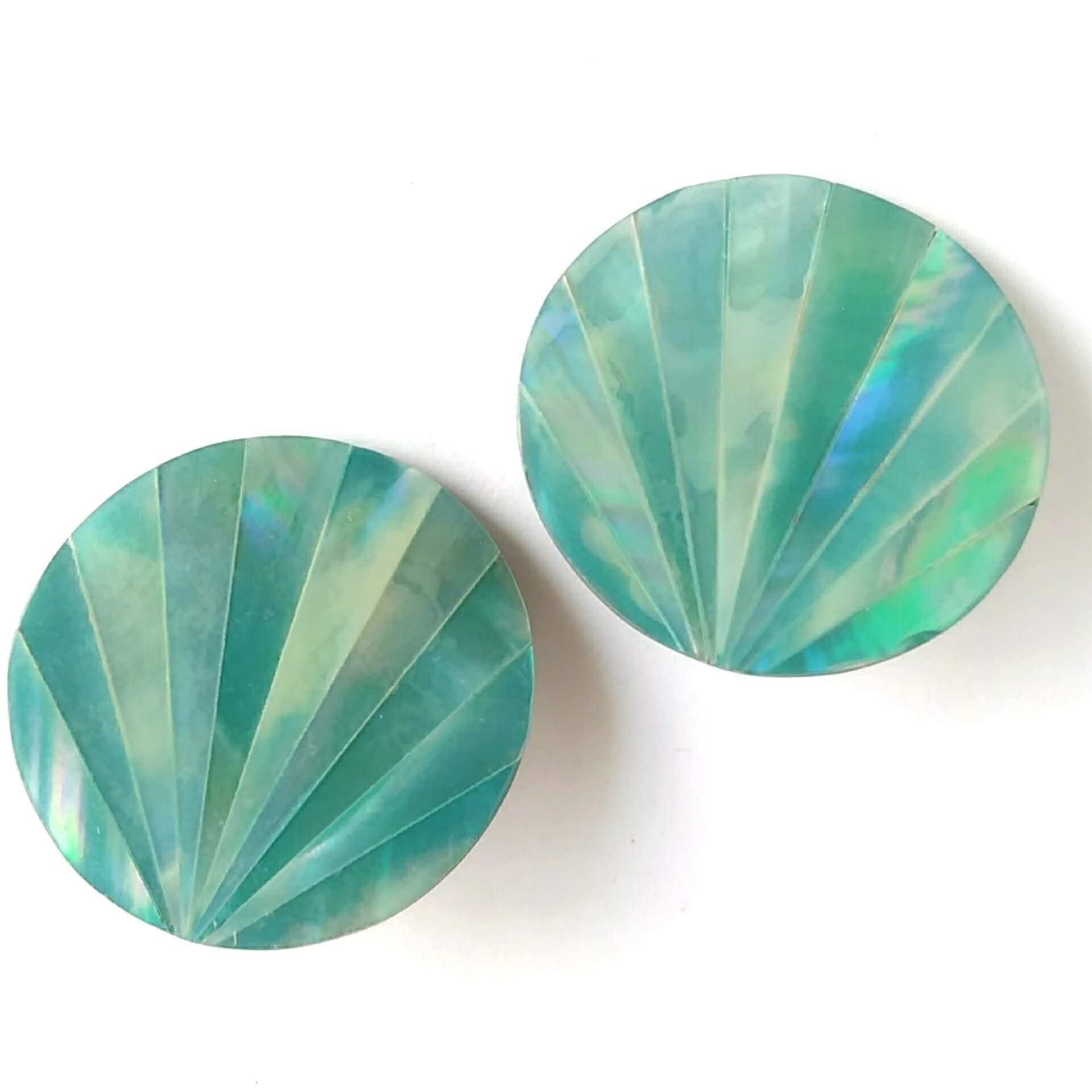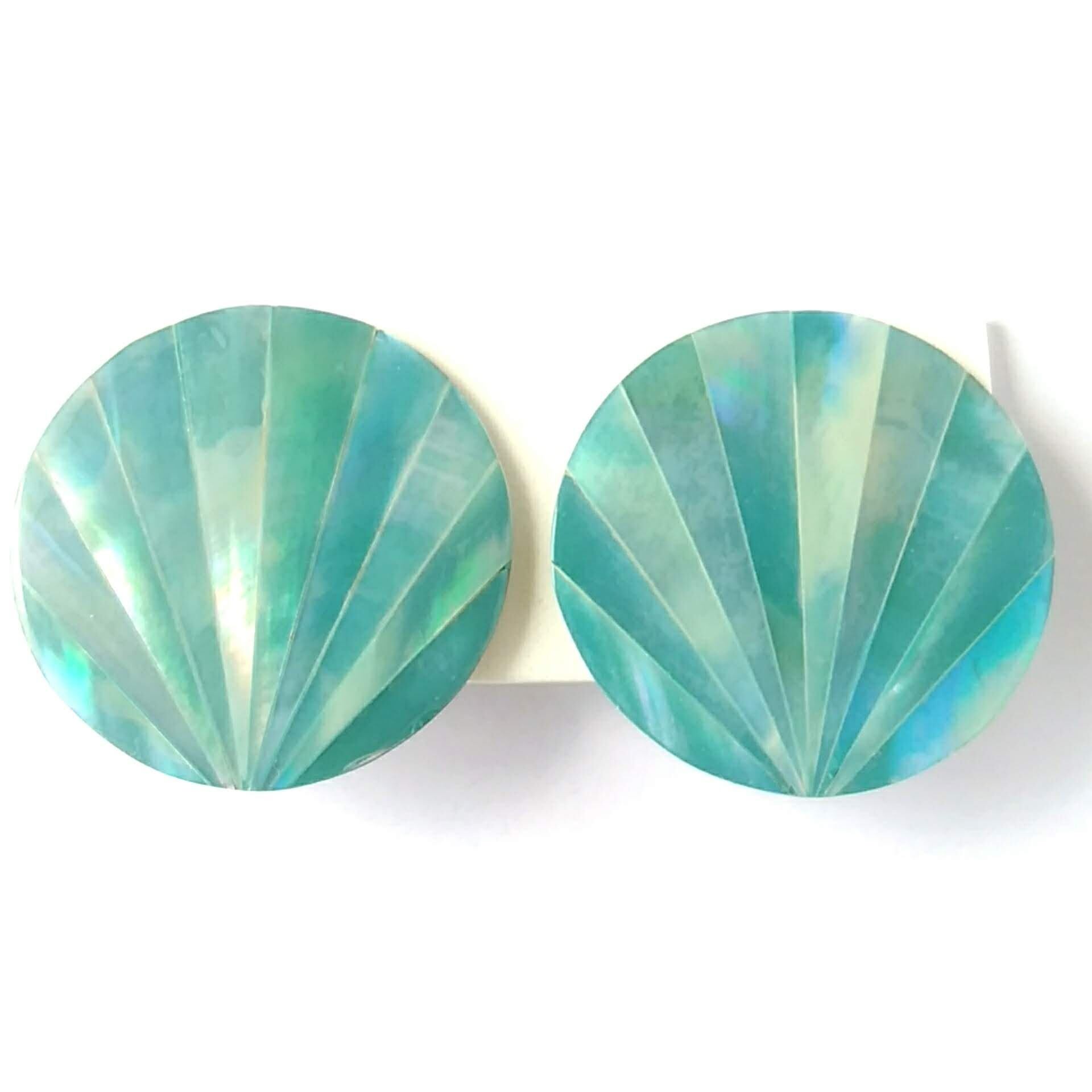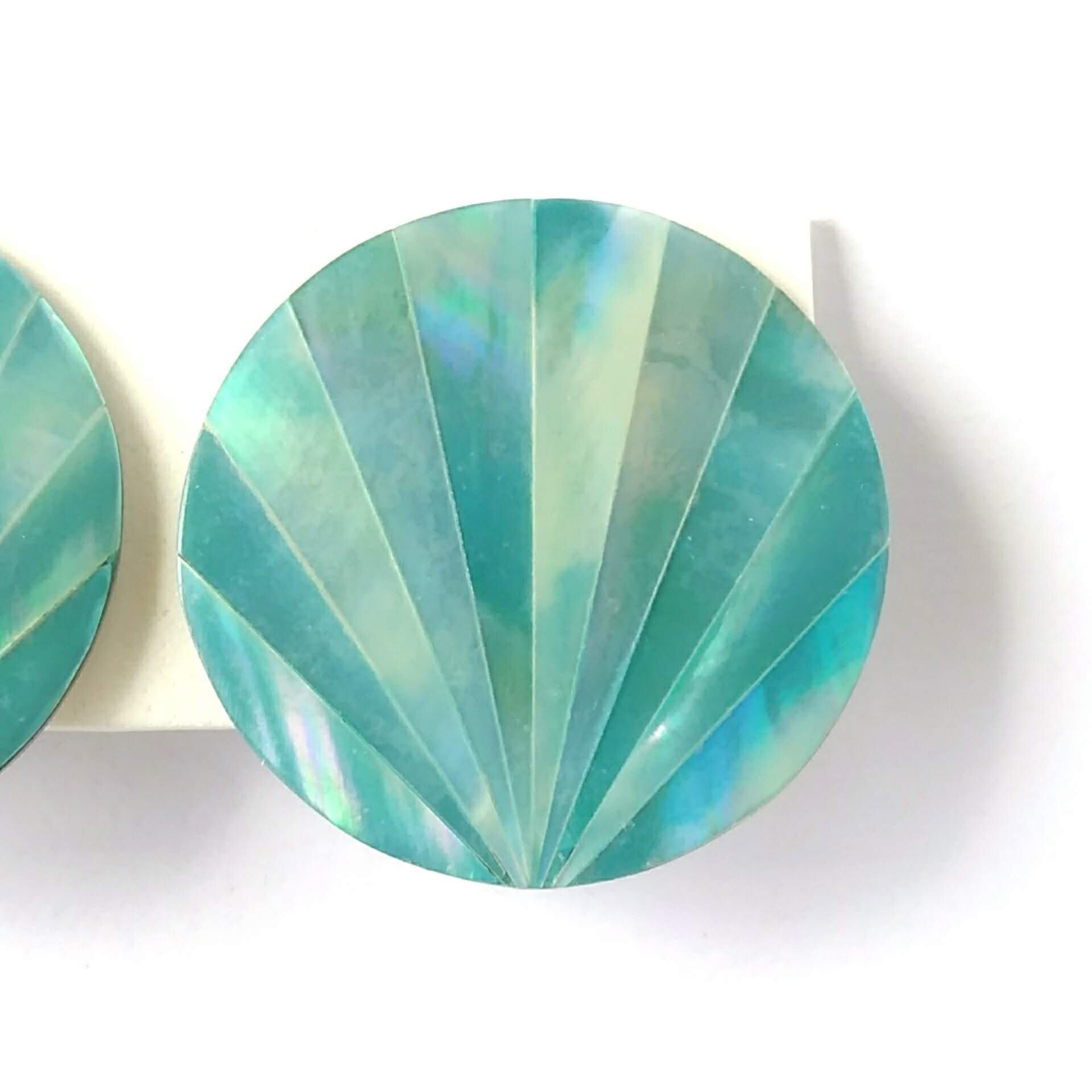 blue green shell radial round vintage earrings ヴィンテージイヤリング