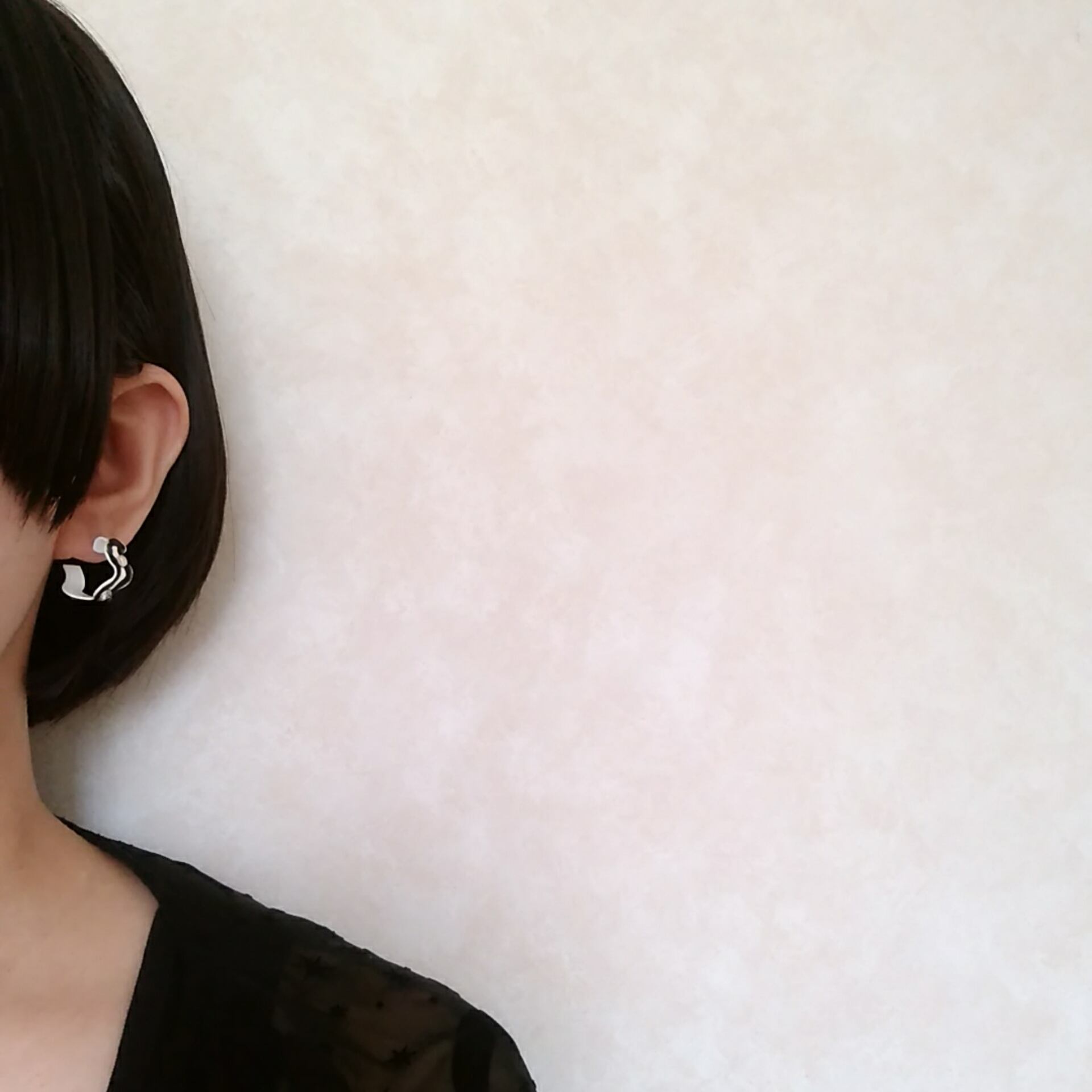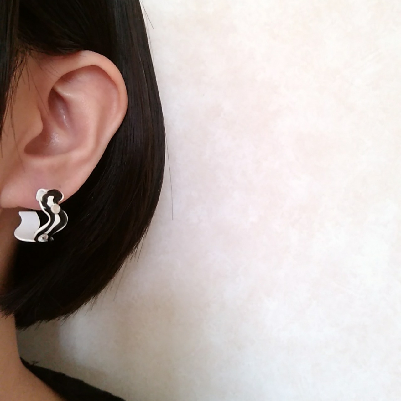 white Black enamel hoop vintage piercedearrings ヴィンテージピアス