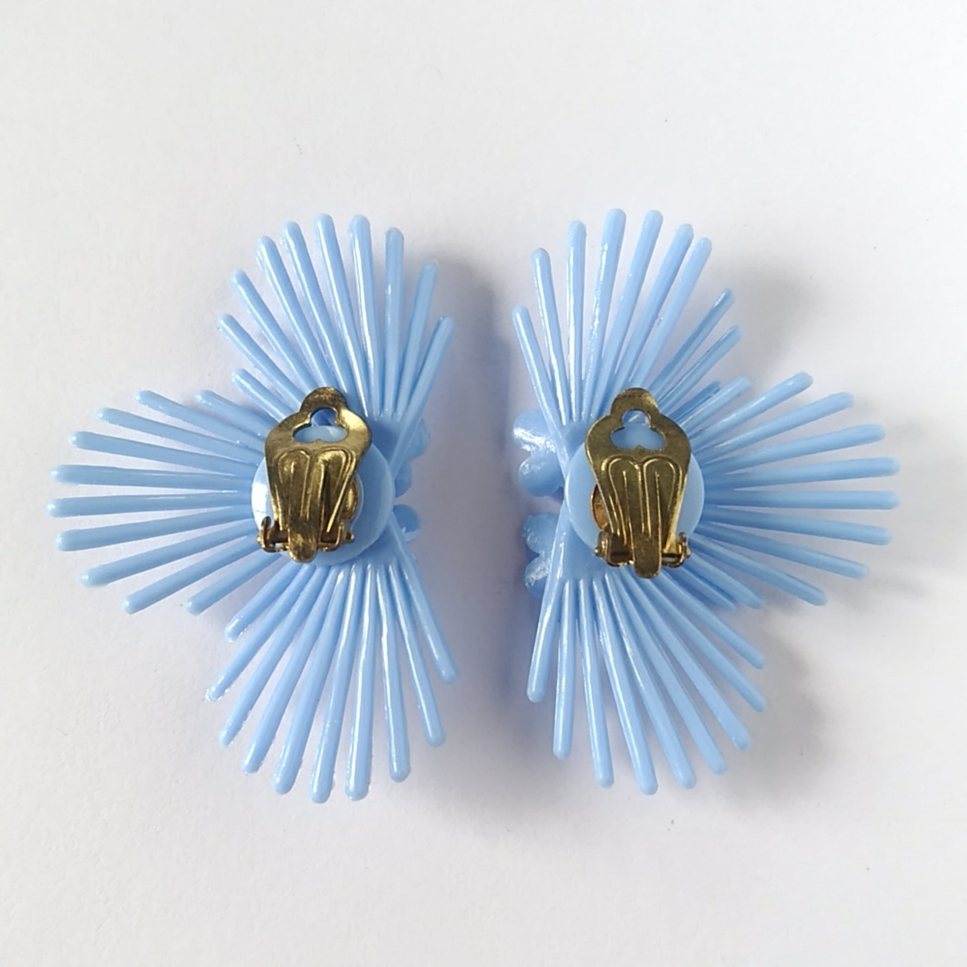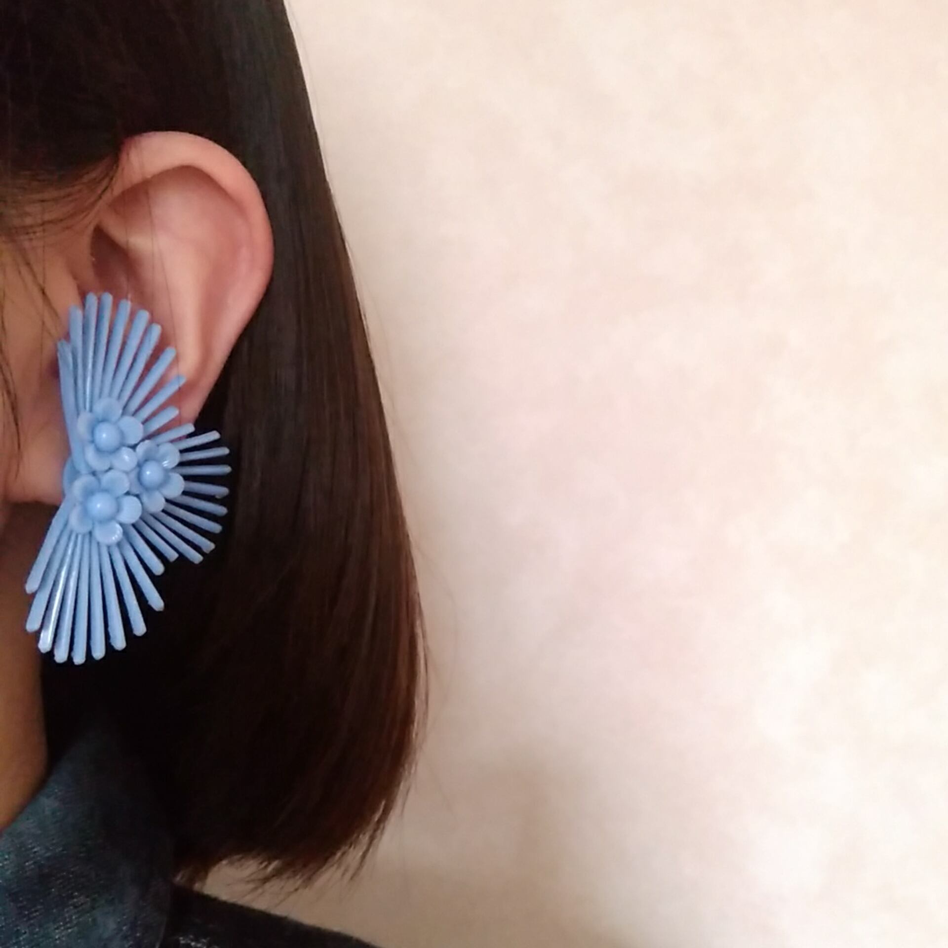 light blue flower fan plastic vintage earrings ヴィンテージイヤリング