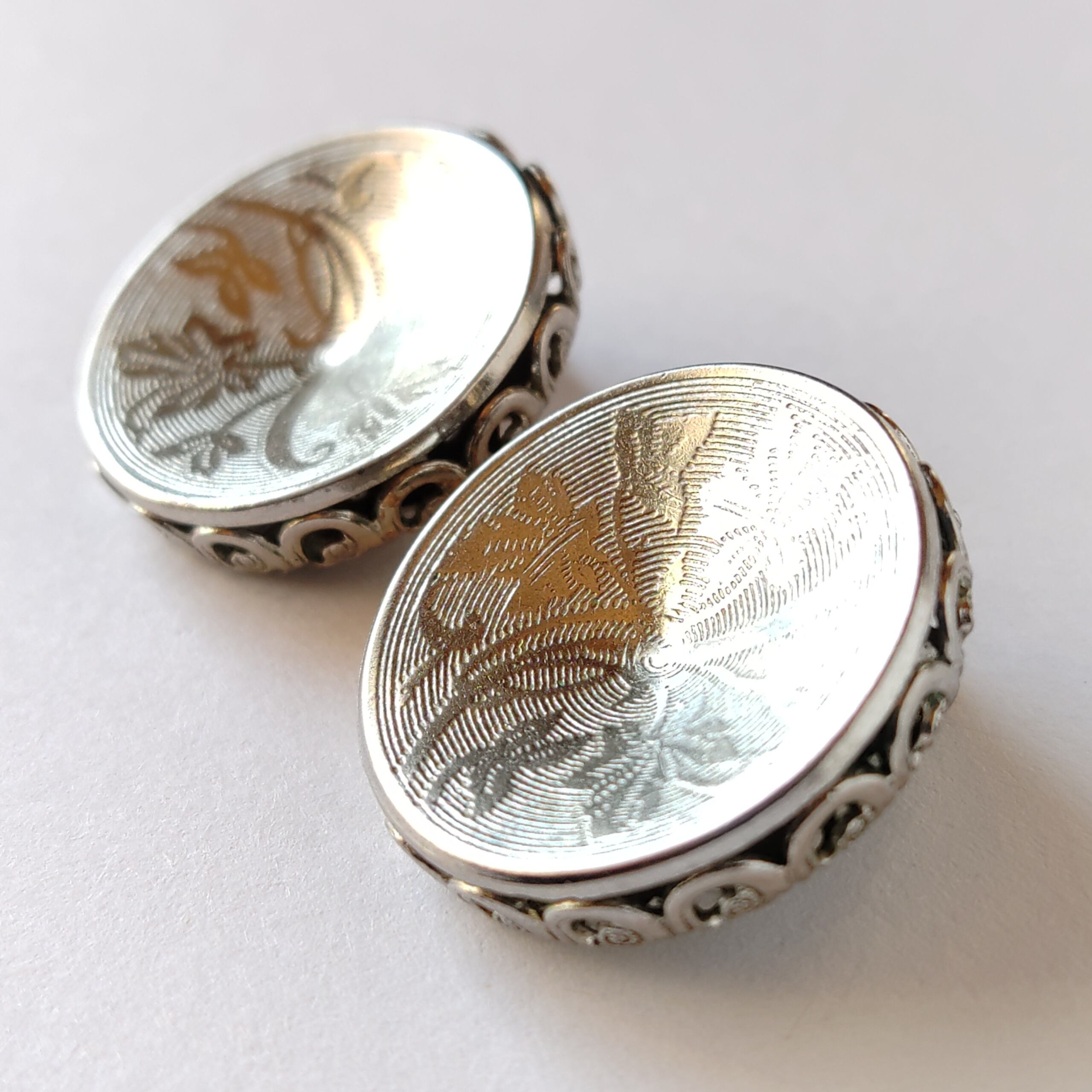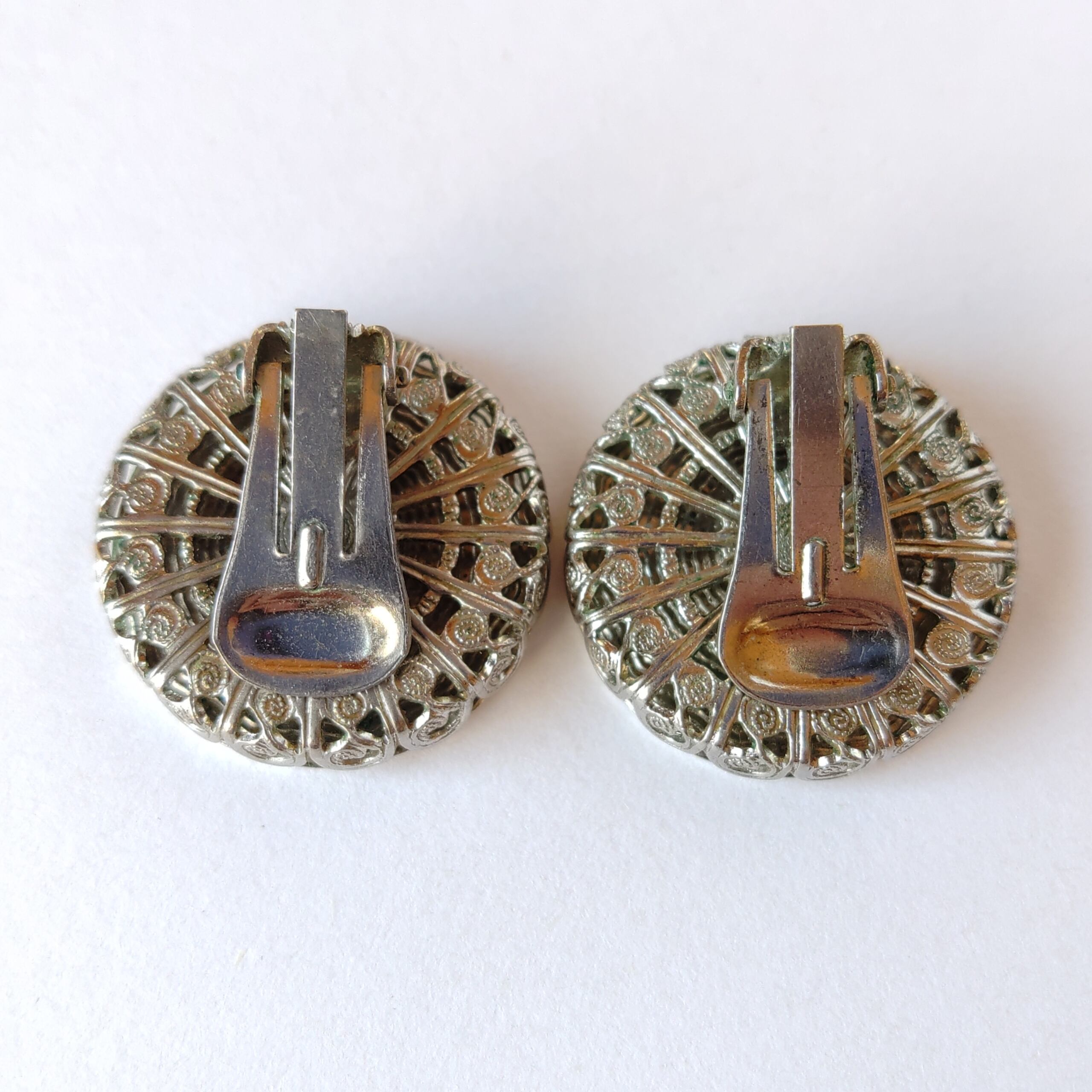 silver round etched maple vintage earrings ヴィンテージイヤリング