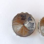 中央が凹んだデザインのラウンド型のシルバーメタルに紅葉の模様が刻まれたヴィンテージイヤリングです。