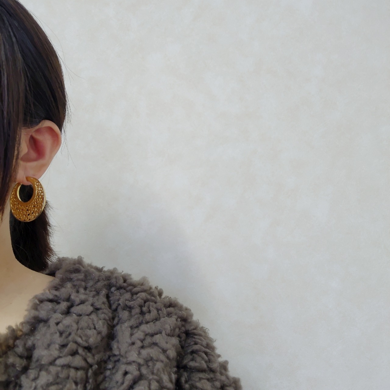 gold swirl hoop vintage piercedearrings ヴィンテージピアス
